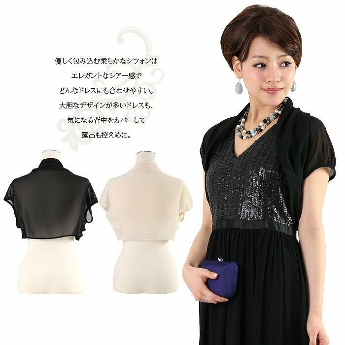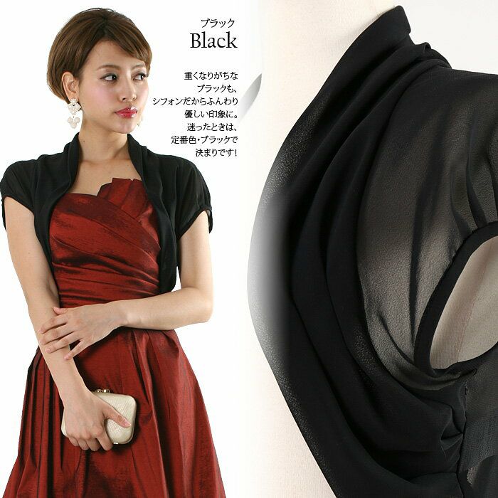 他の画像を見る 販売価格 ¥ 3,973 税込 在庫切れ 結婚式 披露宴 二次会 パーティー 謝恩会 【メール便対応】シンプル シフォン ショート丈 ボレロ FJ-000102 カートに入れる お気に入りに登録する
