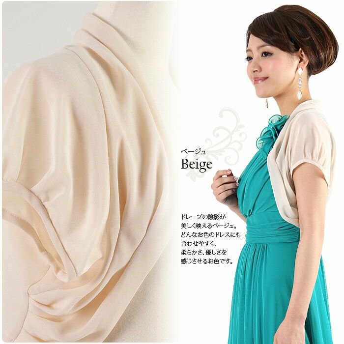 他の画像を見る 販売価格 ¥ 3,480 税込 在庫切れ 結婚式 パーティー ドレス用羽織り 【メール便対応】シアーな羽織りシフォンボレロ 大きいサイズ FJ-000196 カートに入れる お気に入りに登録する
