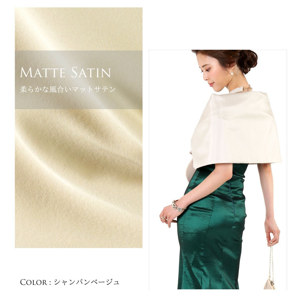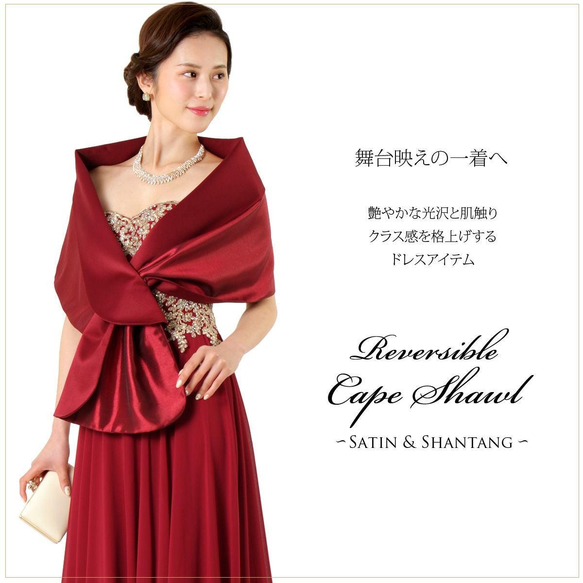 他の画像を見る 販売価格 ¥ 4,680 税込 パーティー 結婚式 お呼ばれ シャンタンとマットサテンのリバーシブル サテン イブニング ショール FJ-007470 カートに入れる お気に入りに登録する
