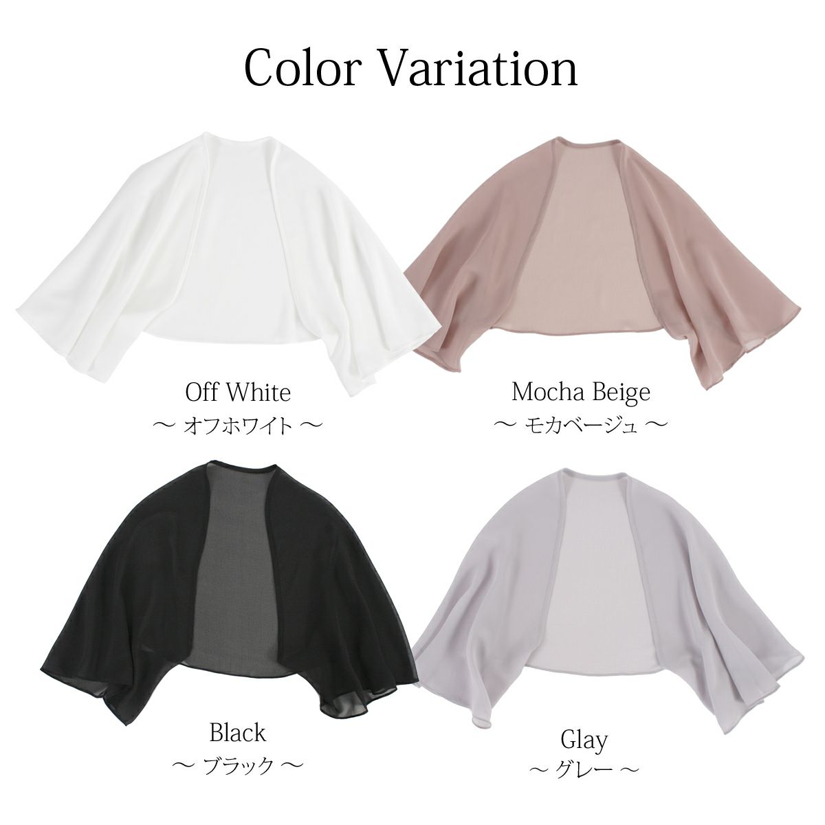 縫い目のないシームレス仕上げで流れるようなシルエットのボレロ。様々なシルエットのドレスに合わせやすく、軽く、シワになり難いので持ち運びにも便利。軽やかな透け感と緩やかに広がるバタフライスリーブの袖は美しく軽やかに肌を包み込みます。ワンサイズでS〜LLサイズまでの対応。 ※お家でお洗濯して頂けます。引っ掛かりには充分ご注意下さい。(手洗いもしくは、ネット使用の洗濯機洗い(ソフトコース)をお勧めします。)