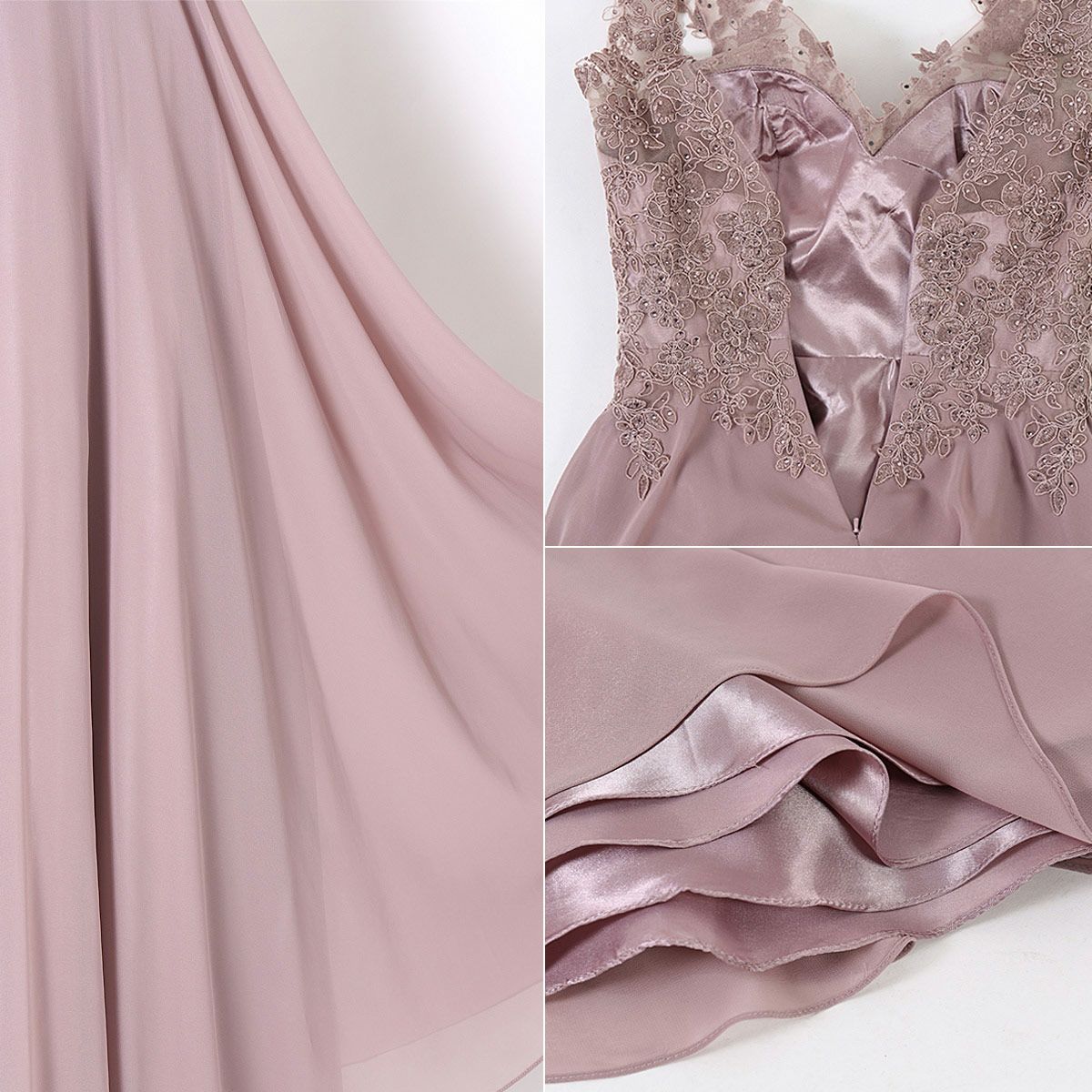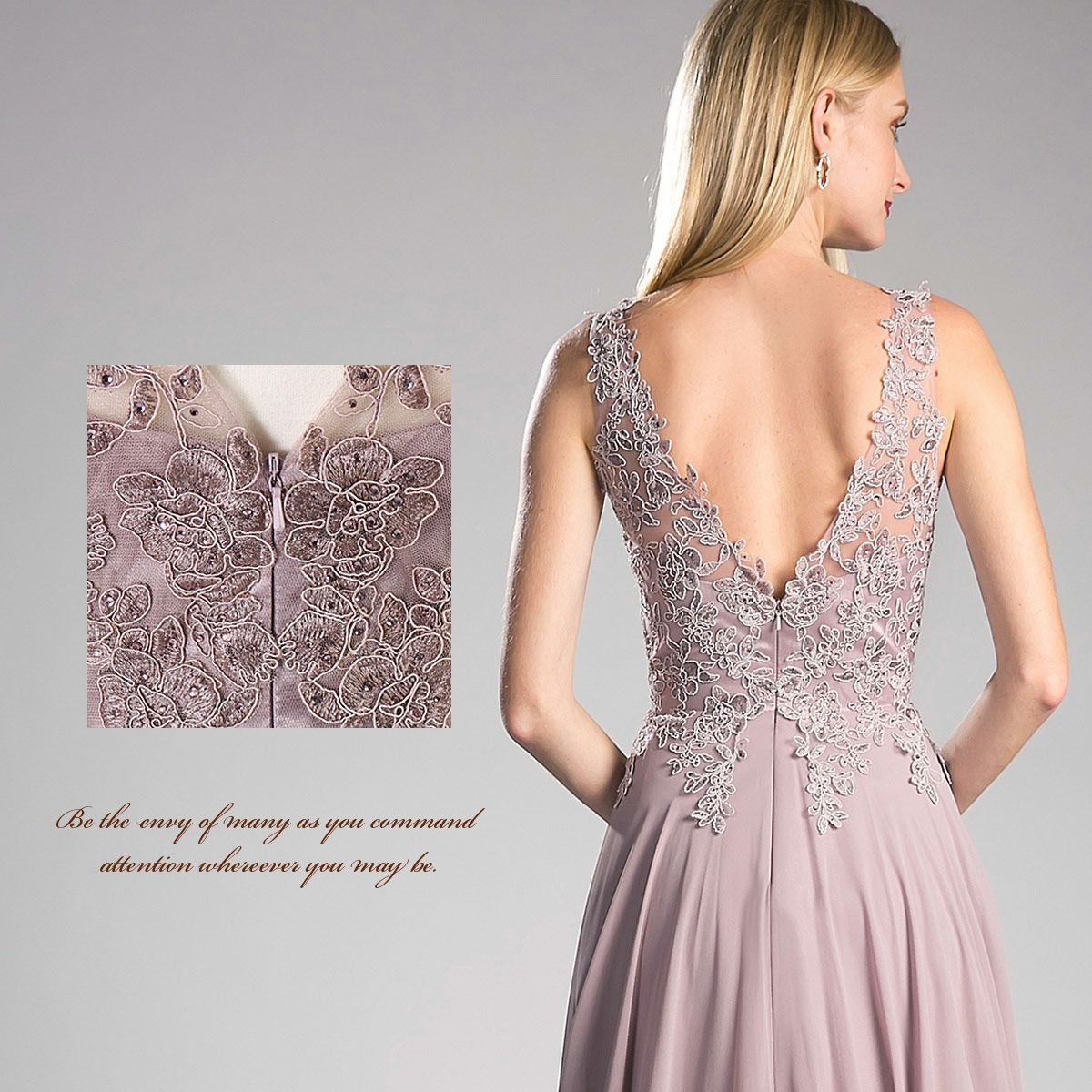 デコルテラインをツタ柄のコード刺繍&同色のビジューが飾り、芸術的なエッジが表情豊かに。ウエスト周りにも同様に流れるようなツタから、脚長効果のあるの装飾使いですっきり見せ。裾へかけたっぷりのフレアシルエットは歩く姿、演奏姿をエレガントに。 裏地にも気遣った素材選び、地厚のシルキーサテン地を2枚重ね、表に重ねたシフォンは流麗に落ちるさざ波のような陰影を表現します。 胸元には柔らかなパットが内蔵。演奏会・二次会などに適したドレス、大きなサイズもご用意しています。