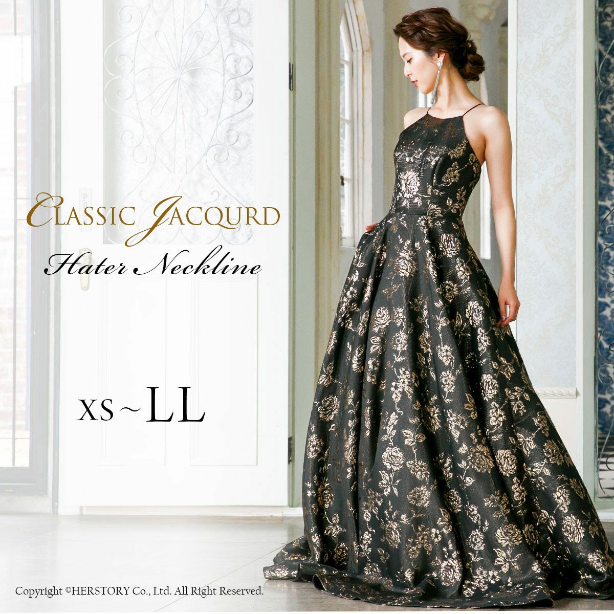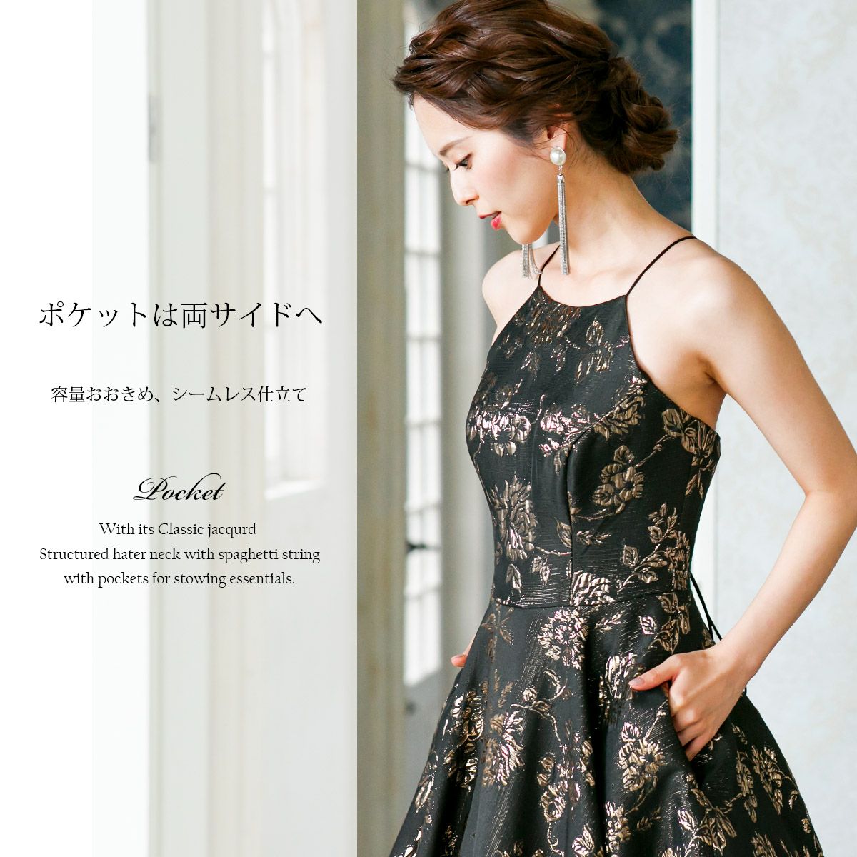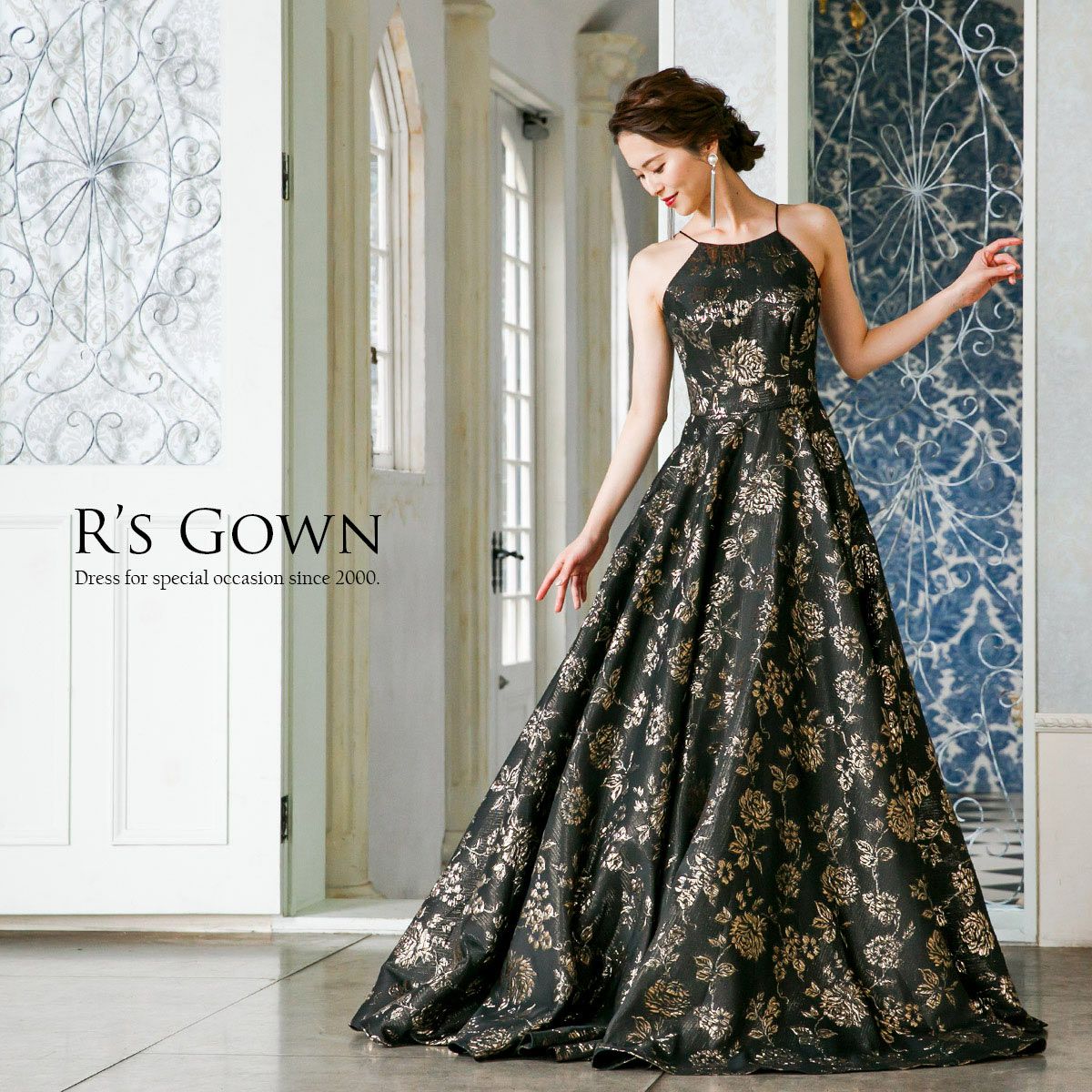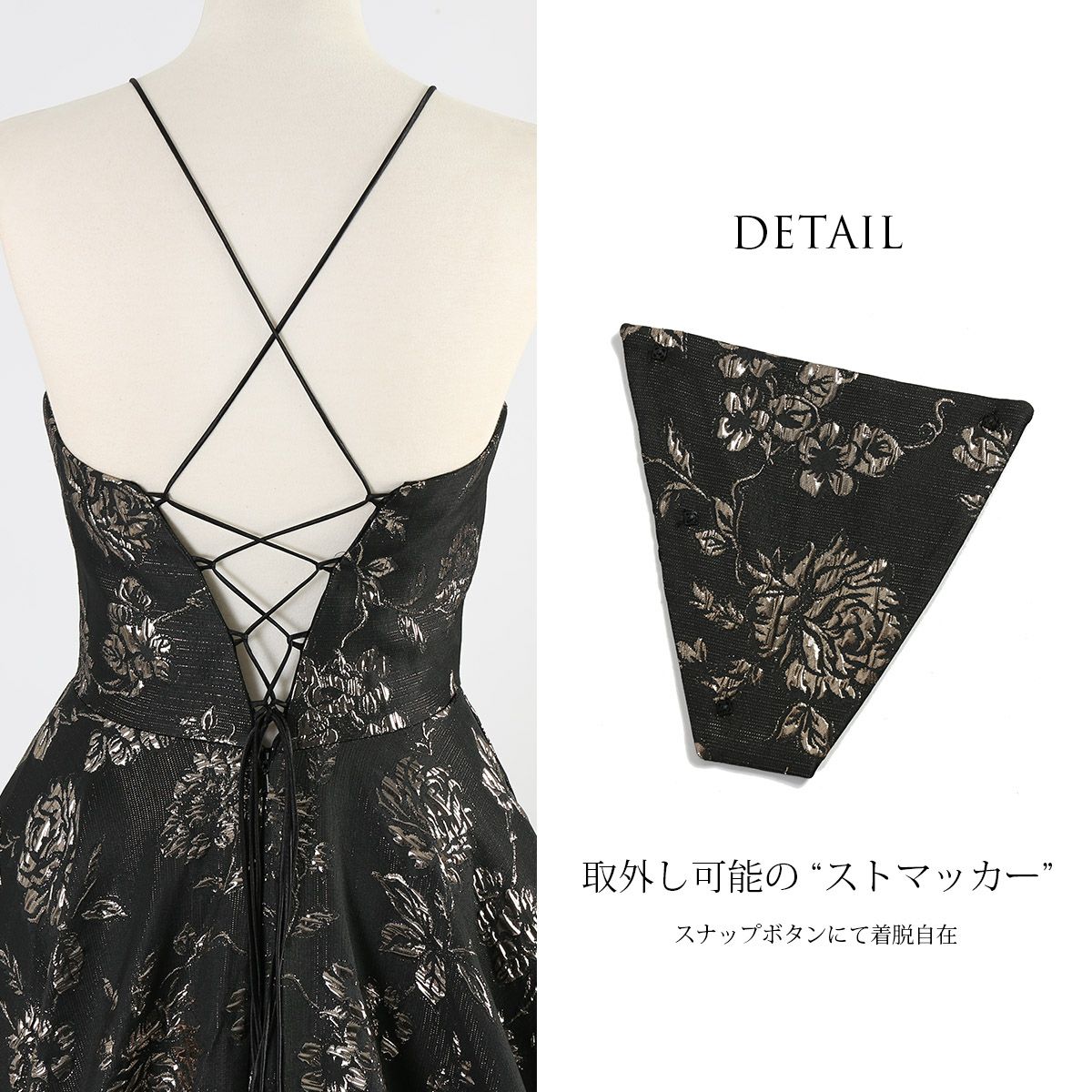 黒糸と金糸を紋織と同じ手法にて製作した織り物、ジャガード素材のロングドレス。金糸にて柄織りしたお花のモチーフ部分はほんのり立体感があり高級感ある佇まい。プリントとは違う深みのある上品な輝きに。