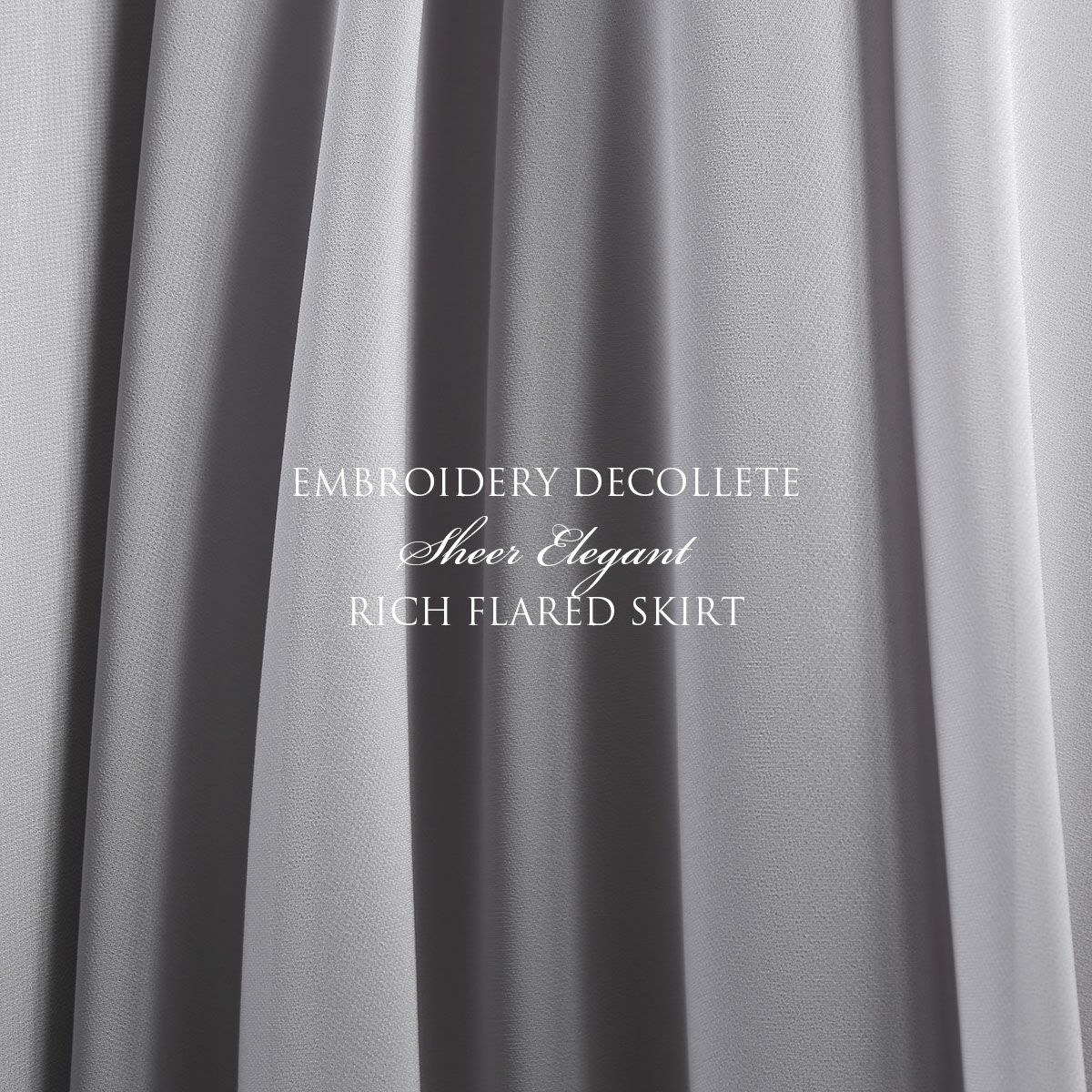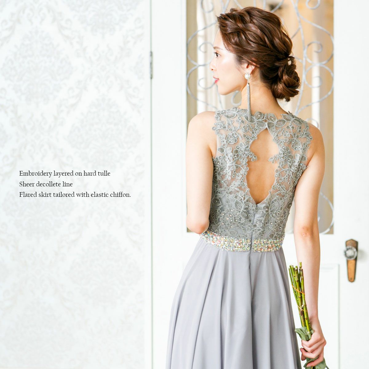 演奏会 発表会 大人 上質 上品 レースが神秘的!ライトグレーのロングドレス FD-260076