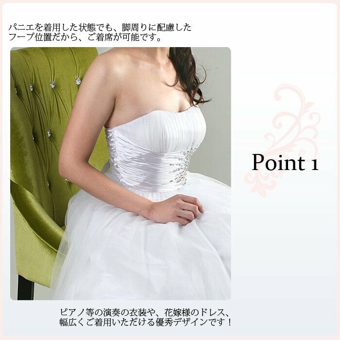 他の画像を見る 販売価格 ¥ 6,820 税込 在庫切れ ドレス専用パニエ ウエディング 演奏会 発表会 ステージ 衣装 6段フープ付きパニエ 調整可能 UW-PC3116M カートに入れる お気に入りに登録する