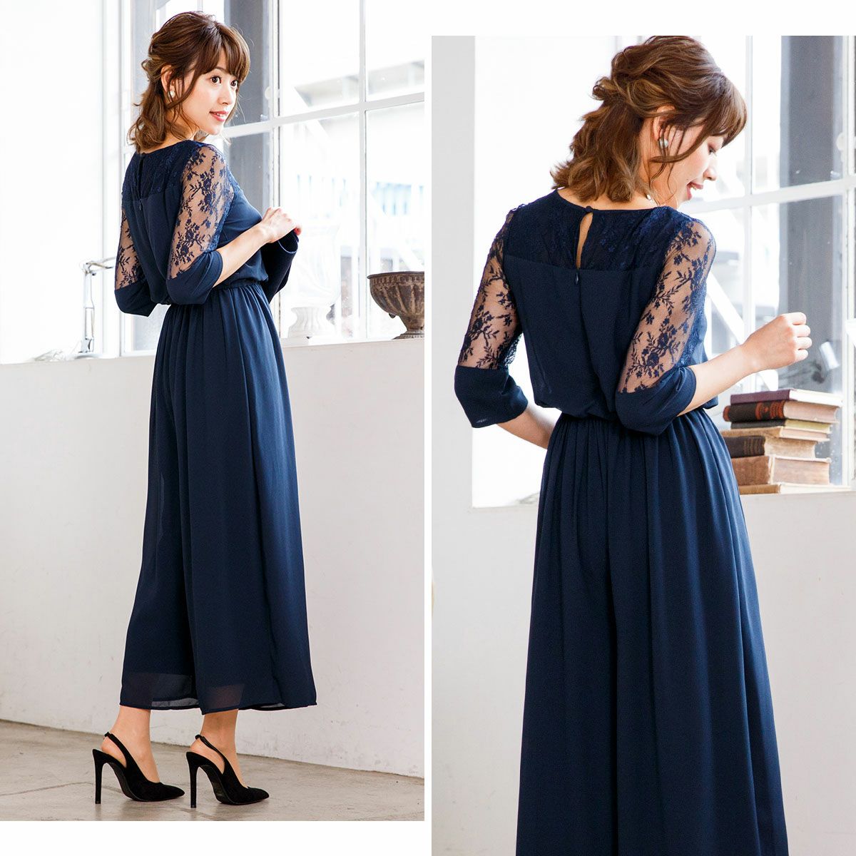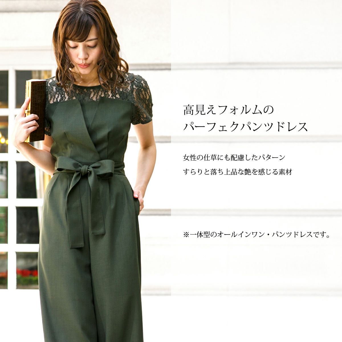 他の画像を見る 販売価格 ¥ 12,800 税込 ドレスコード 大きいサイズ スタイルアップ パンツドレス フォーマル スタイリッシュ 袖付き レース 切り替え シフォン オールインワン パンツドレス FD-1872213 カートに入れる お気に入りに登録する