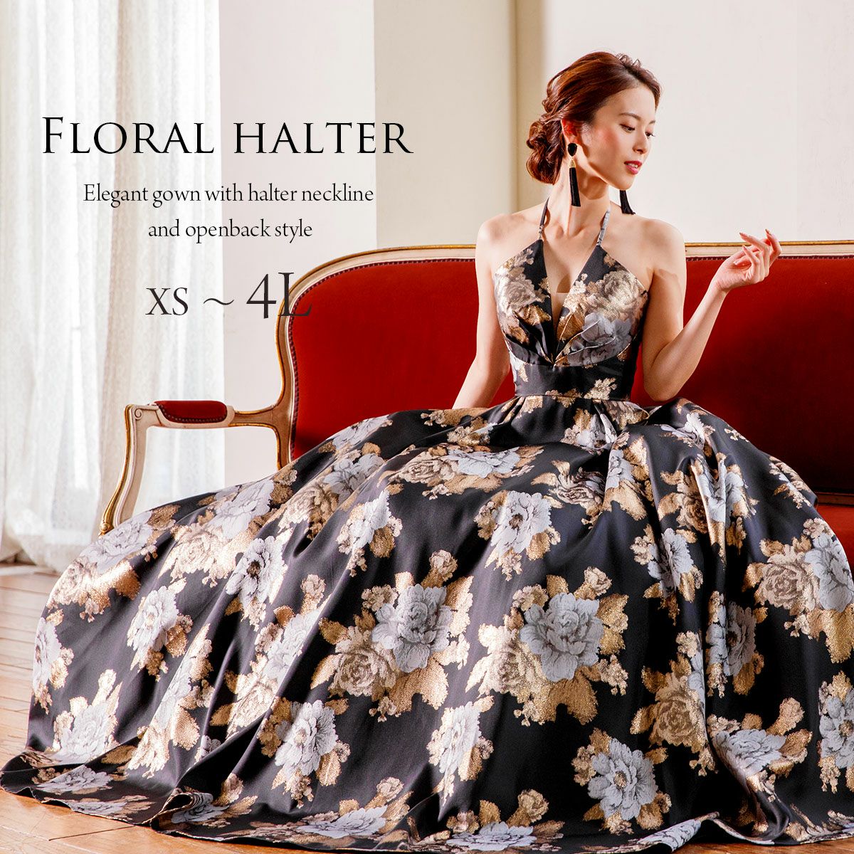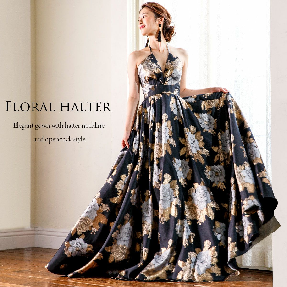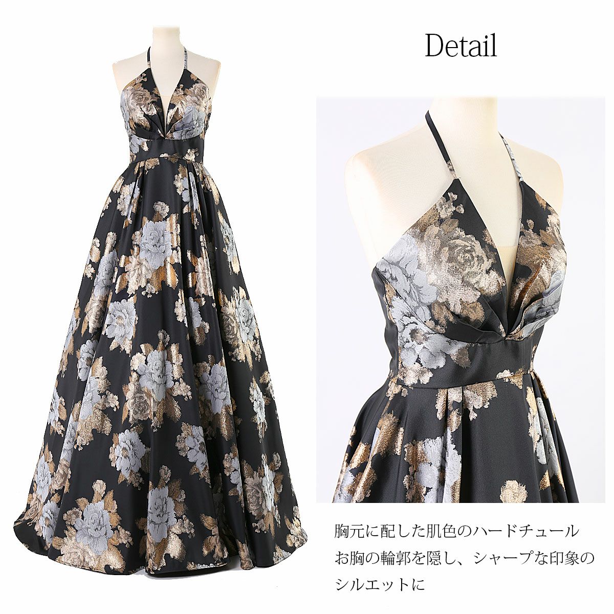 他の画像を見る 販売価格 ¥ 47,800 税込 演奏会 上質 豪華 ステージ 衣装 ホルターネック花柄 ロングドレス ジャガード織りAラインドレス FD-080274 カートに入れる お気に入りに登録する