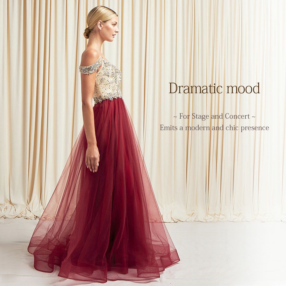 他の画像を見る 販売価格 ¥ 42,600 税込 演奏会 発表会 ステージ コンサート 舞台 衣装 ビジュー 豪華 華やか 上質 美彩色のオリエンタル刺繍 オフショルダーロングドレス FD-080292 カートに入れる お気に入りに登録する