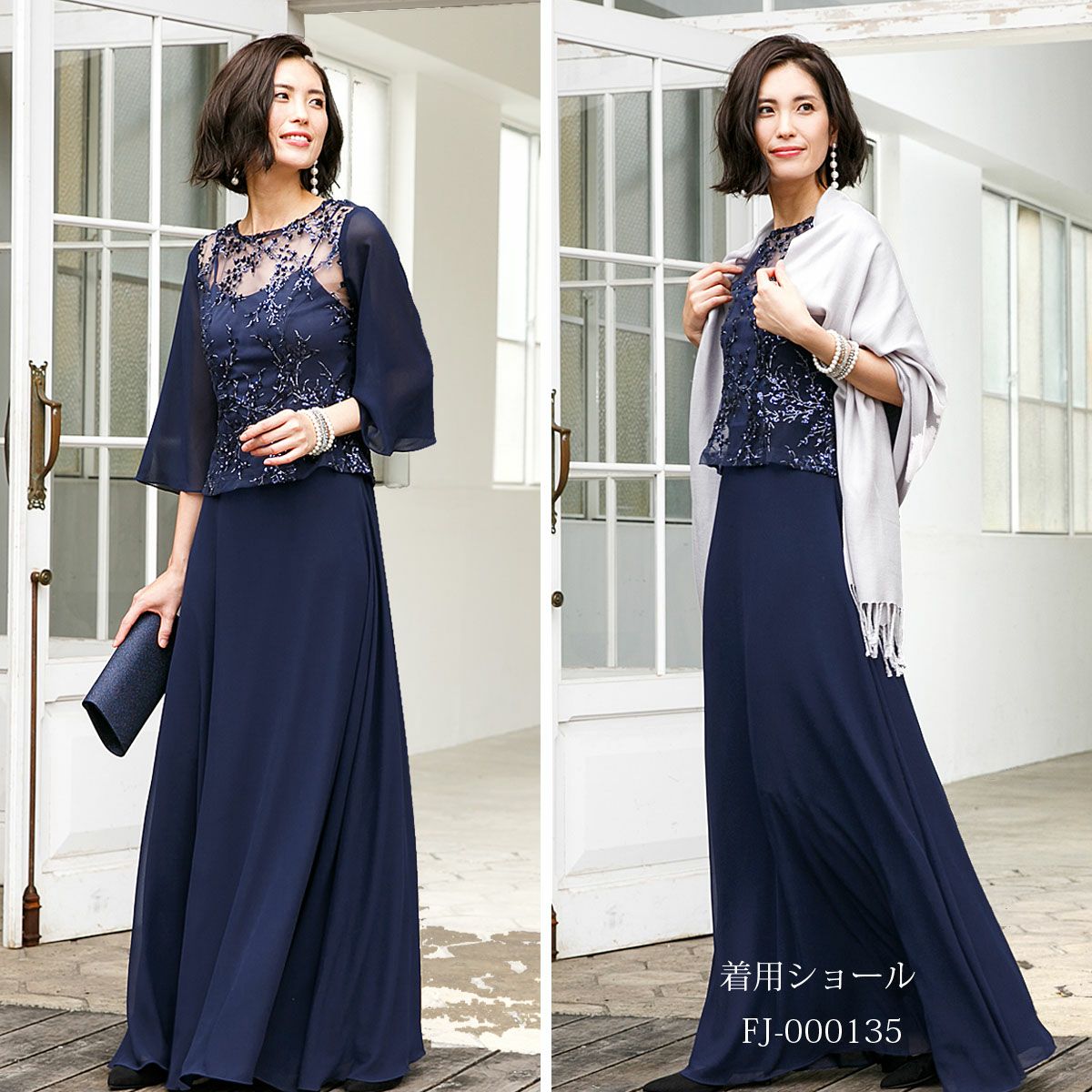 ロングドレス&ボレロセット 結婚式 母親 ドレス シンプル バロック模様 ロングドレス&ボレロセット FD-180095