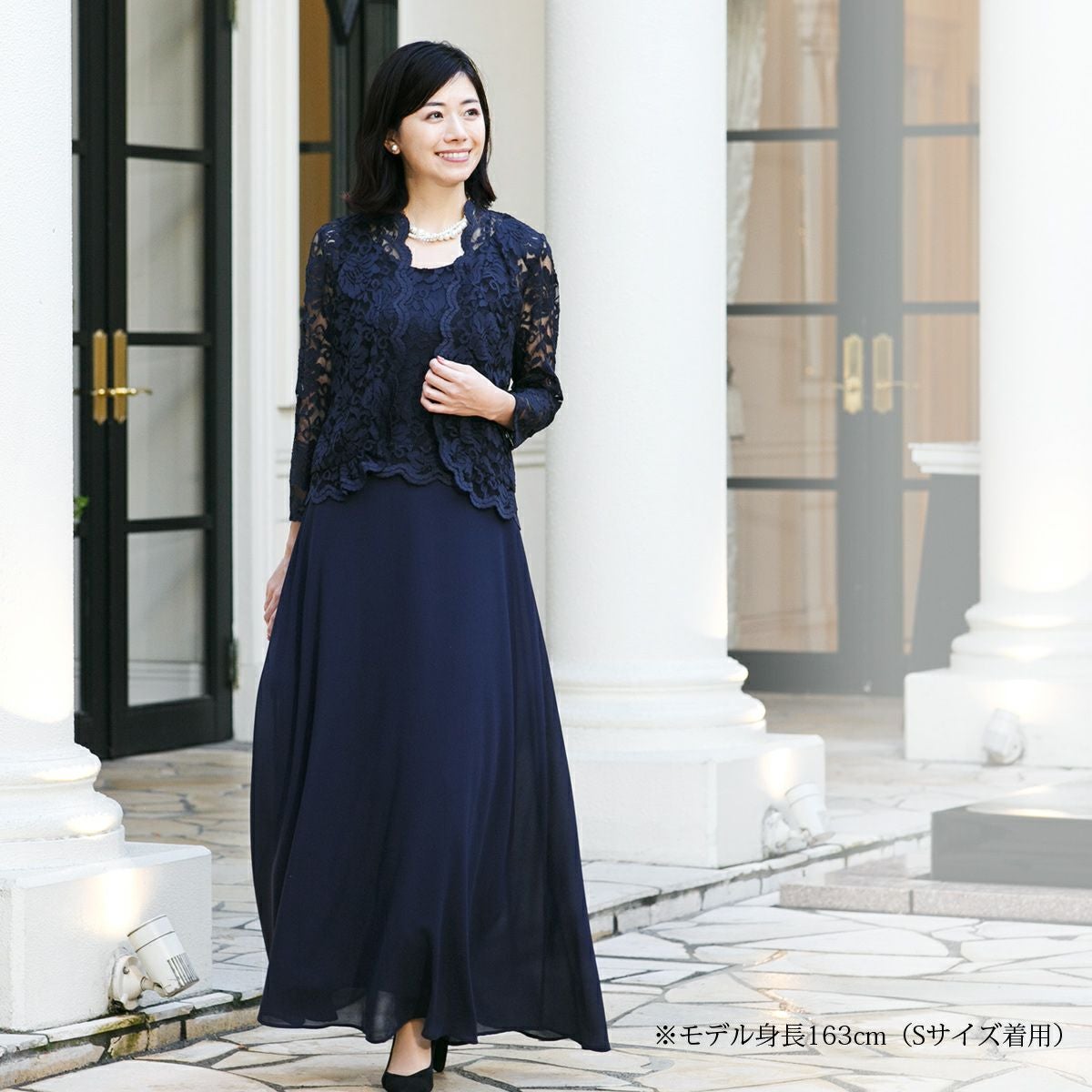 今回初めて洋装で参列することになり実店舗やネットで色々探してこちらで購入しました。M、Lで迷い余裕もってLサイズにして156cmでパンプスを履いて長さはちょうど良かったです。着心地も良く来月の披露宴が楽しみです。何度も着ることはないので金額的にも良い買い物が出来ましたまる。