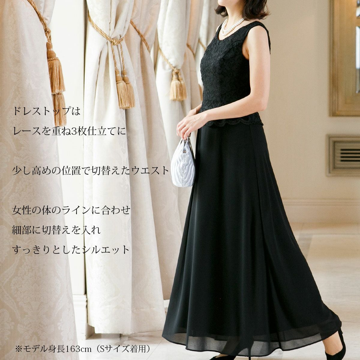 ご親族の結婚式への列席、演奏会、コンサート、マザーズドレス・ママドレスとしてお勧めな1着。