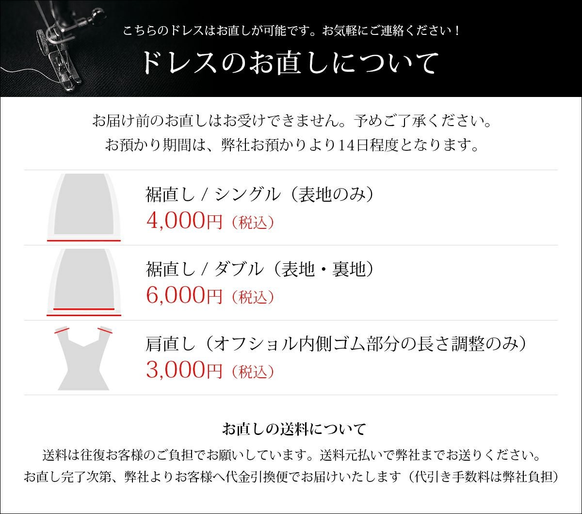 オフショルダーデザインは顔周りをすっきりとさせ、華奢に見せてくれます。 肩はゴム入りで、自然なフィット感。ずれ落ちを防止します。 ビスチェ部分にはパッドと6本のボーンを内蔵し、綺麗なバストラインを作ります。