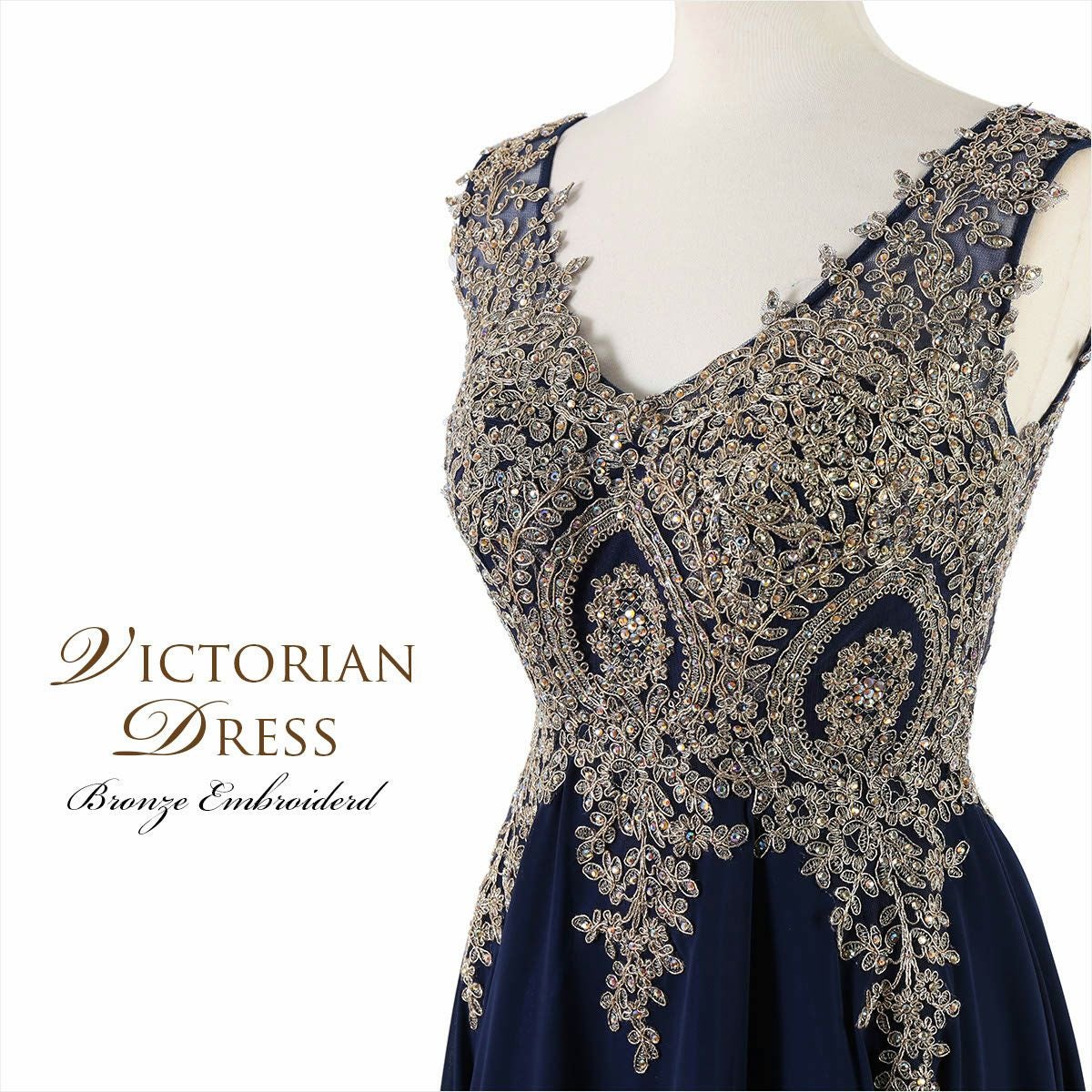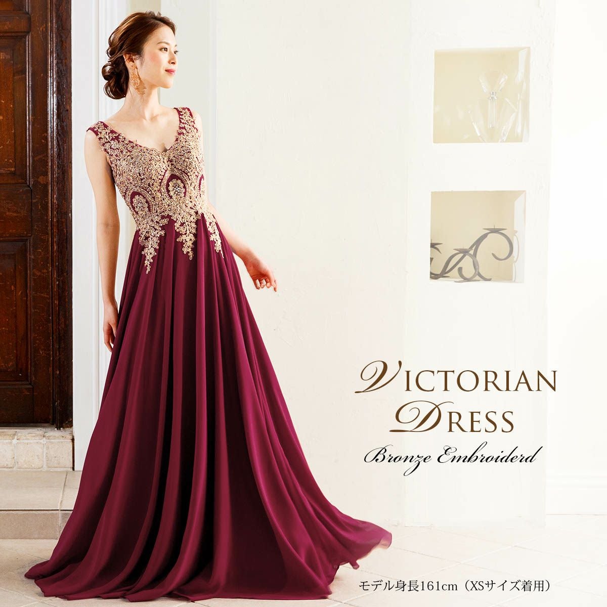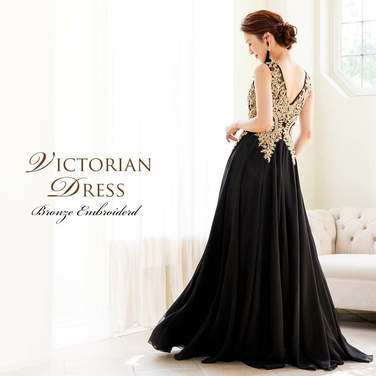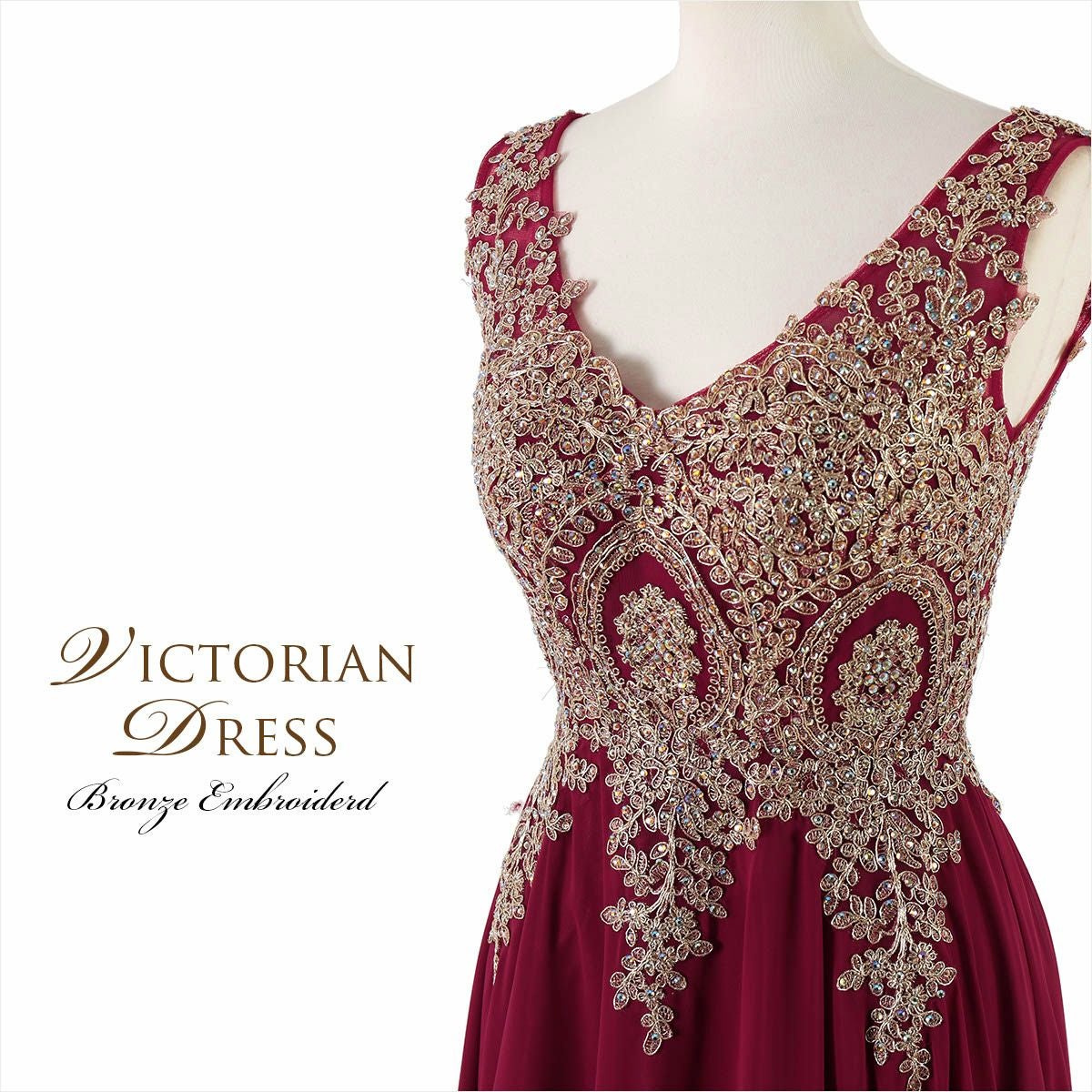 演奏会 発表会 音楽家 ステージ衣装 コンサート 主役 大きいサイズ ヴィクトリアン刺繍 シフォン Aライン ロングドレス FD-160080
