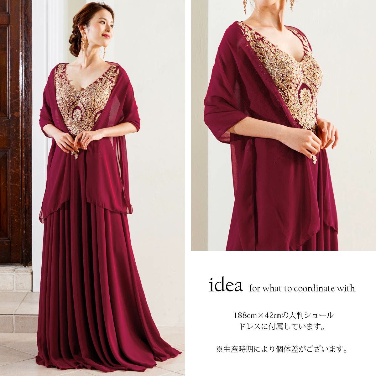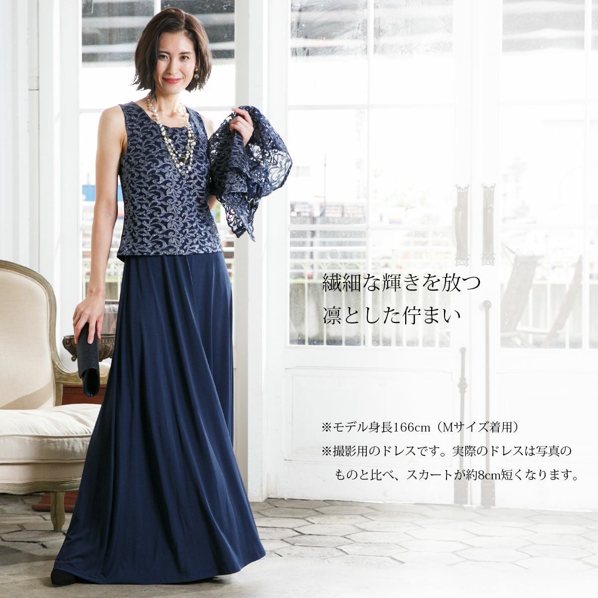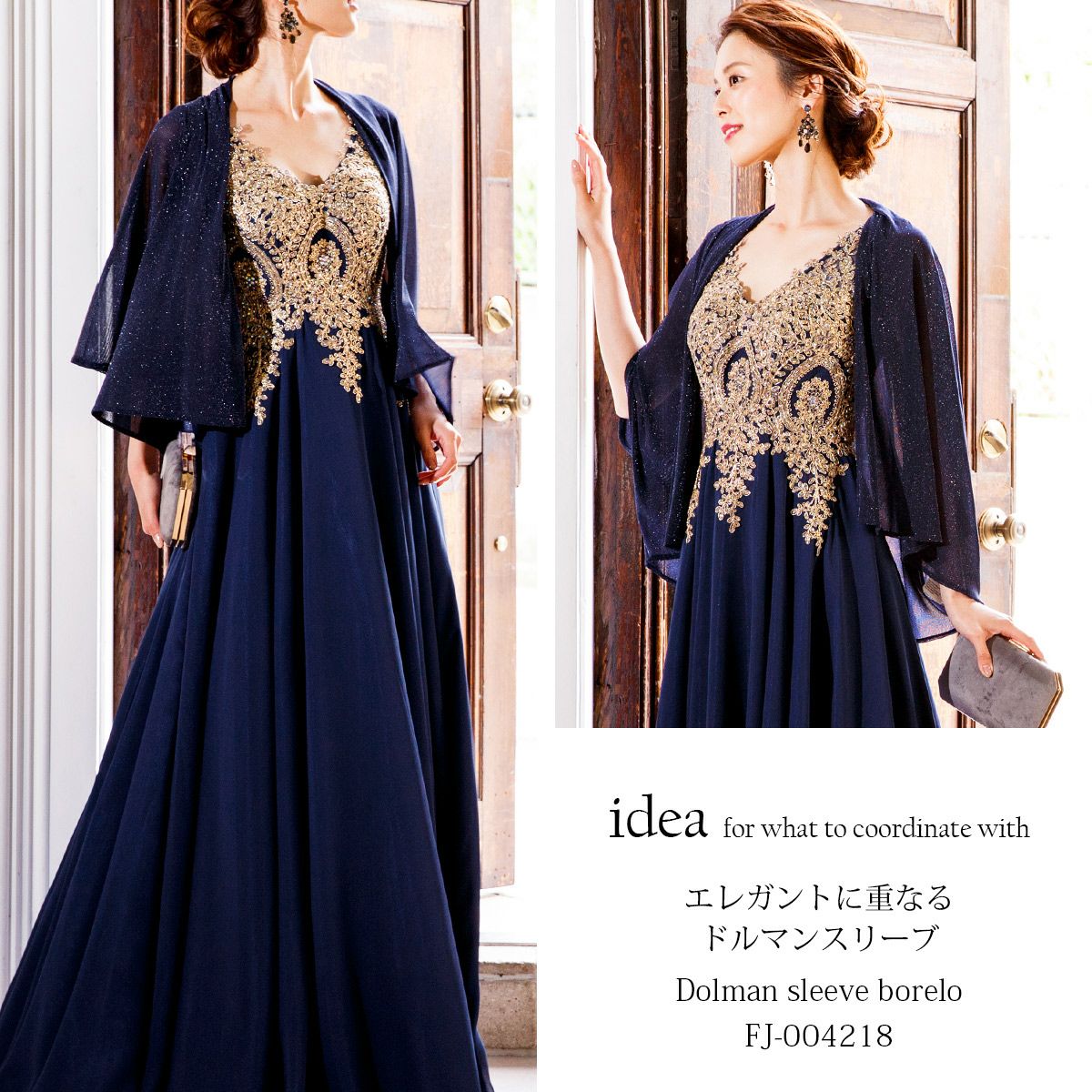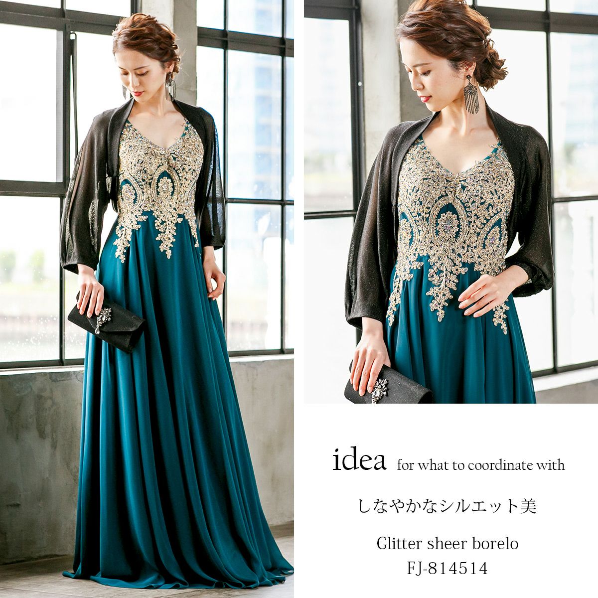 ロングドレス 結婚式 母親 大きいサイズ対応のボレロ付きロングドレス FD-180105