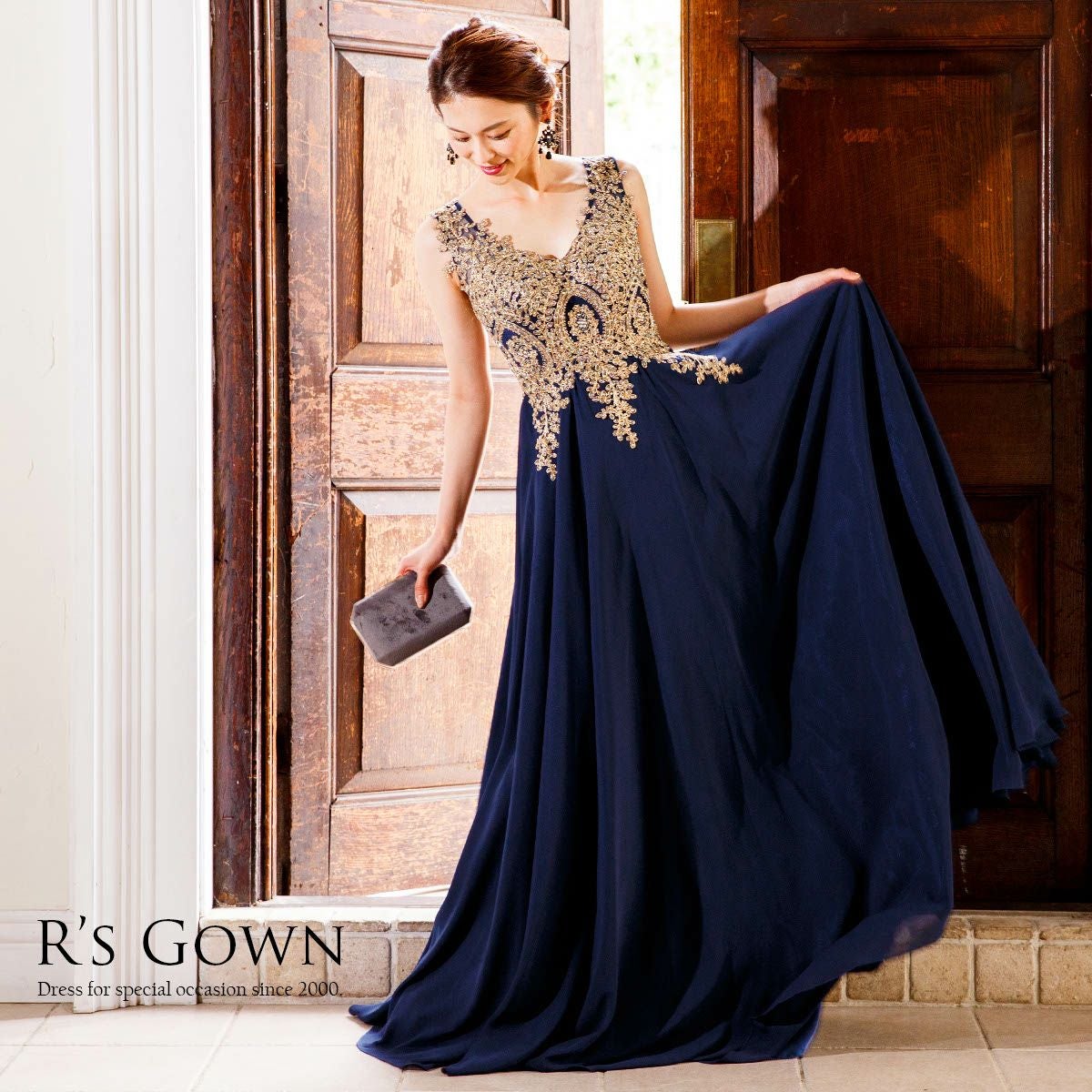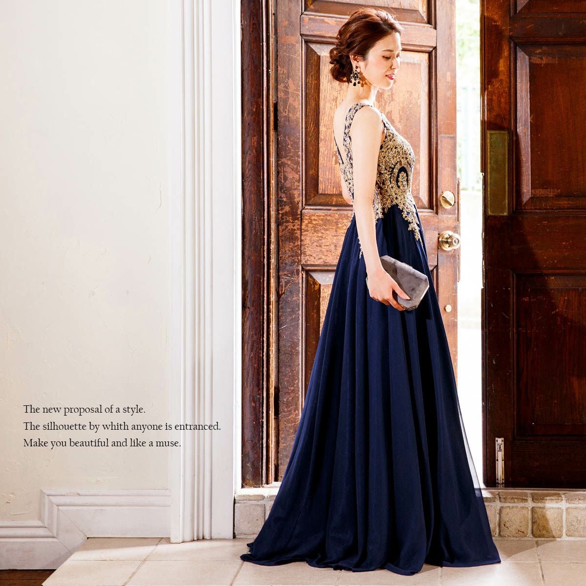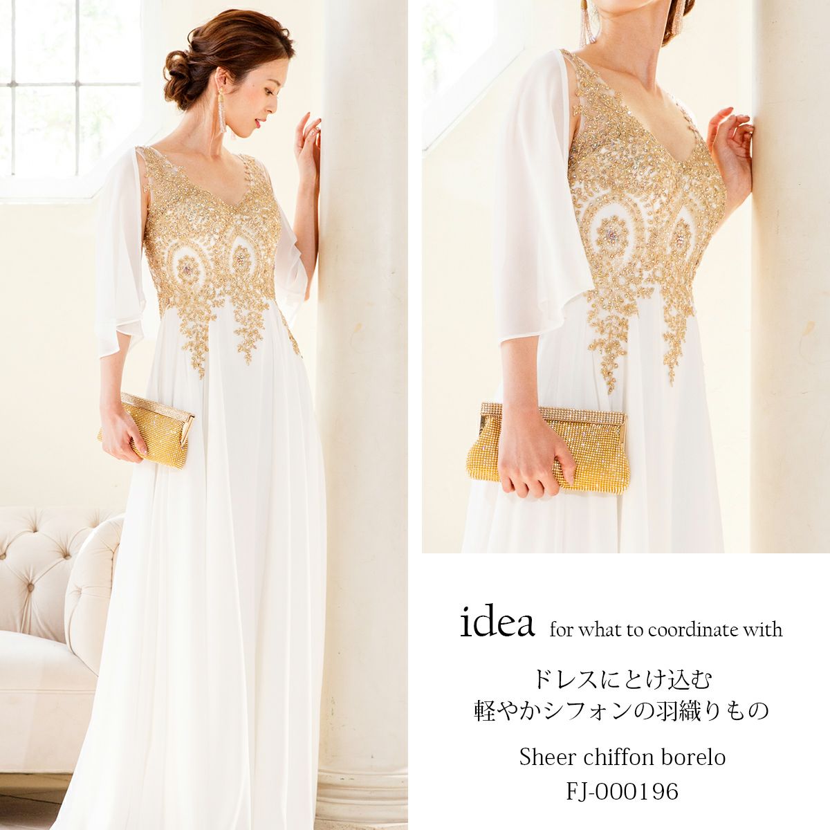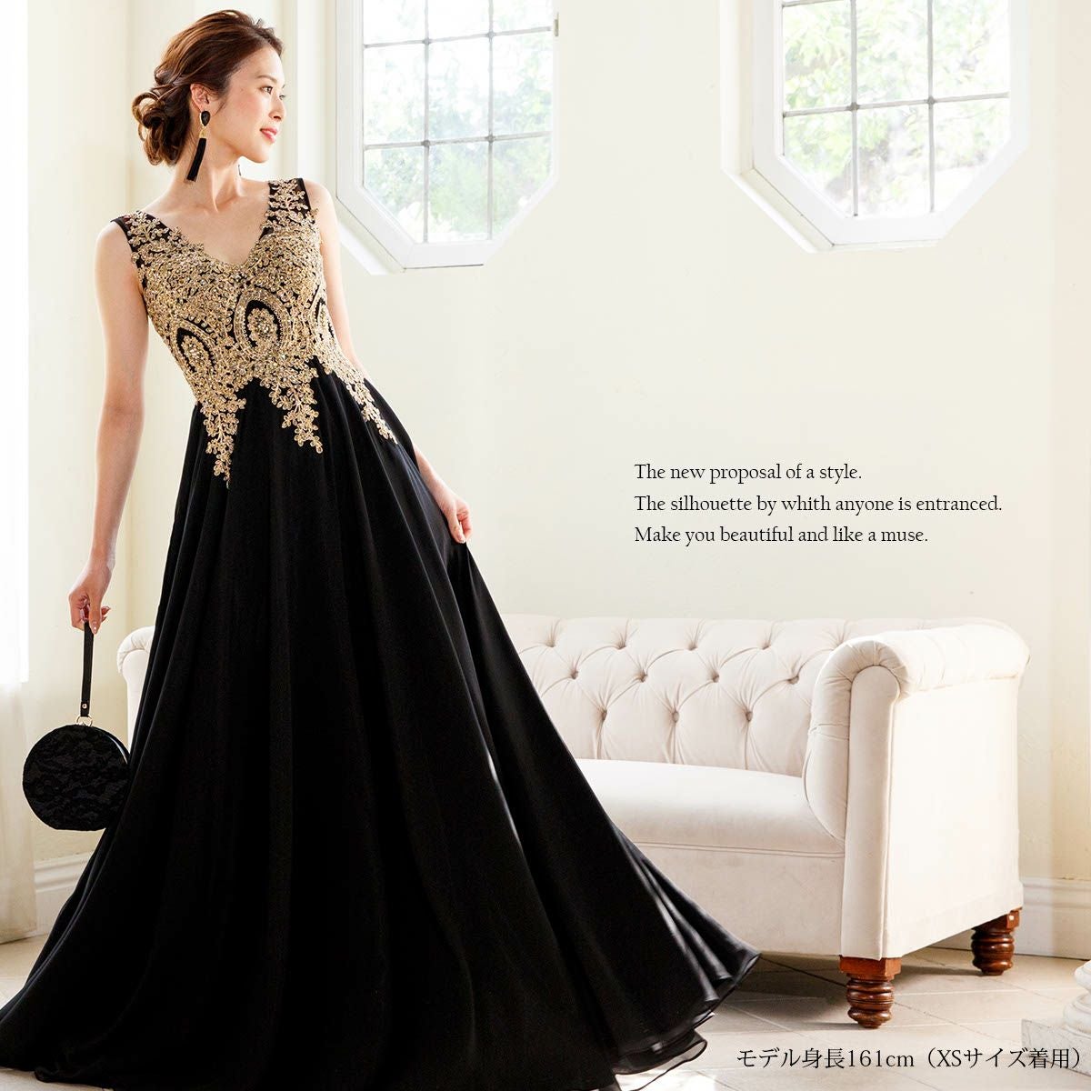 演奏会 舞踏会 ガラパーティー 高級 金糸の刺繍 デコラティブロングドレス FD-260074