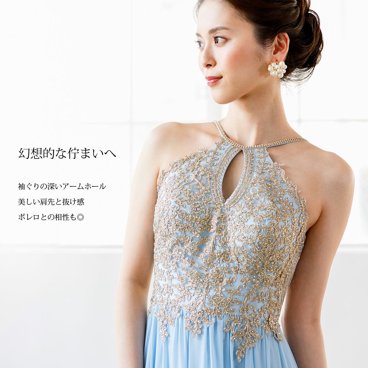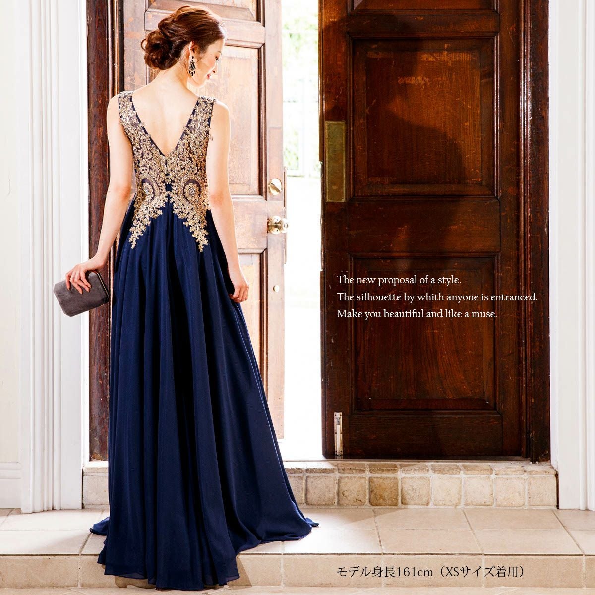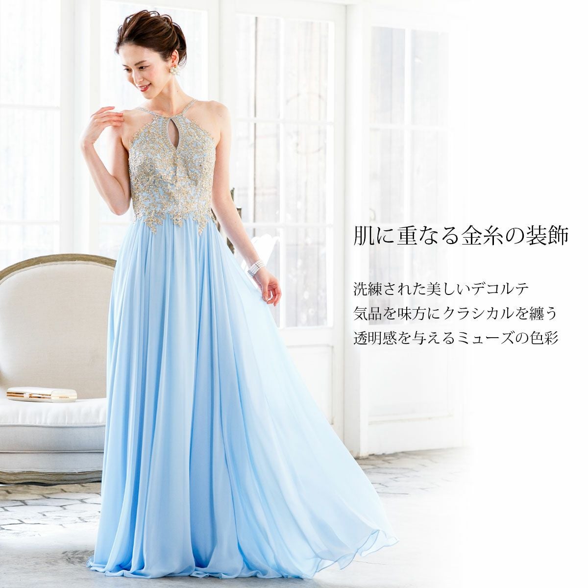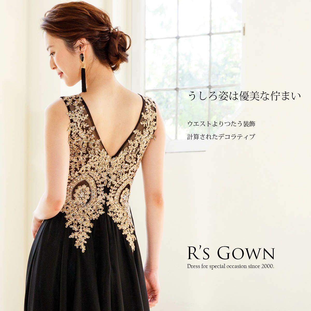 演奏会 舞踏会 ガラパーティー 高級 金糸の刺繍 デコラティブロングドレス FD-260074