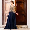 高品質 発表会 ゴージャス 数量限定 ネイビー色のジャガード演奏会ロングドレス FD-080273