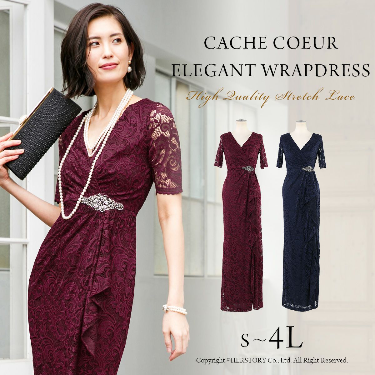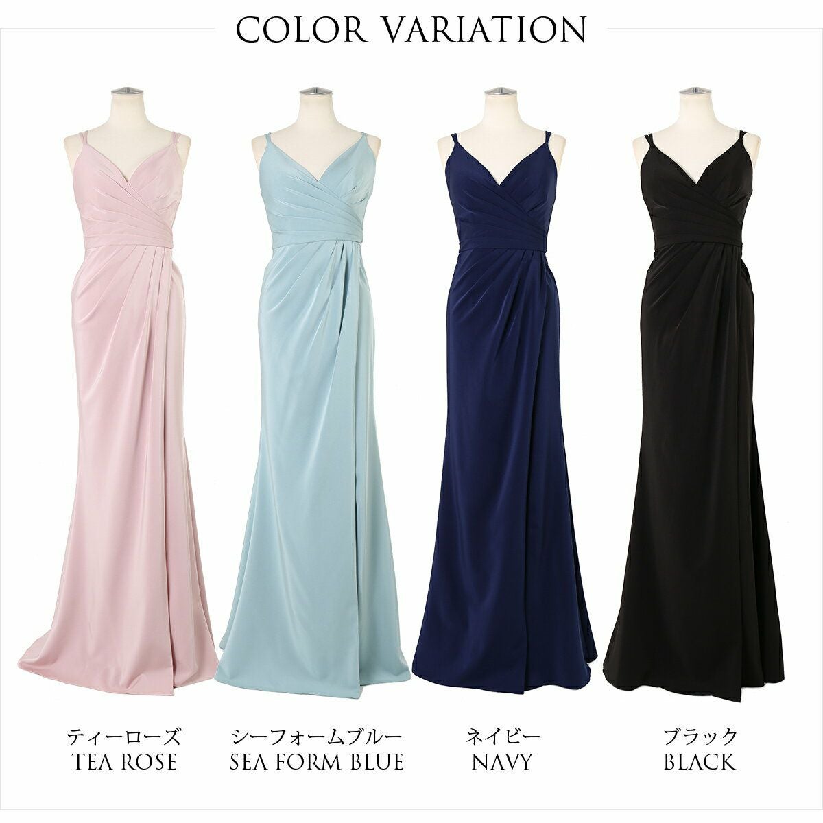 結婚式 花嫁 二次会 ブライドメイド 演奏会 披露宴 大きいサイズ スリットで魅せる!シルキーサテンのラップロングドレス FD-230030