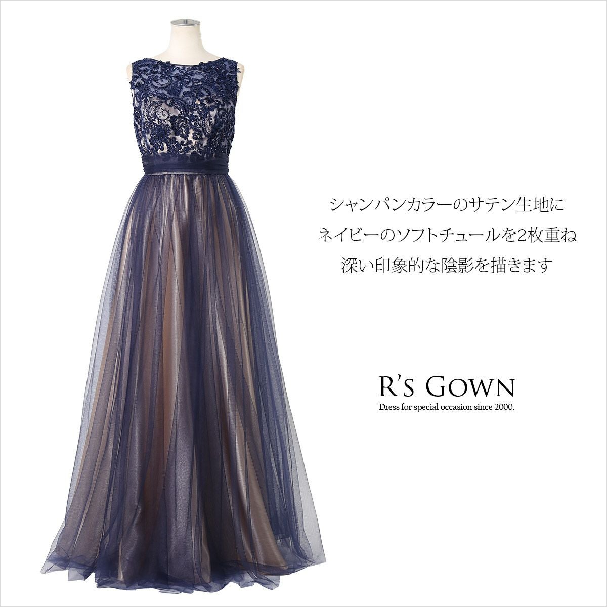 発表会 コンサート ステージ 演奏会 ステージドレス クラシカル ネイビーのチュールロングドレス FD-080258