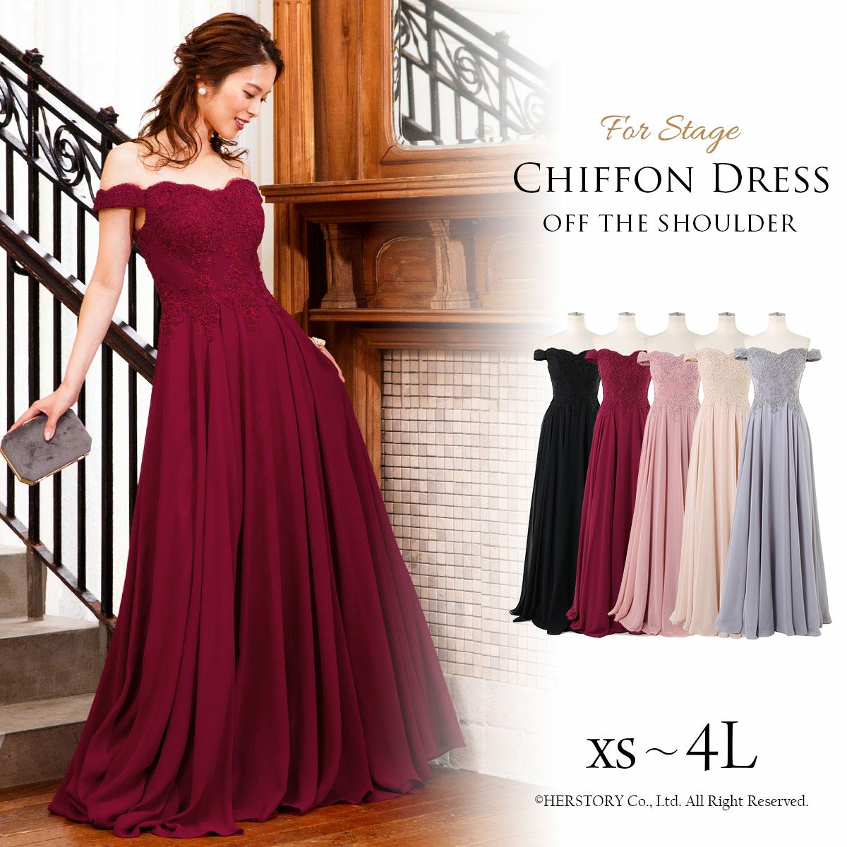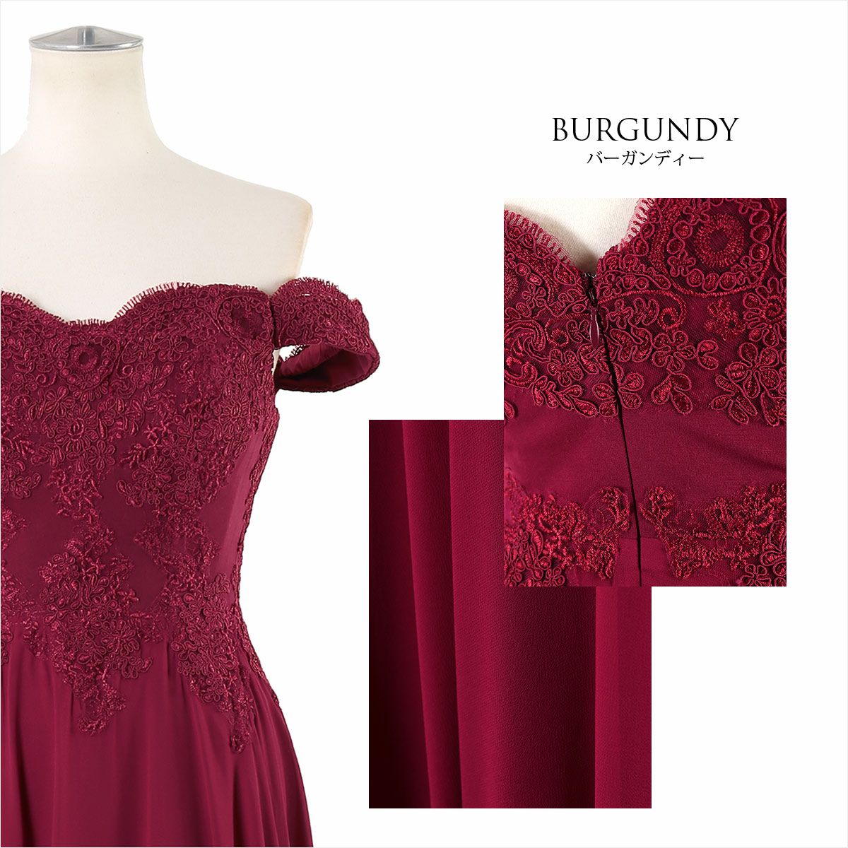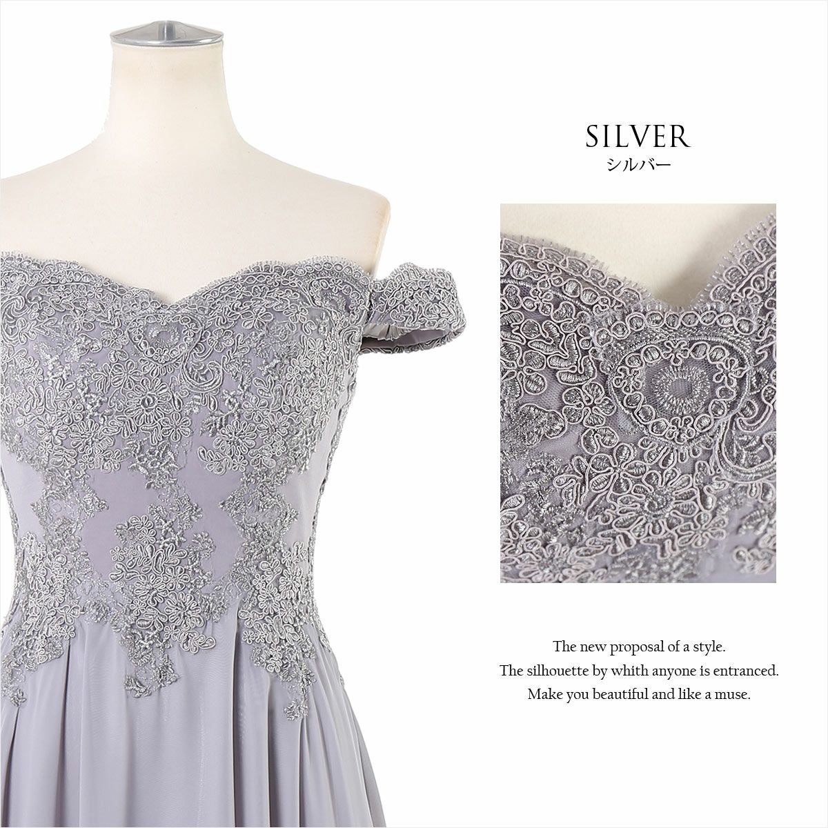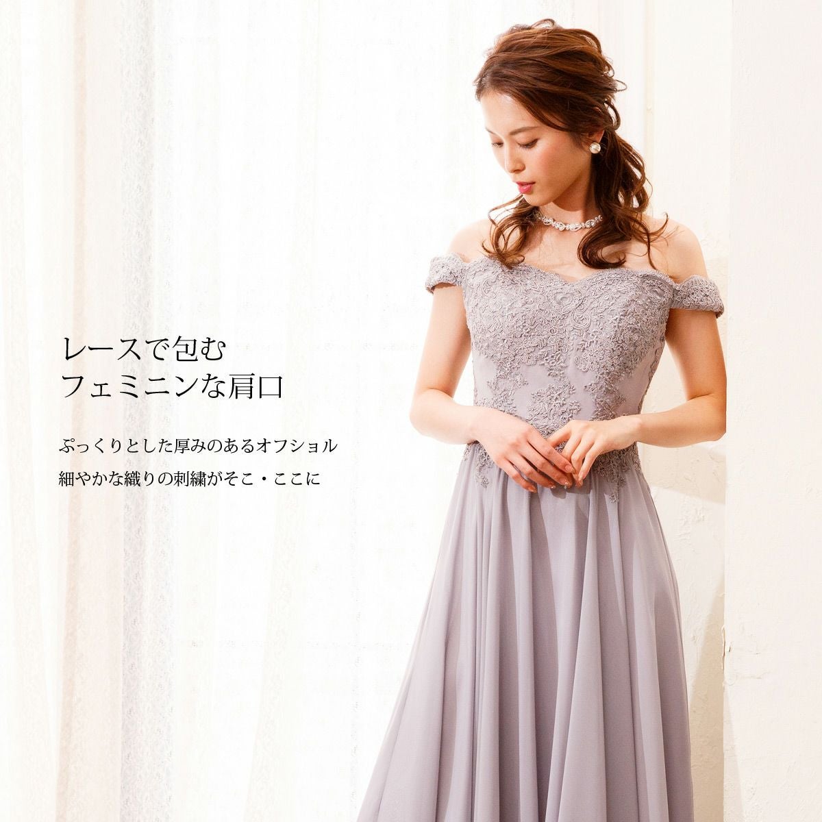 大きいサイズ 演奏会 かわいい 結婚式 パーティ 刺繍仕立てのデコルテ♪オフショルダーロングドレス FD-160086