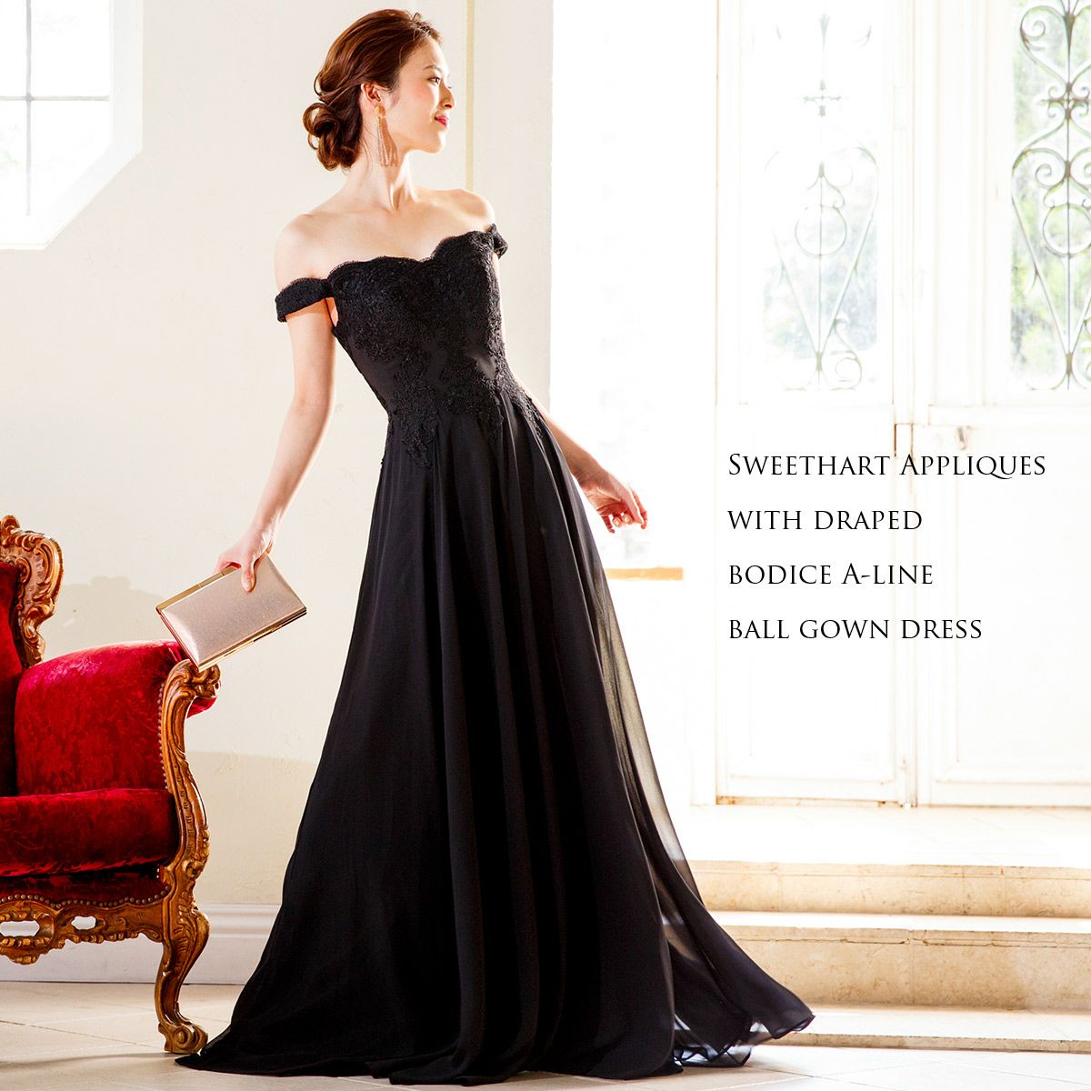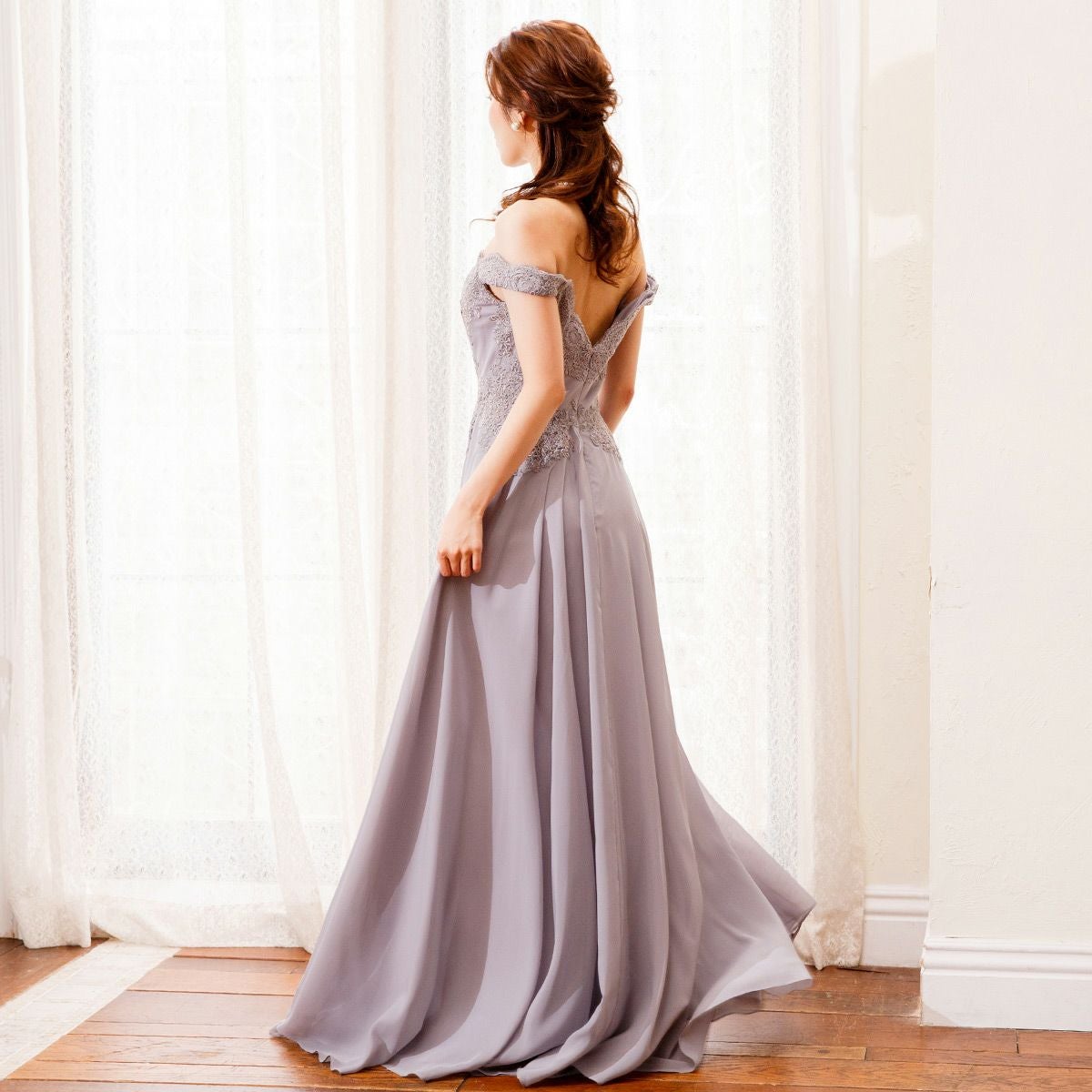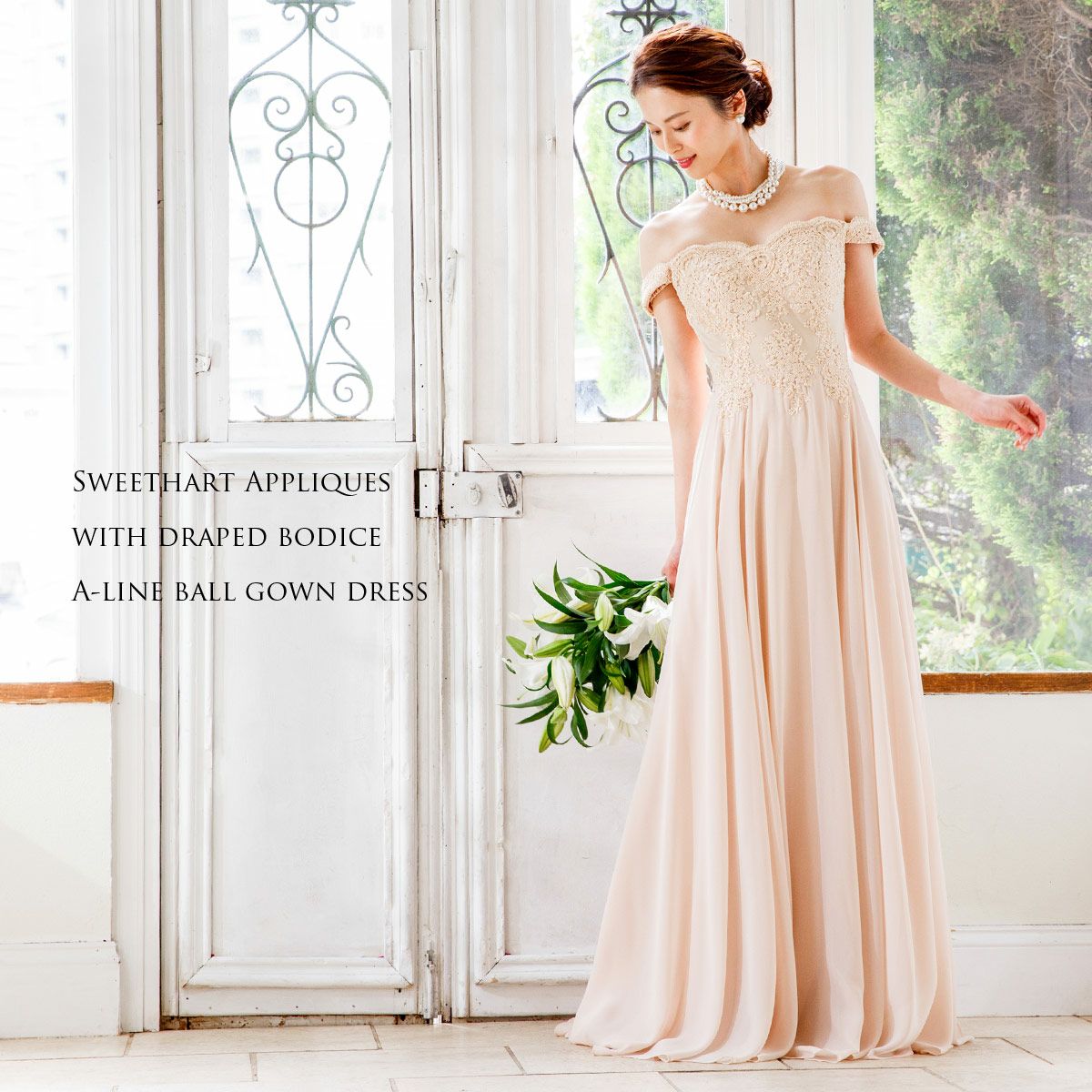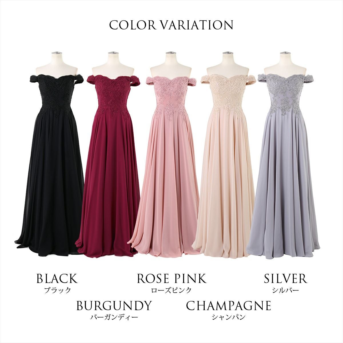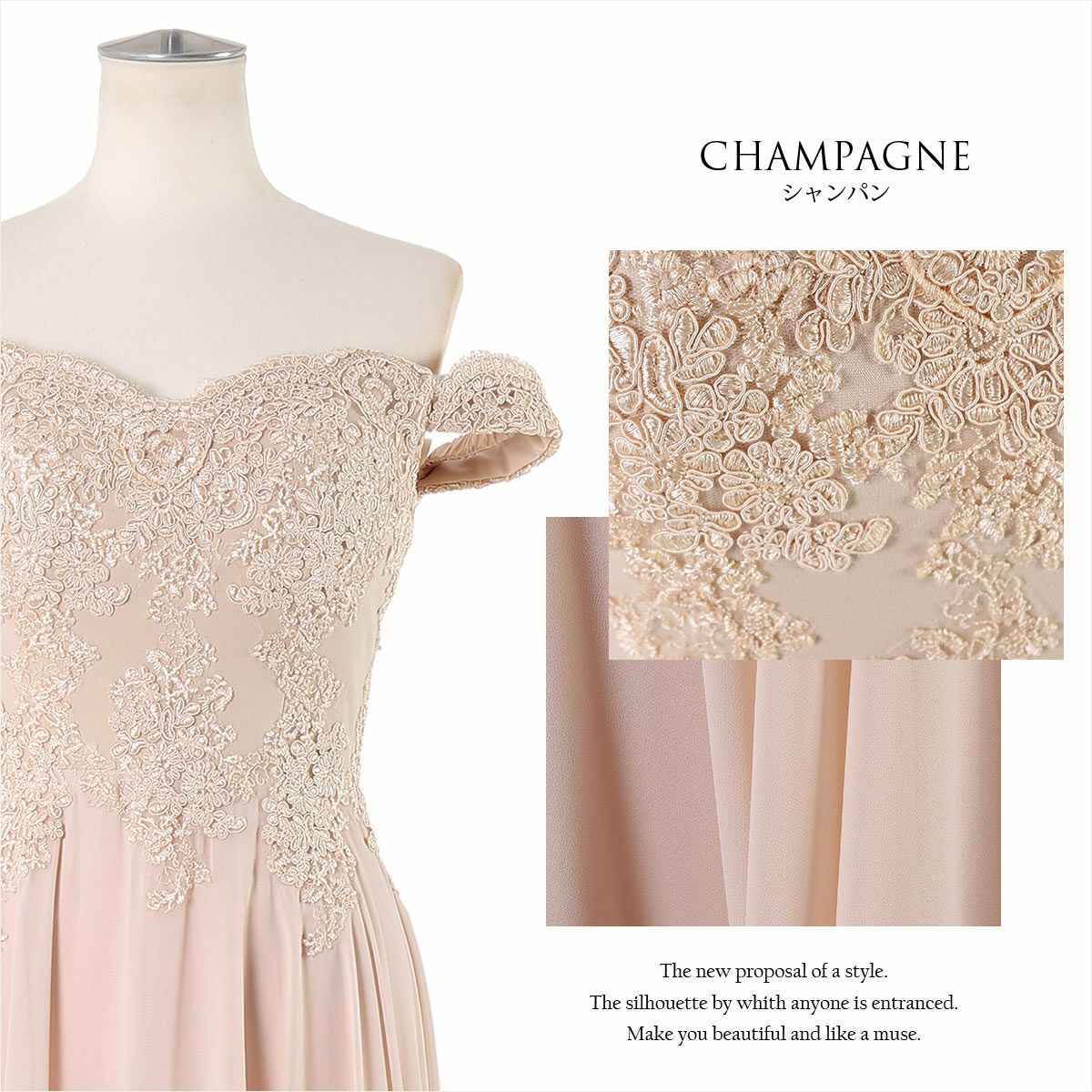 大きいサイズ 演奏会 かわいい 結婚式 パーティ 刺繍仕立てのデコルテ♪オフショルダーロングドレス FD-160086