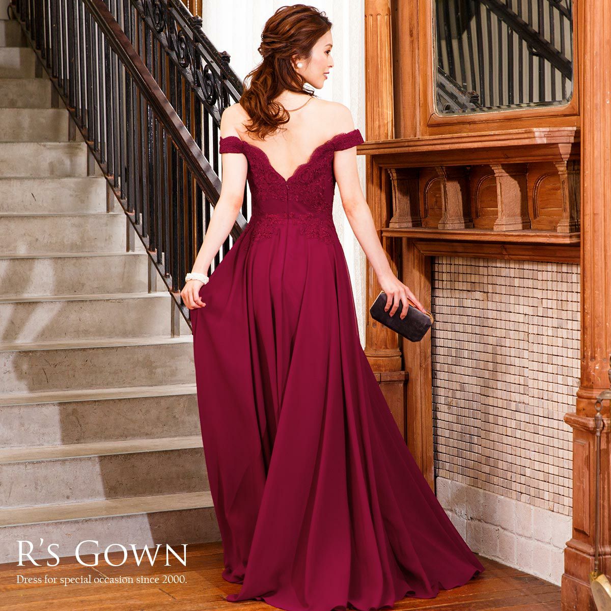 発表会 声楽 ステージ 衣装 クリスマスカラー オフショルダーの演奏会用ロングドレス FD-080260-C