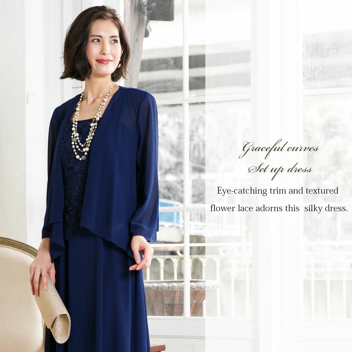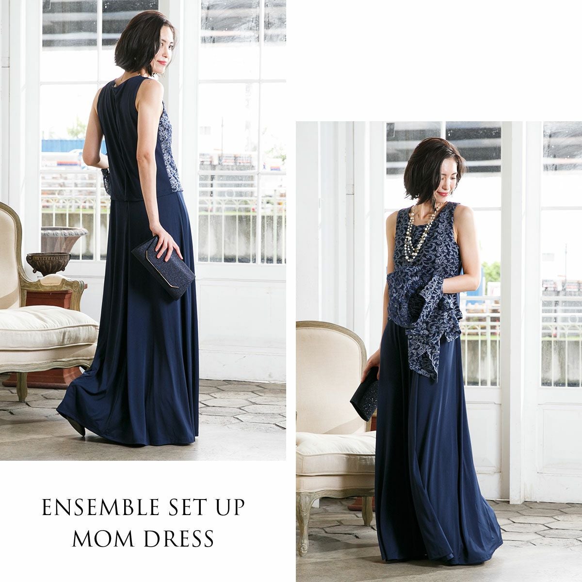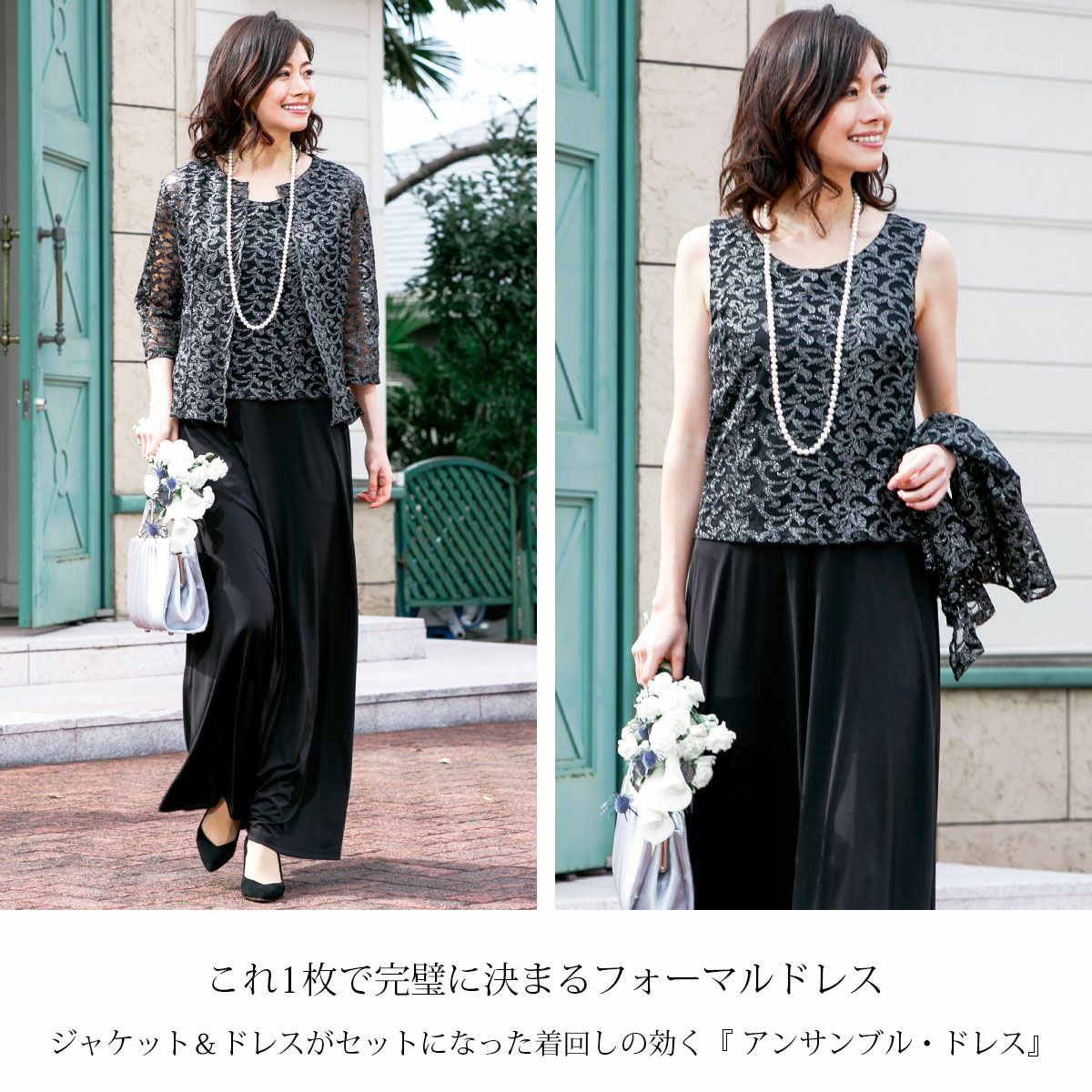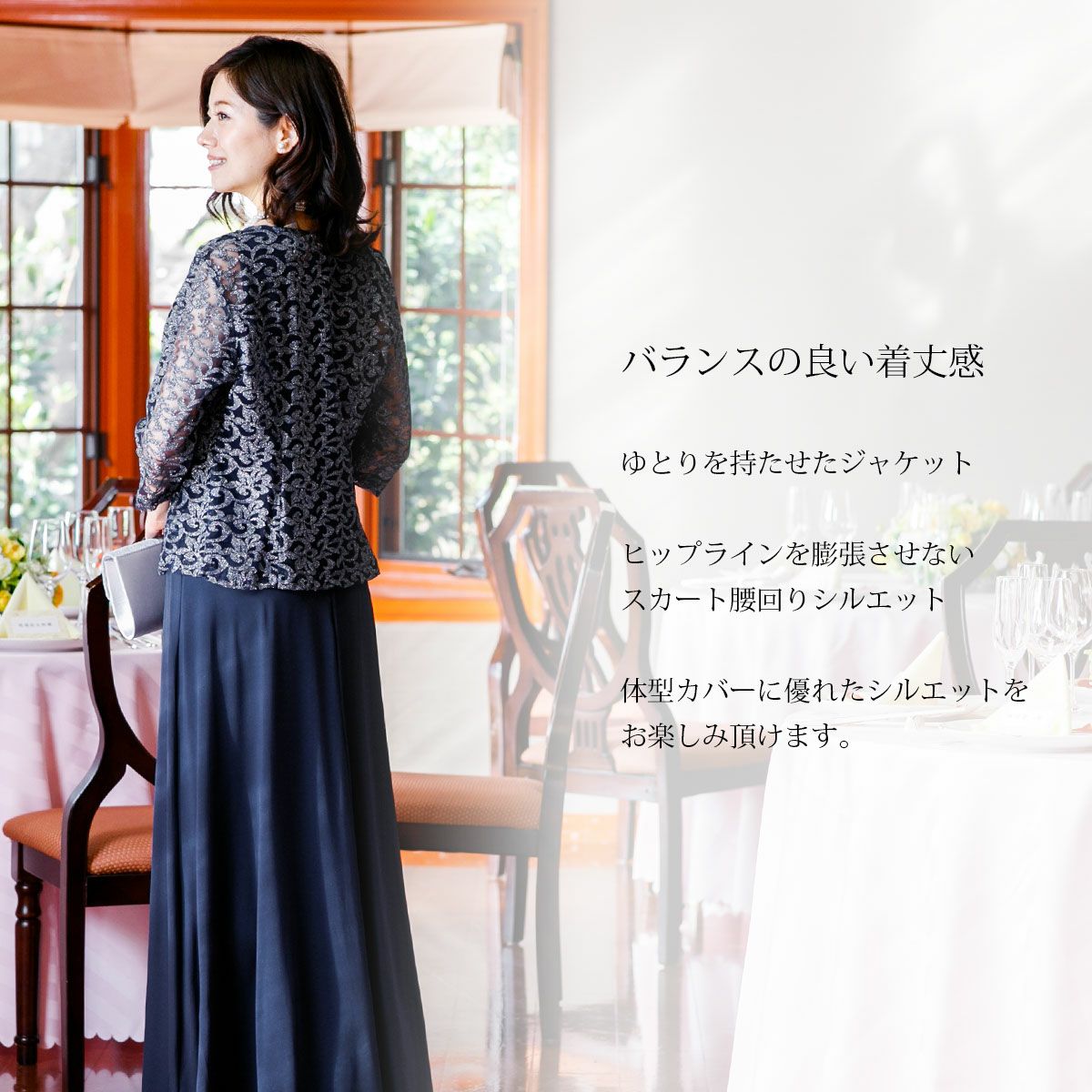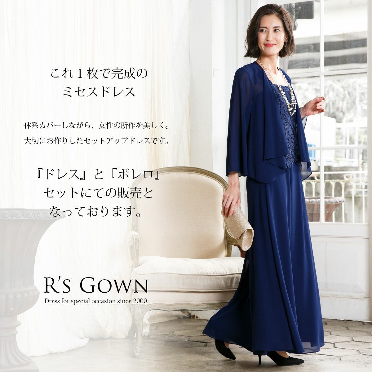 母親 ロングドレス 結婚式 お母様 ロングドレス ミセス セットアップ 羽織り 大きいサイズ アフタヌーンドレス ママドレス クラシック セレモニードレス 選べる2つの着丈!ボレロ付き!パーフェクトアンサンブルドレス FD-1952388-set