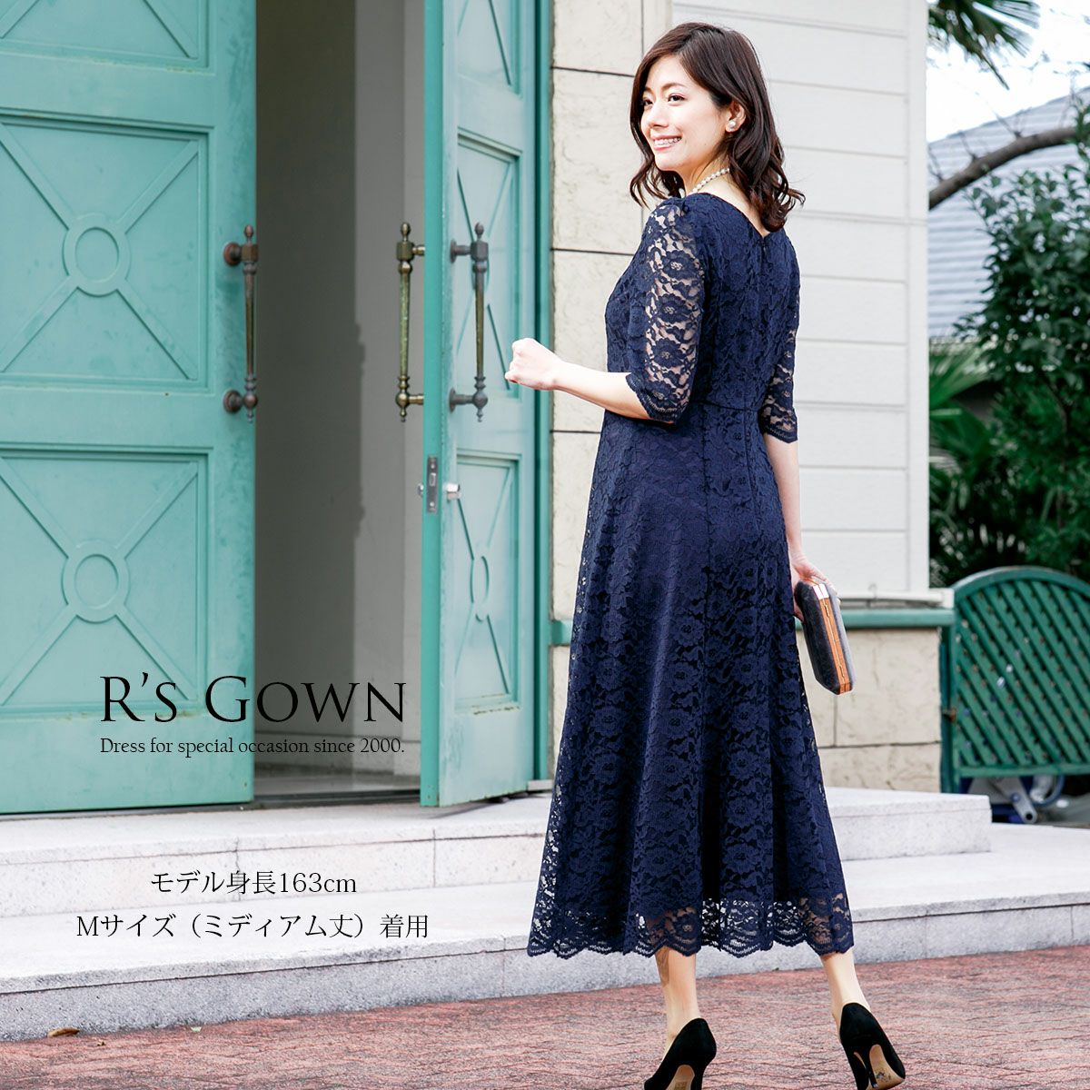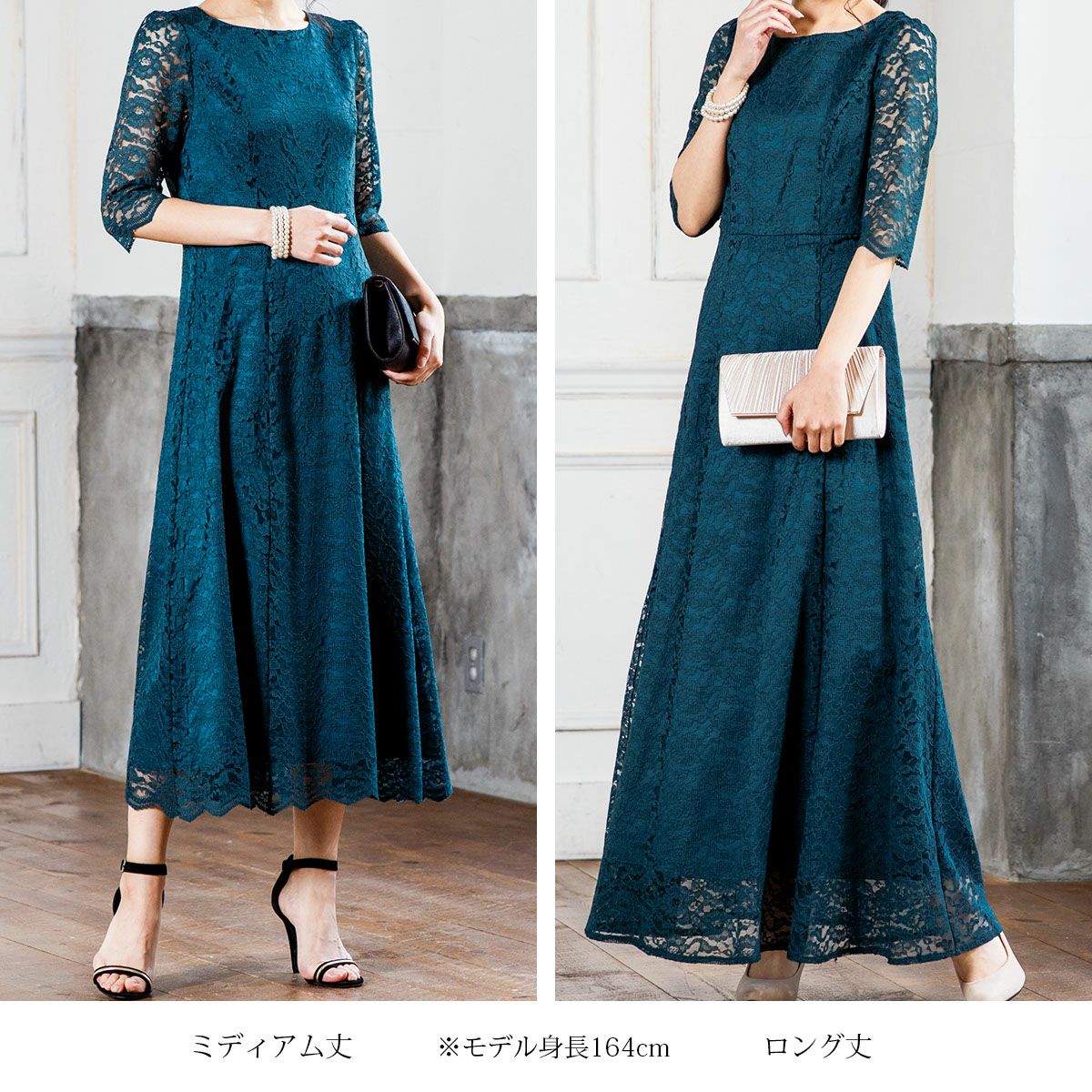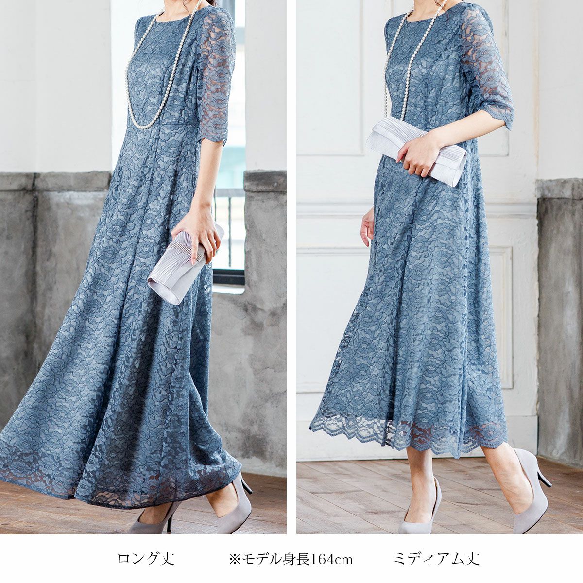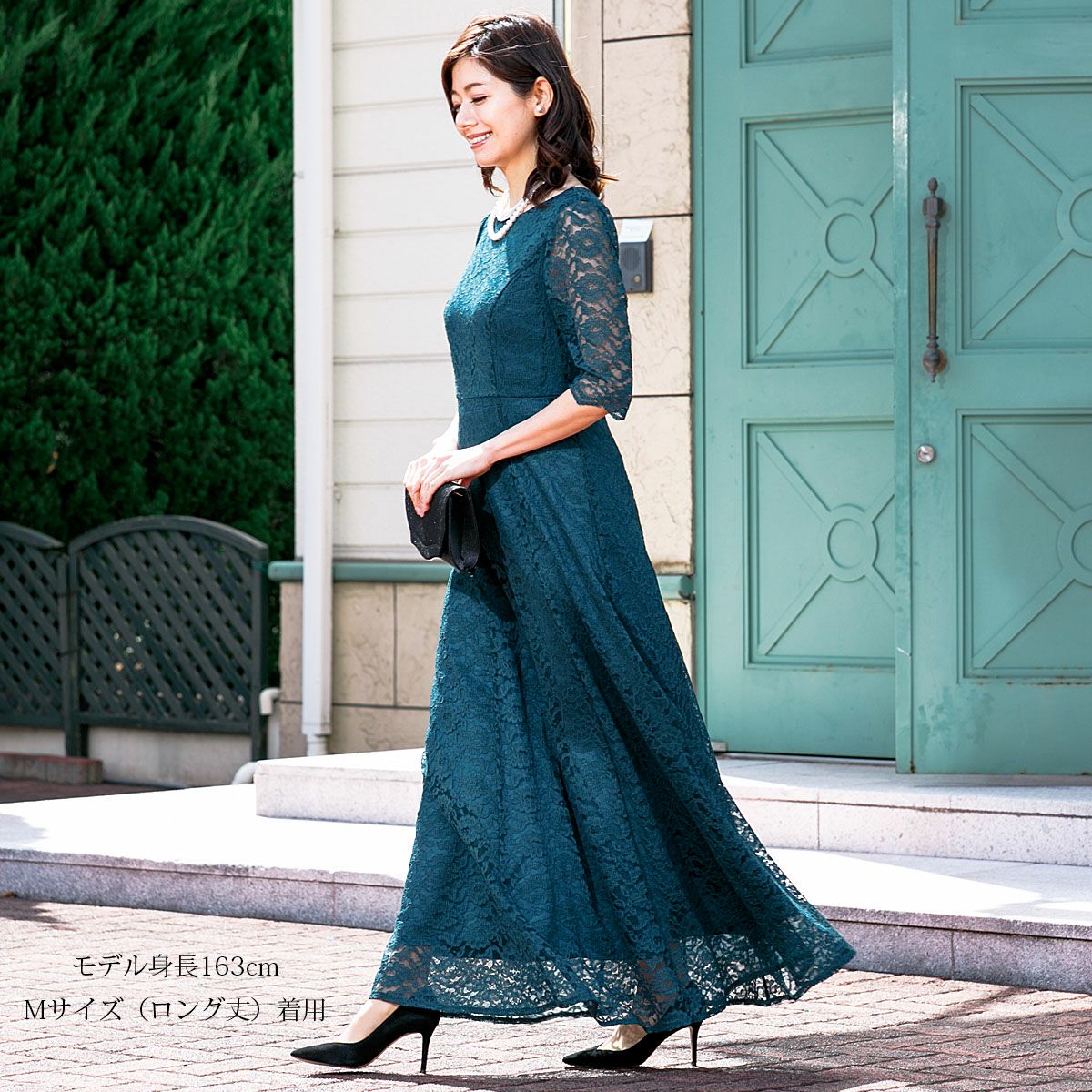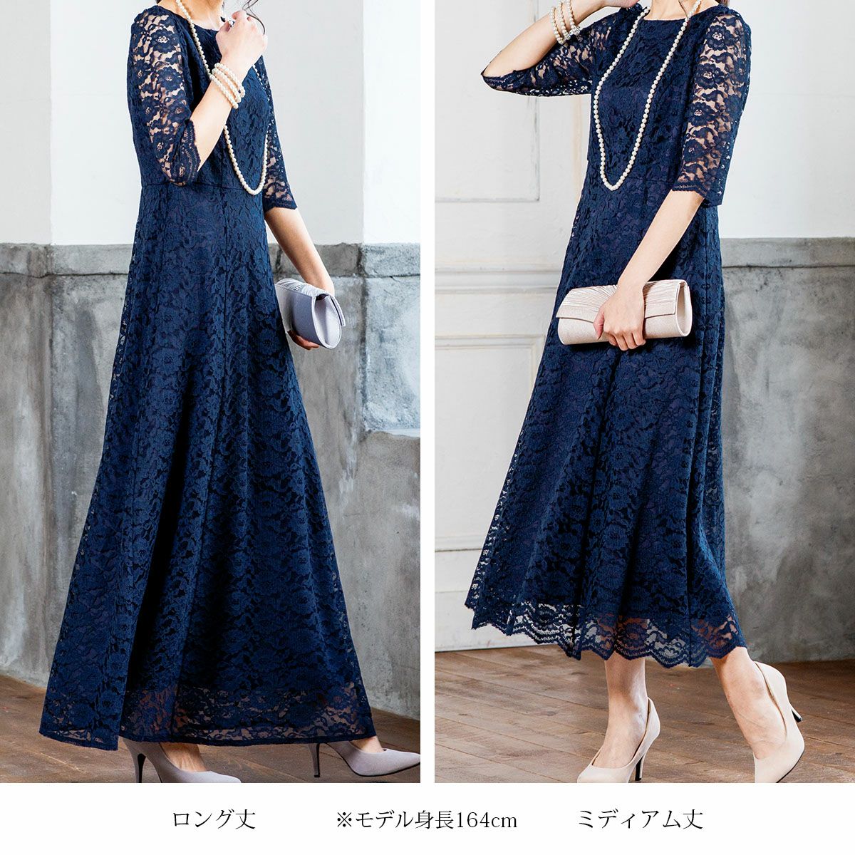 母親 ドレス マザーズドレス 結婚式 演奏会 パーティードレス ロングドレス or ミモレ丈 選べる総レースドレス FD-1952388