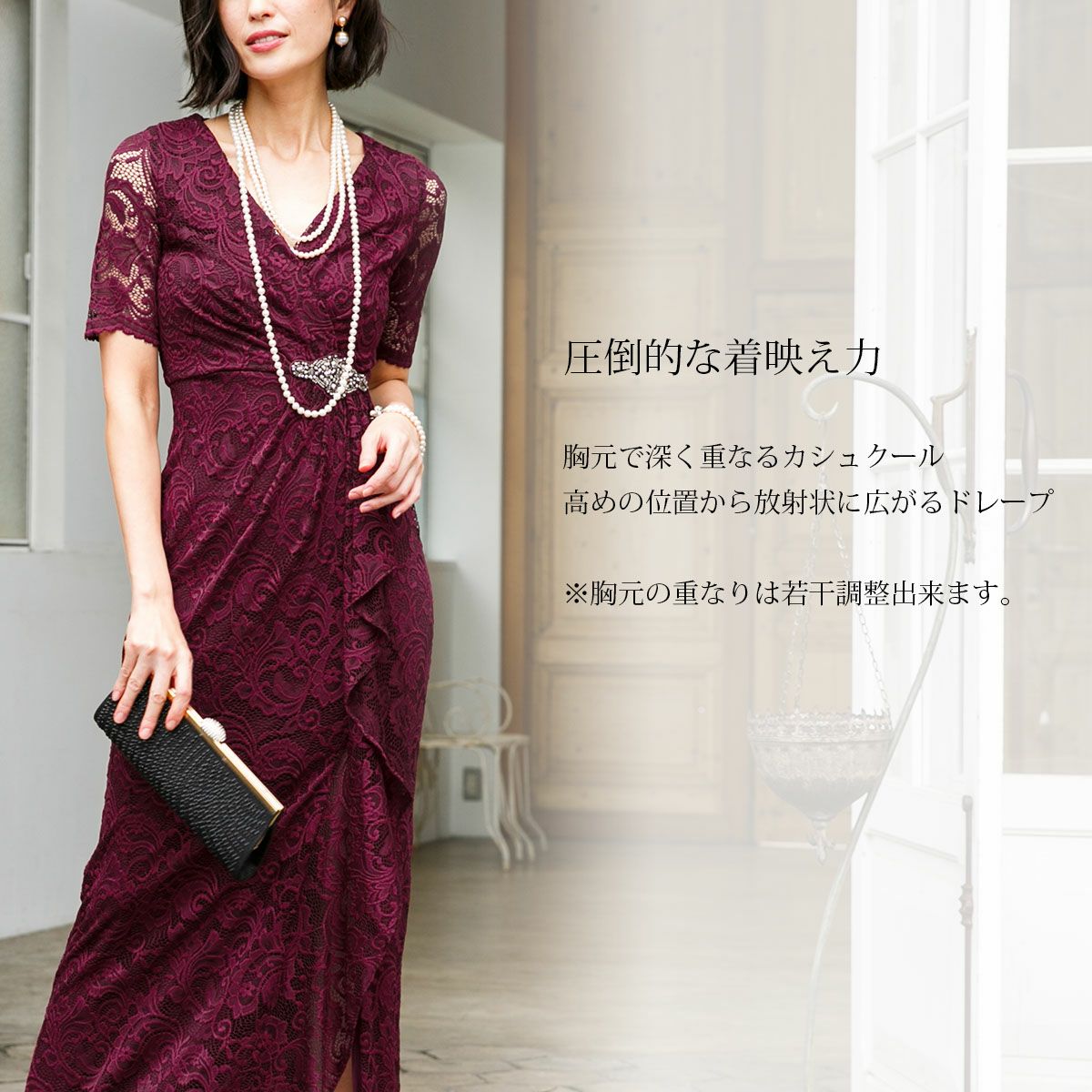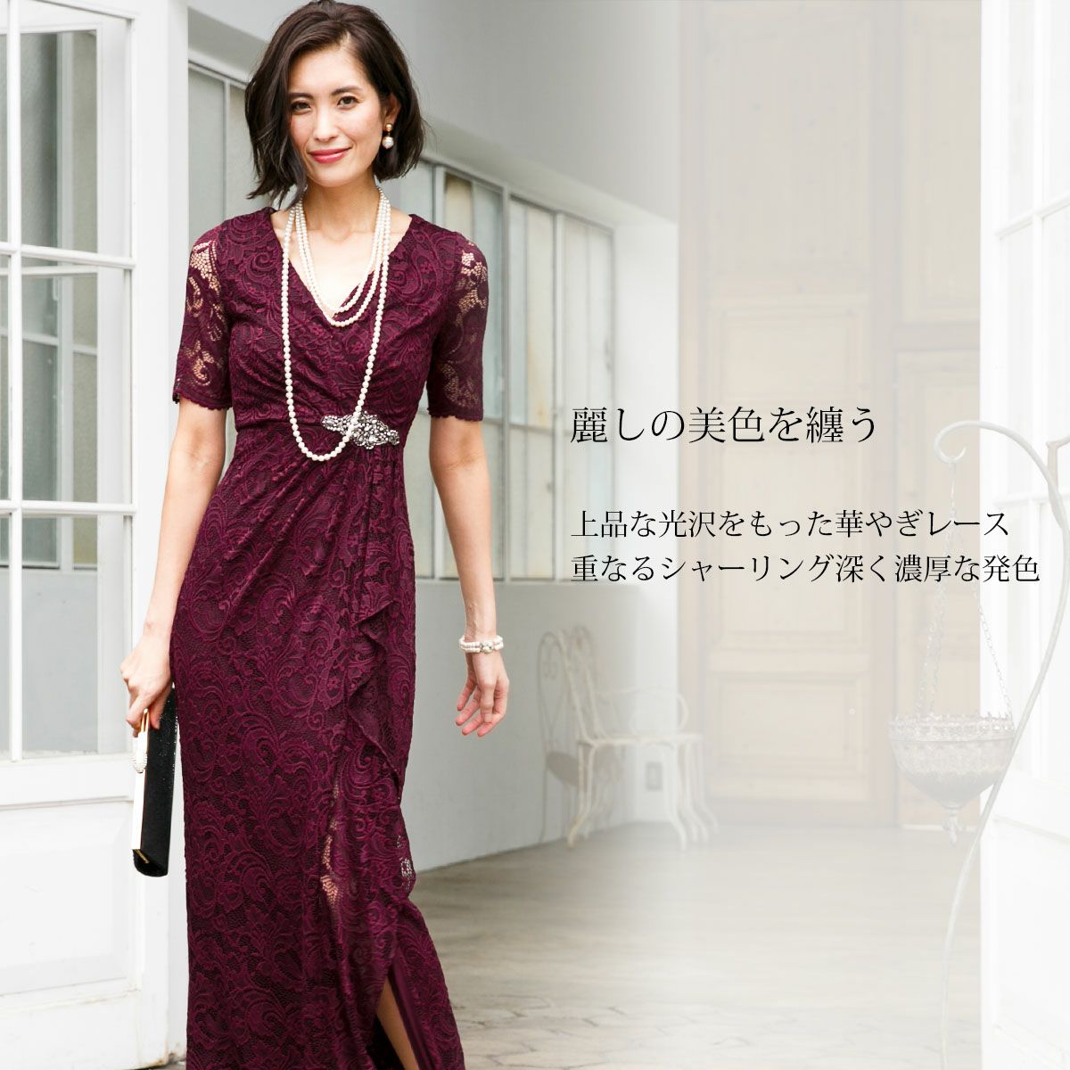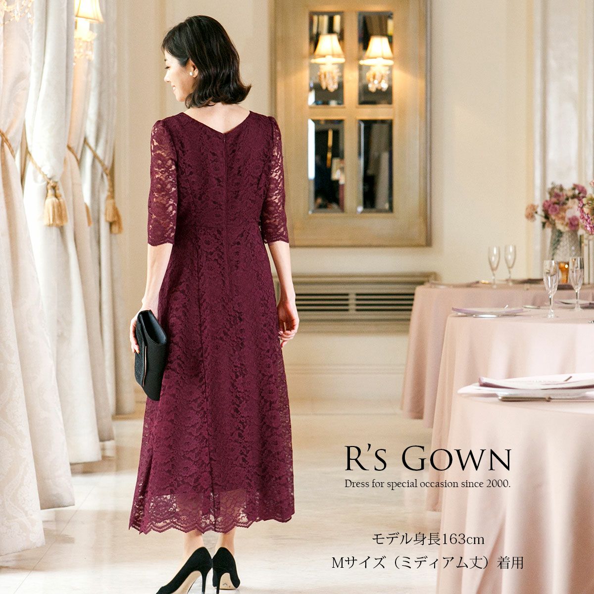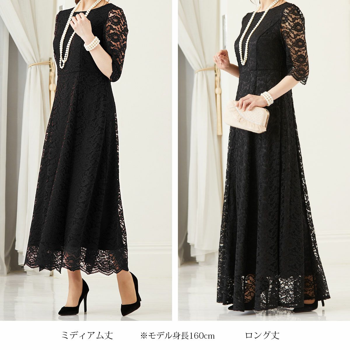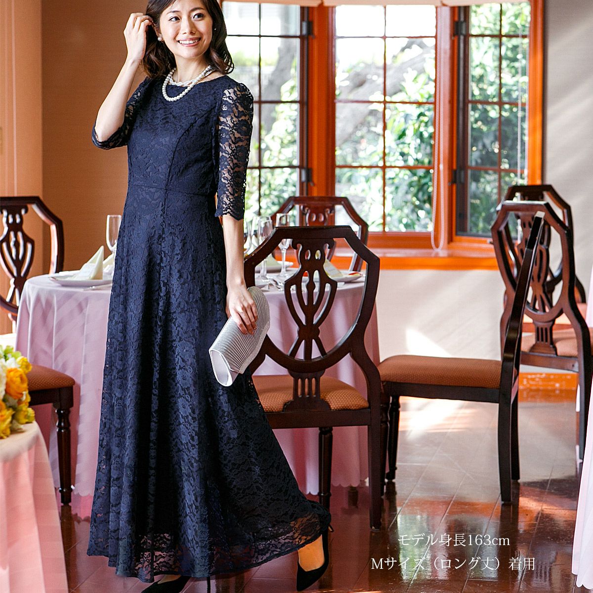 母親 ドレス マザーズドレス 結婚式 演奏会 パーティードレス ロングドレス or ミモレ丈 選べる総レースドレス FD-1952388