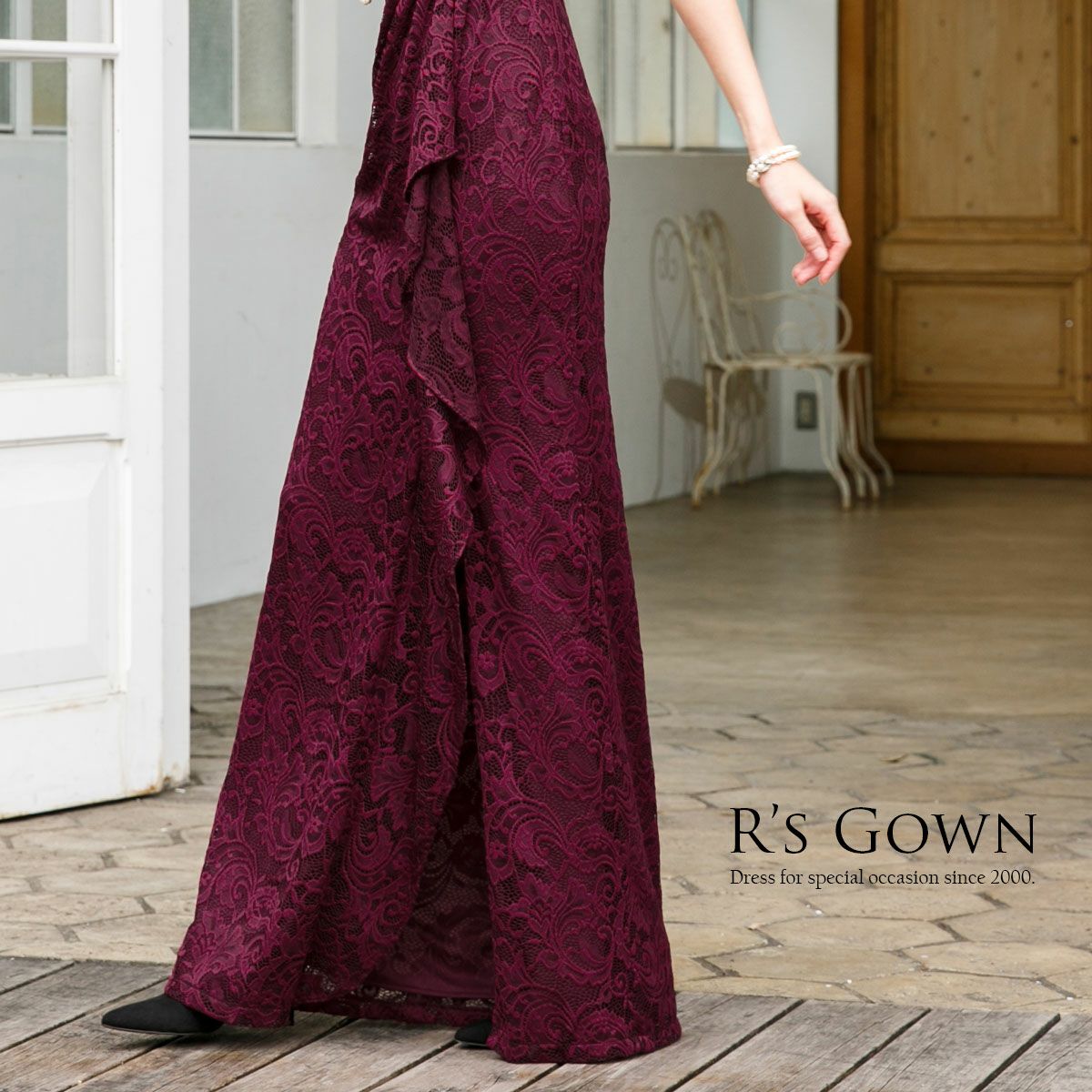 カシュクール 演奏会 発表会 マザーズドレス スリット入りのレース素材ロングドレス FD-140012