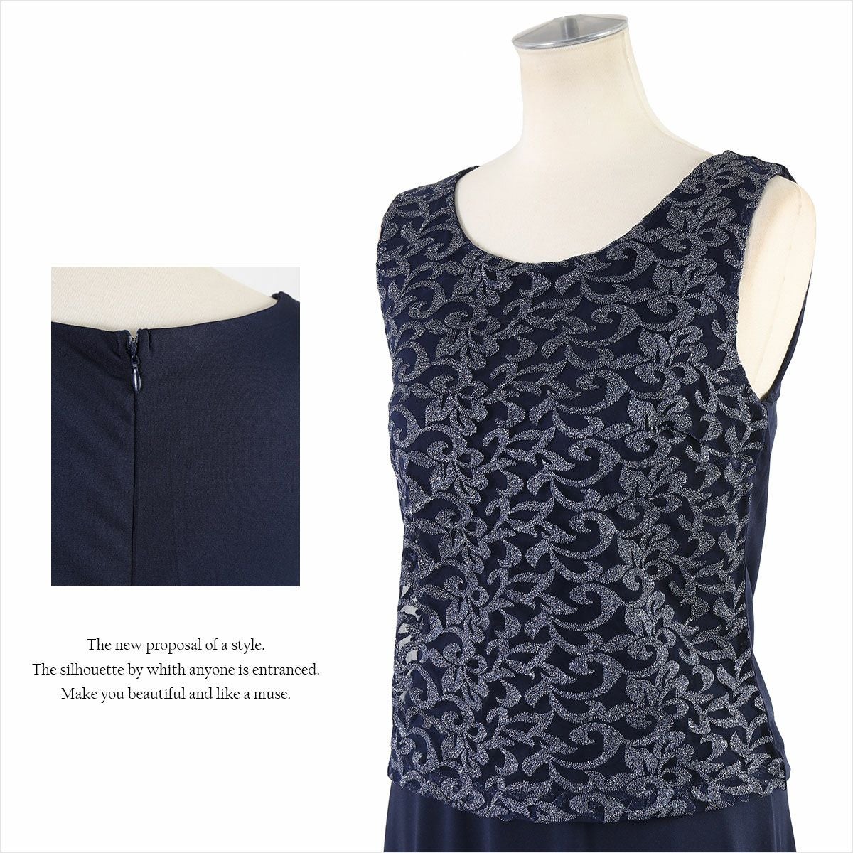 演奏会 ステージ ママ 母親 親族 結婚式 体型カバー ジャケット重ね着風 ロングドレス FD-180094