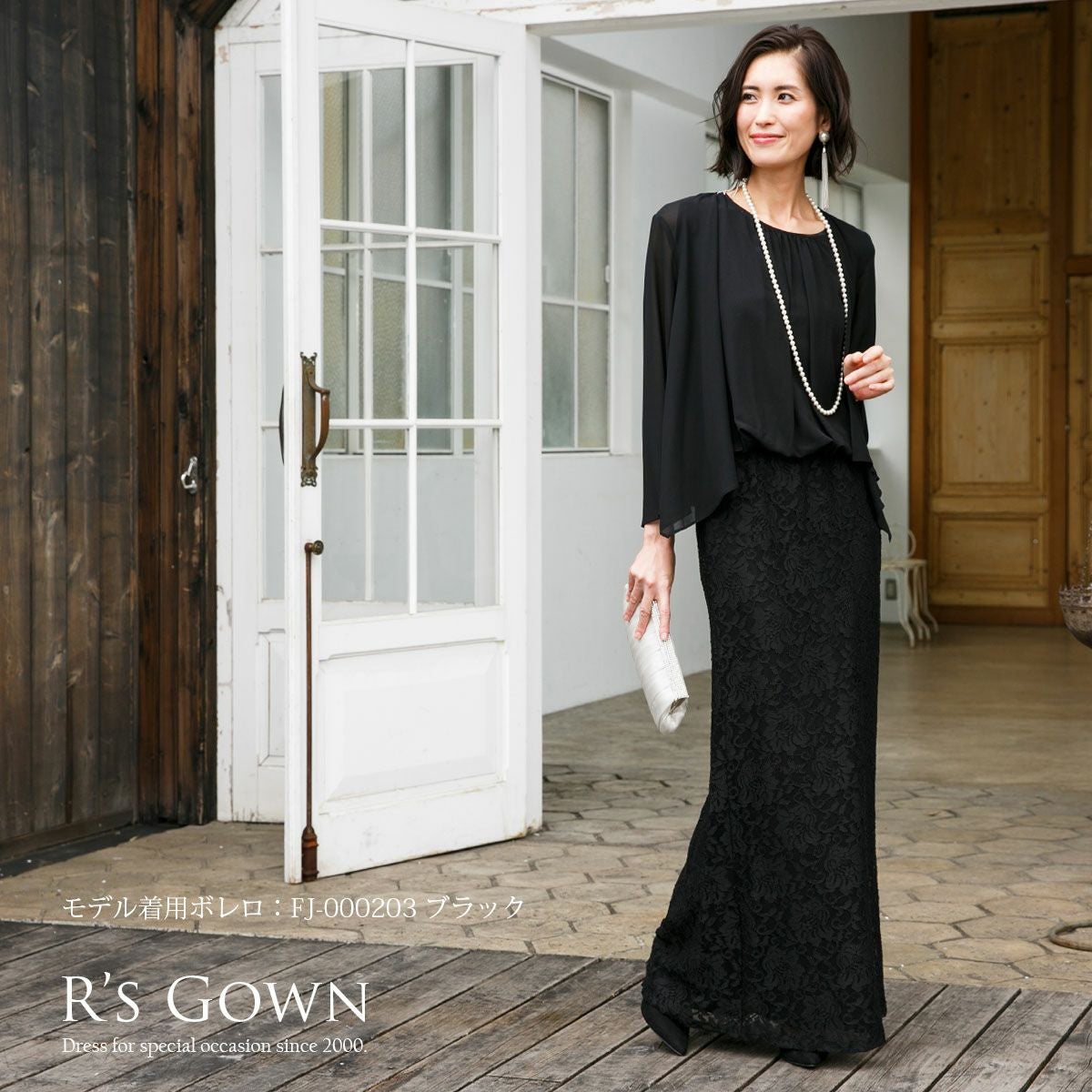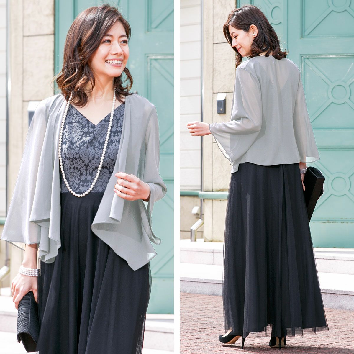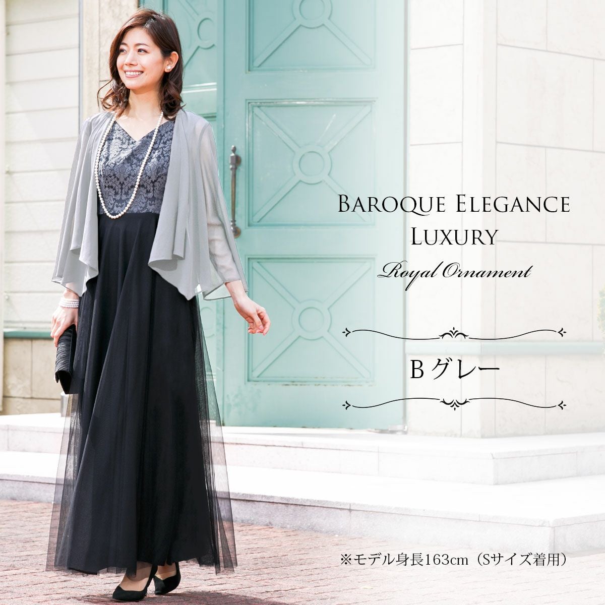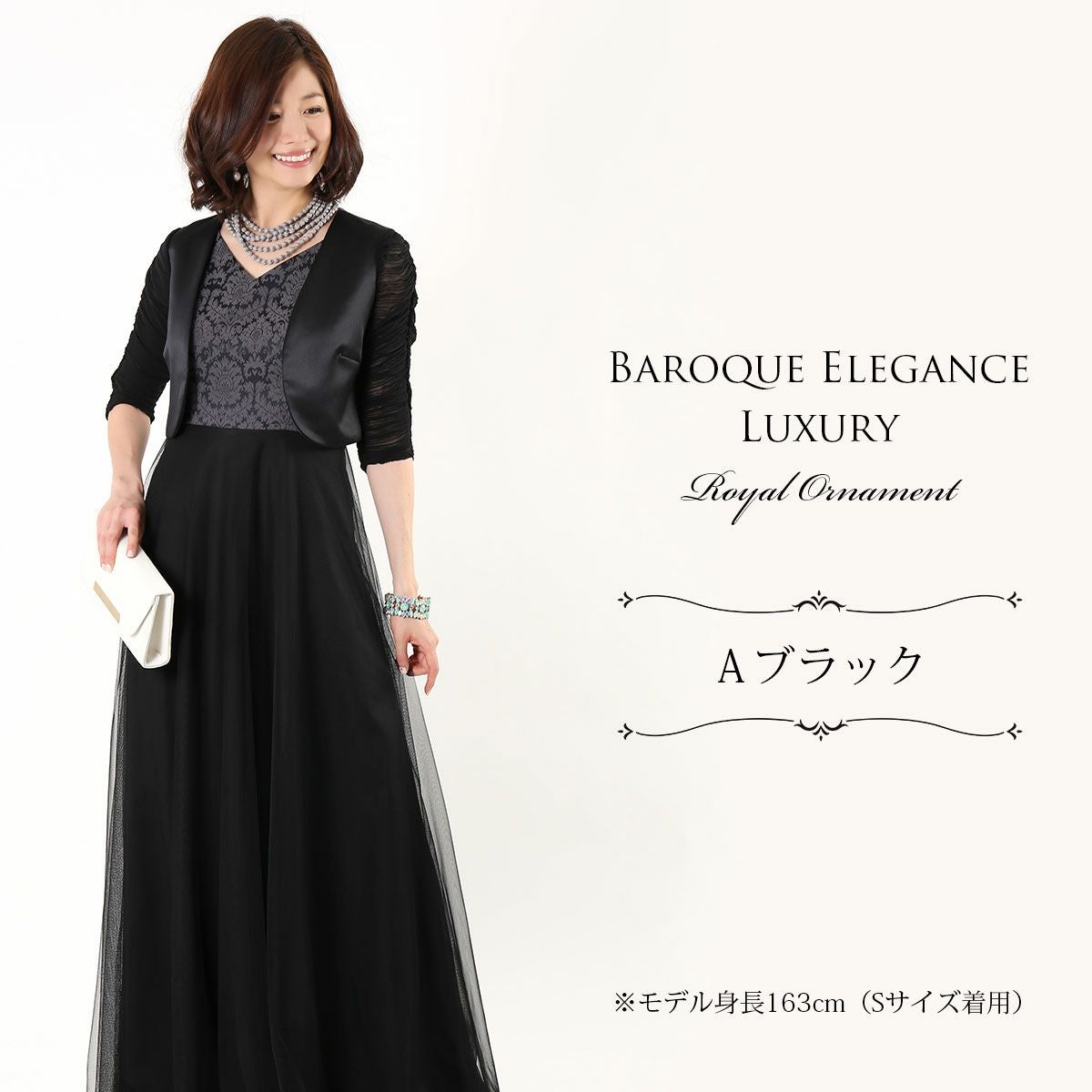 ロングドレス&ボレロセット 結婚式 母親 ドレス シンプル バロック模様 ロングドレス&ボレロセット FD-180095