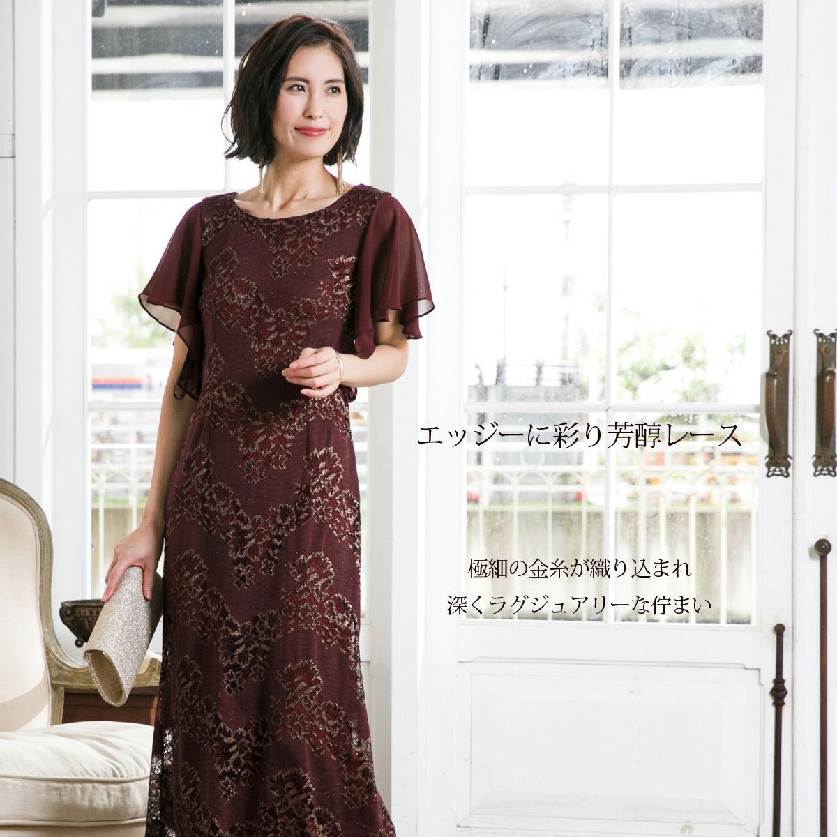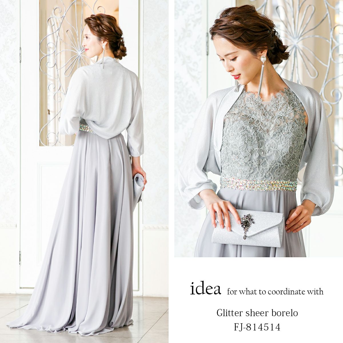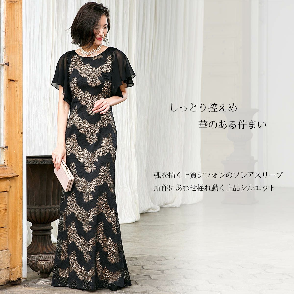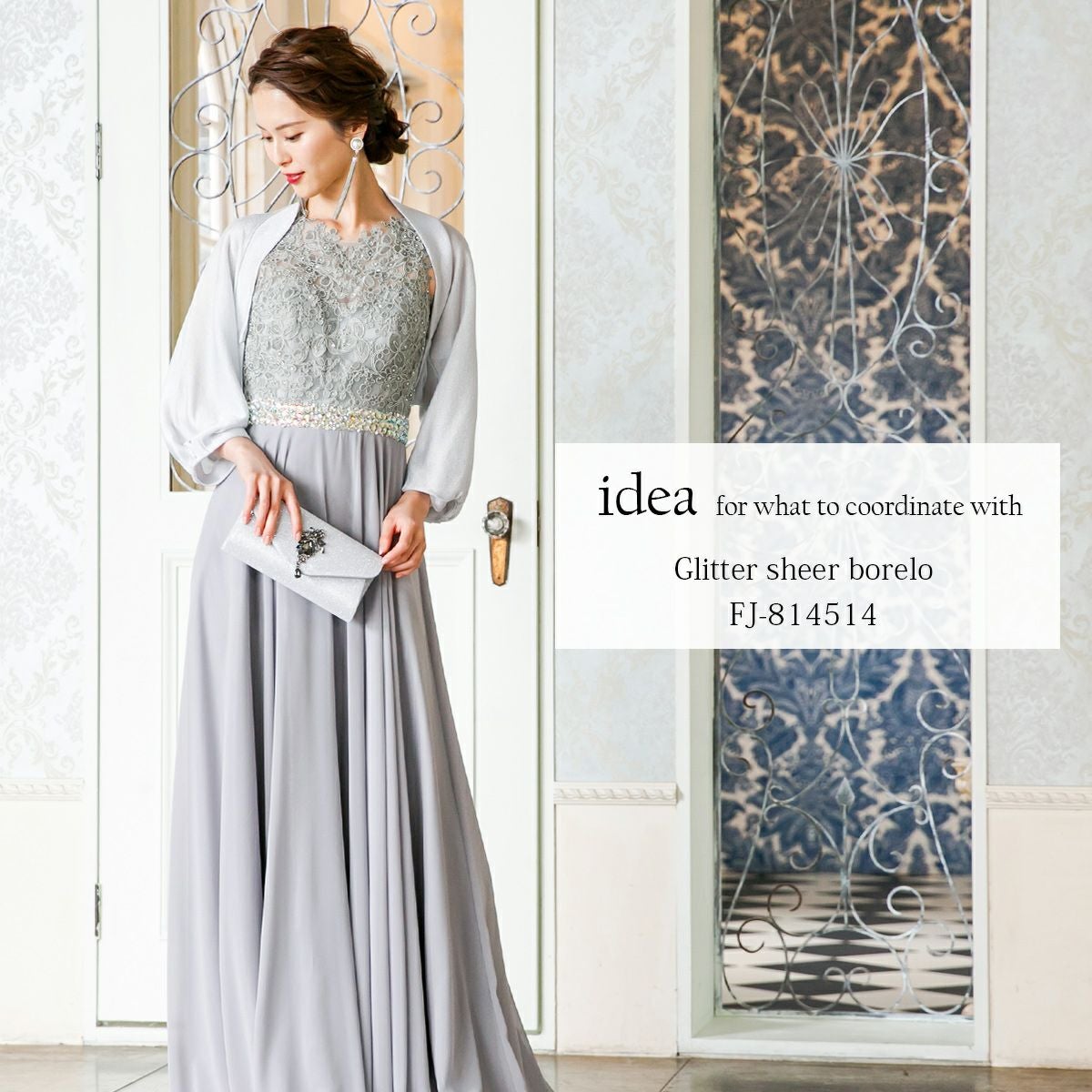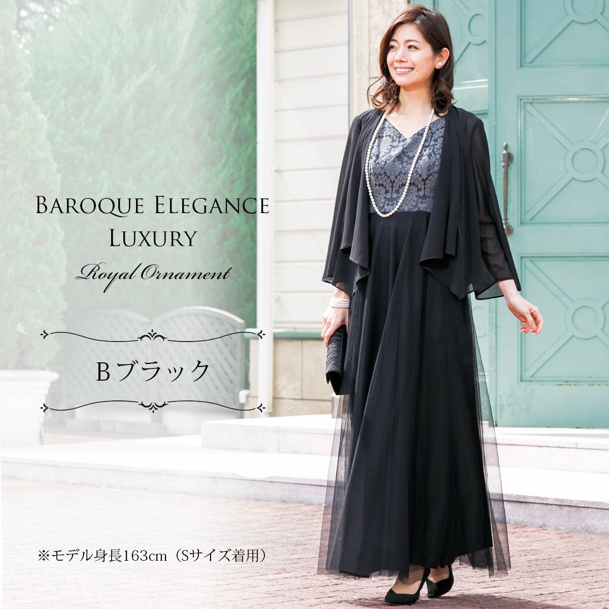 ロングドレス&ボレロセット 結婚式 母親 ドレス シンプル バロック模様 ロングドレス&ボレロセット FD-180095