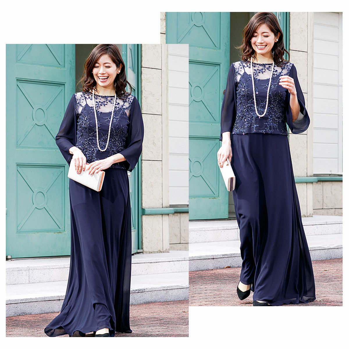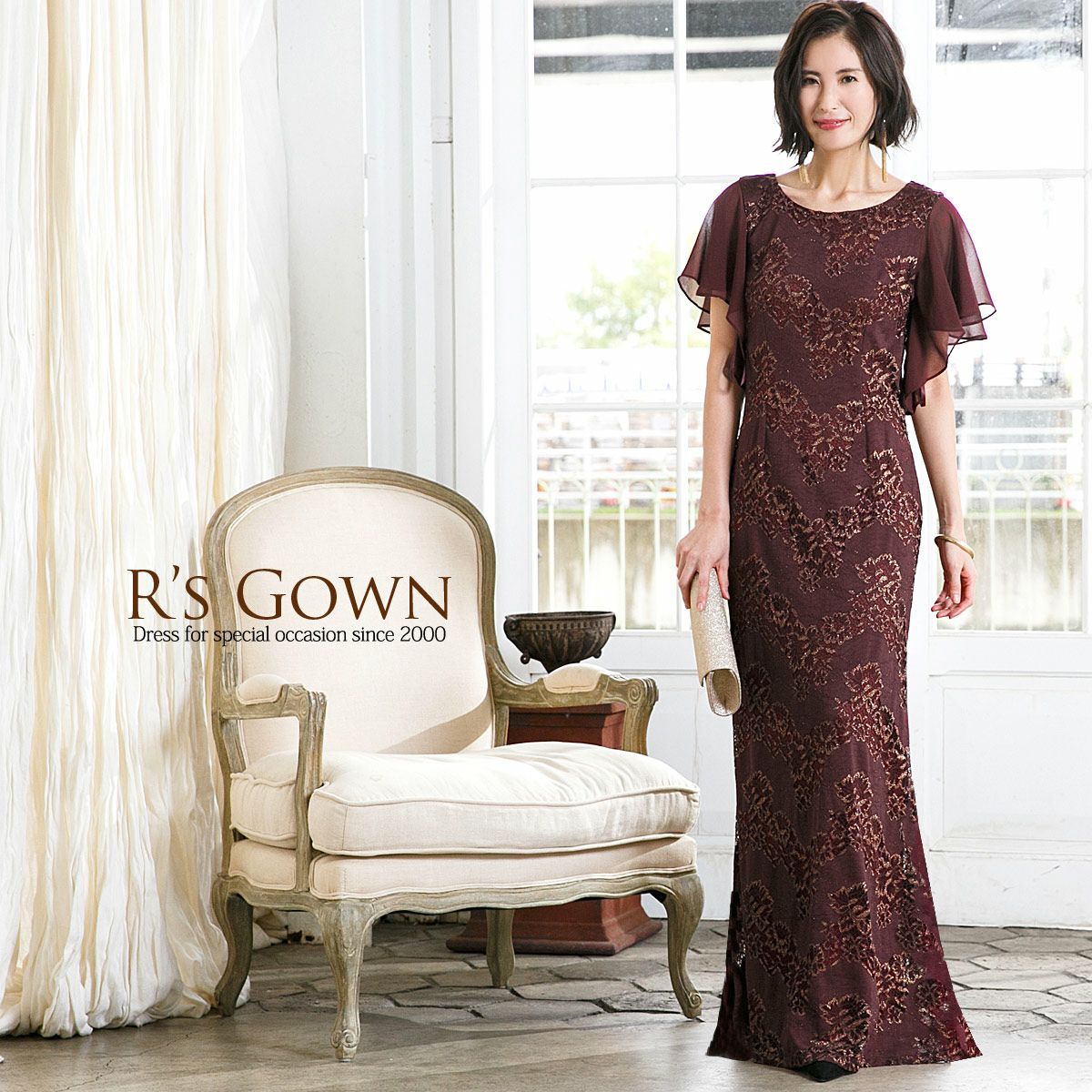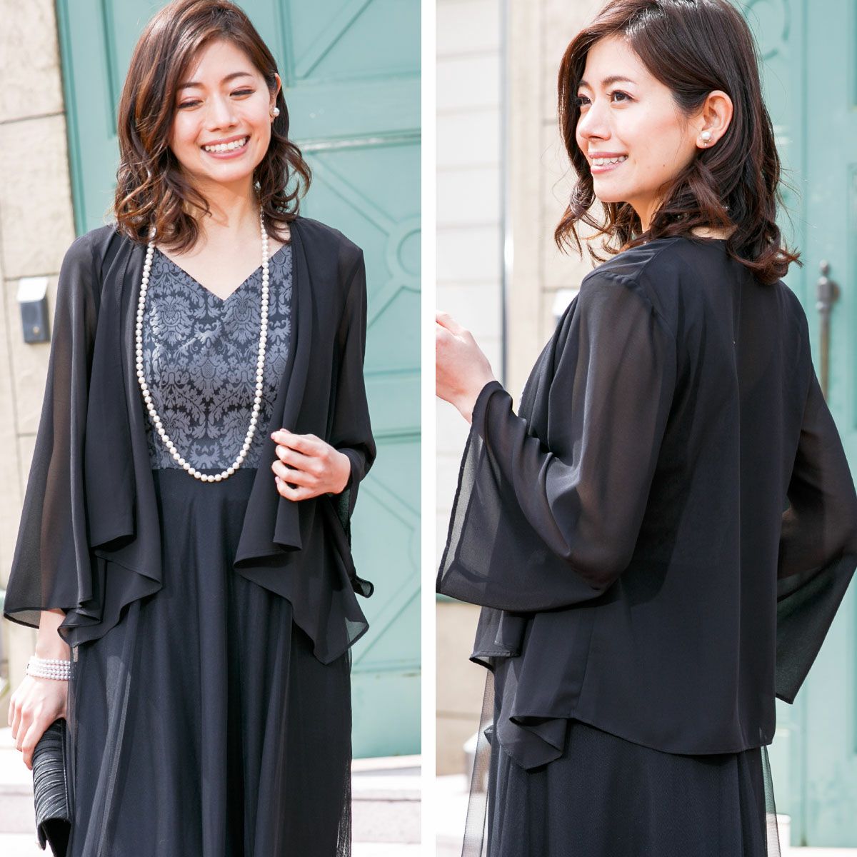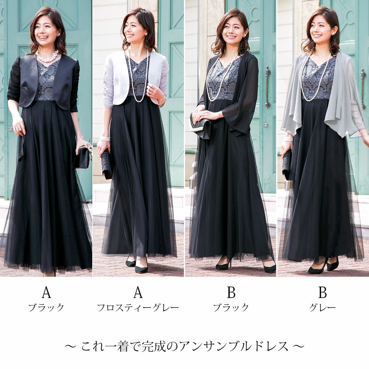 ロングドレス&ボレロセット 結婚式 母親 ドレス シンプル バロック模様 ロングドレス&ボレロセット FD-180095