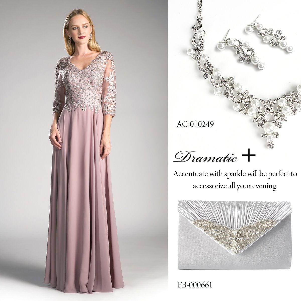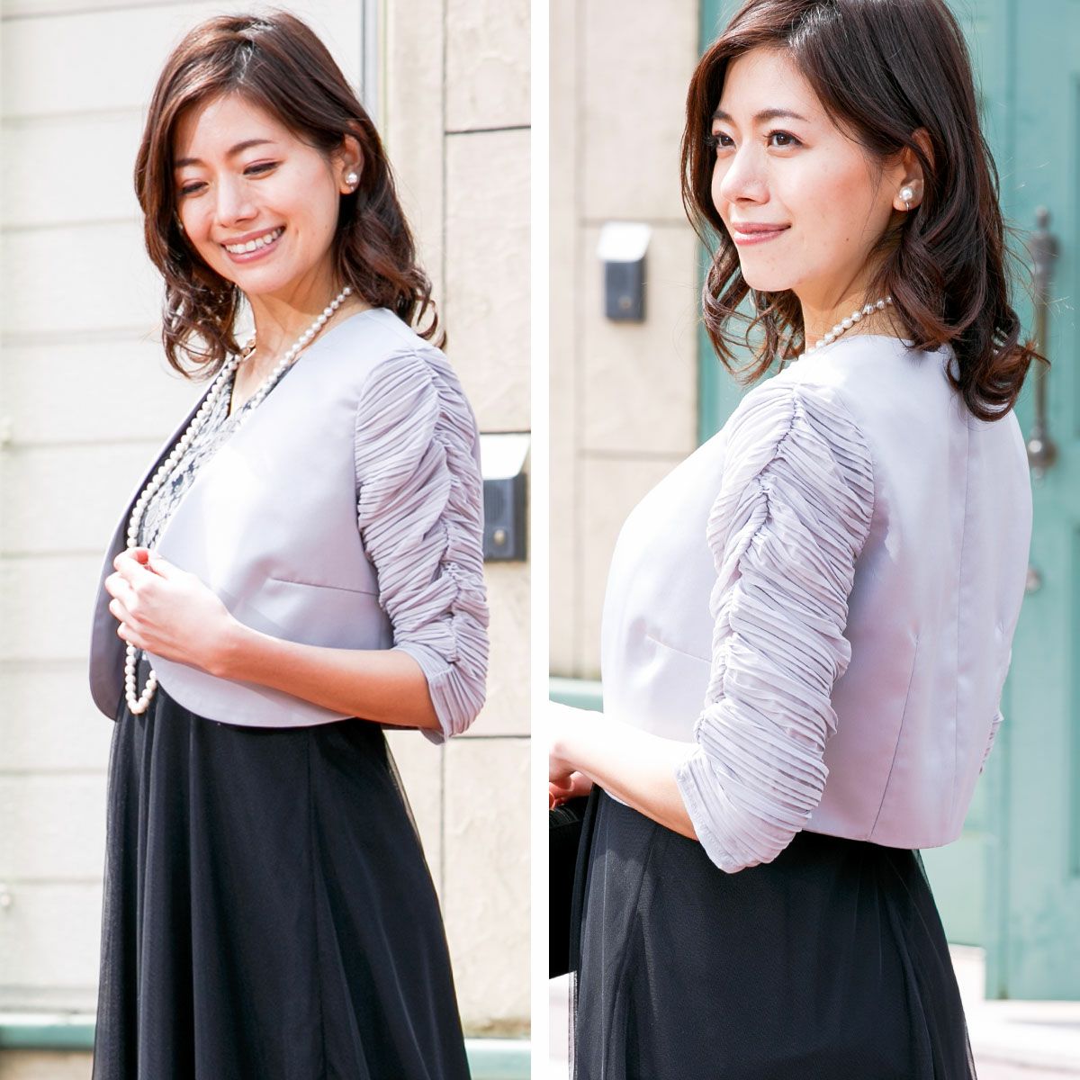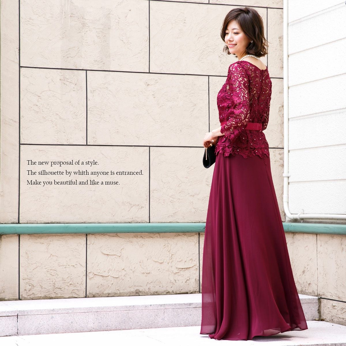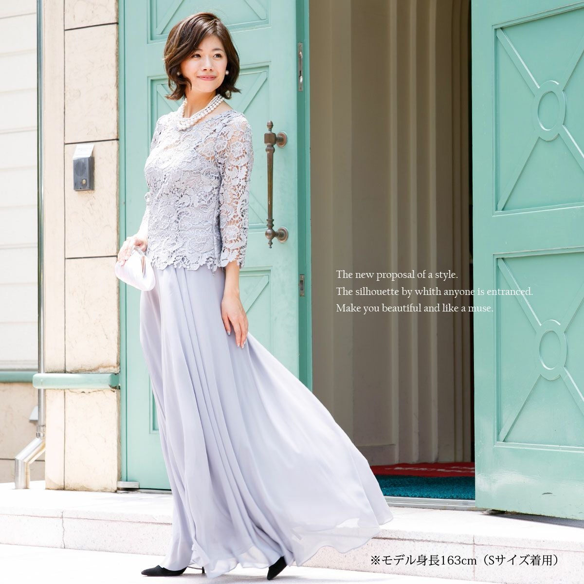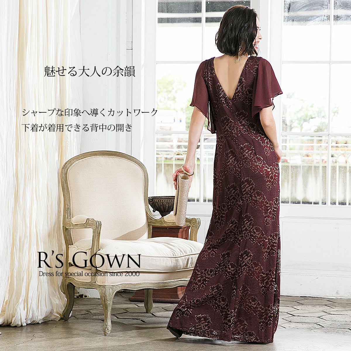 ロングドレス&ボレロセット 結婚式 母親 ドレス シンプル バロック模様 ロングドレス&ボレロセット FD-180095