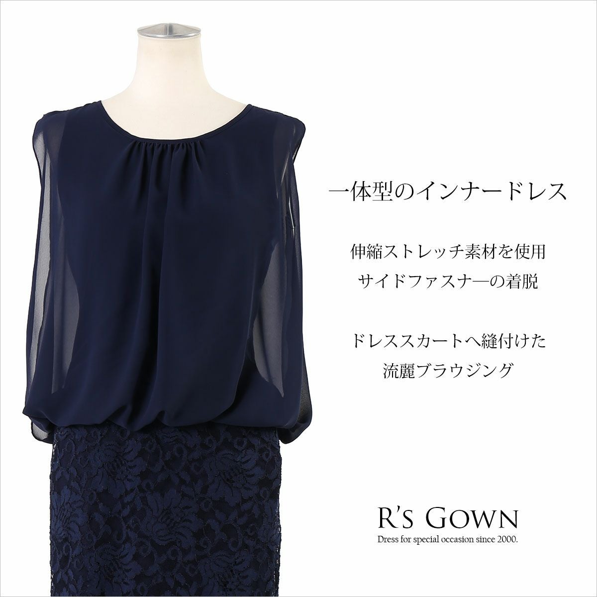 上品レースで柔らかい着心地のロングドレス FD-180104