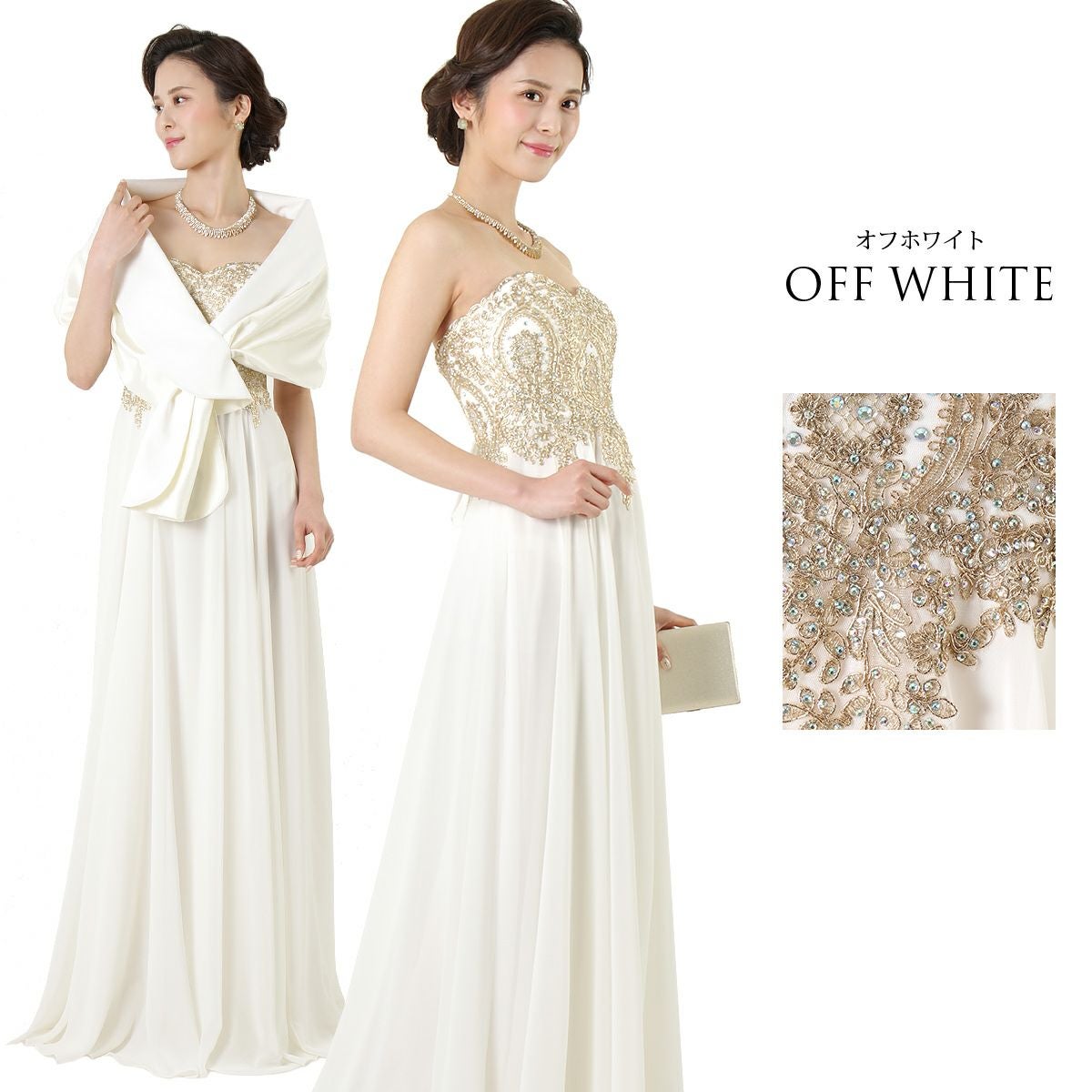 オフショル 高品質 ローブデコルテ パーティー ウエディング 舞踏会 金糸に重なるローズ刺繍の演奏会ロングドレス FD-080271