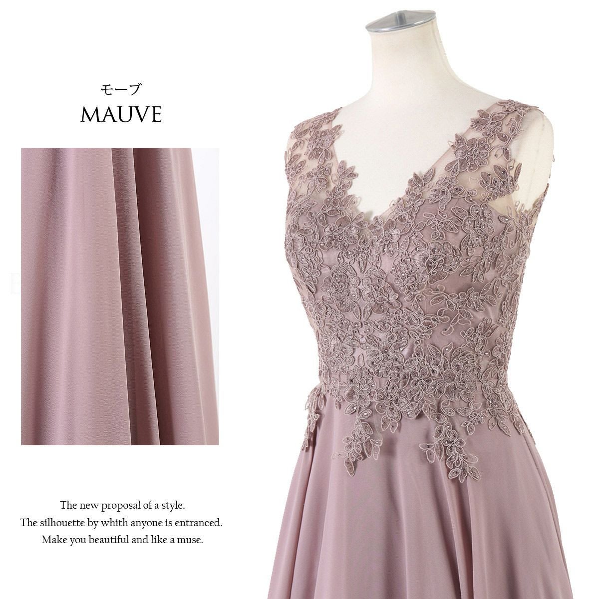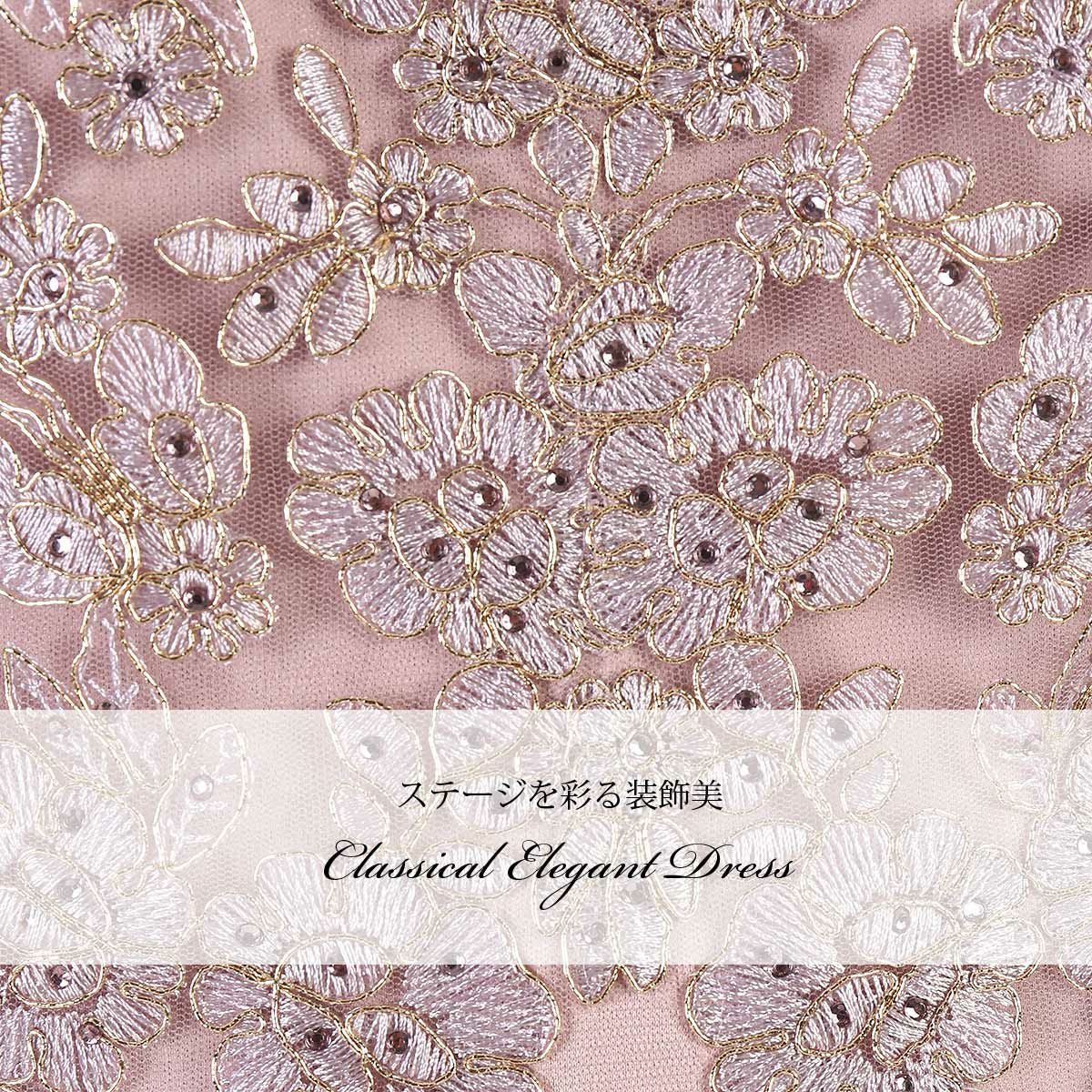 演奏会 発表会 ステージ 衣装 声楽 ピンク モーブ 刺繍 演奏会用オフショル袖付き袖ありロングドレス FD-160089