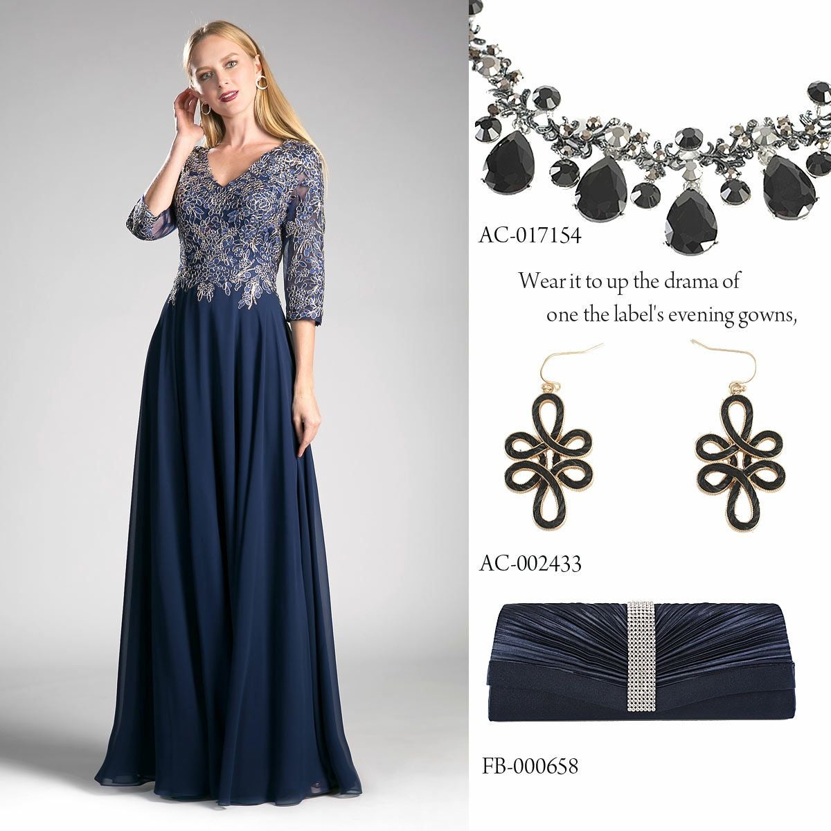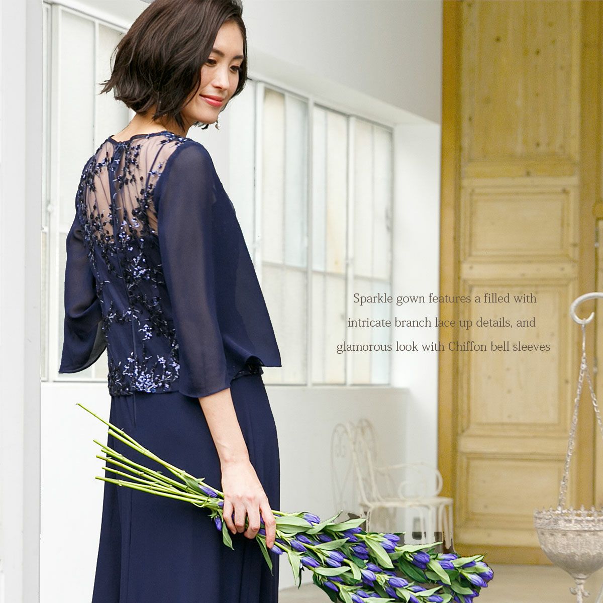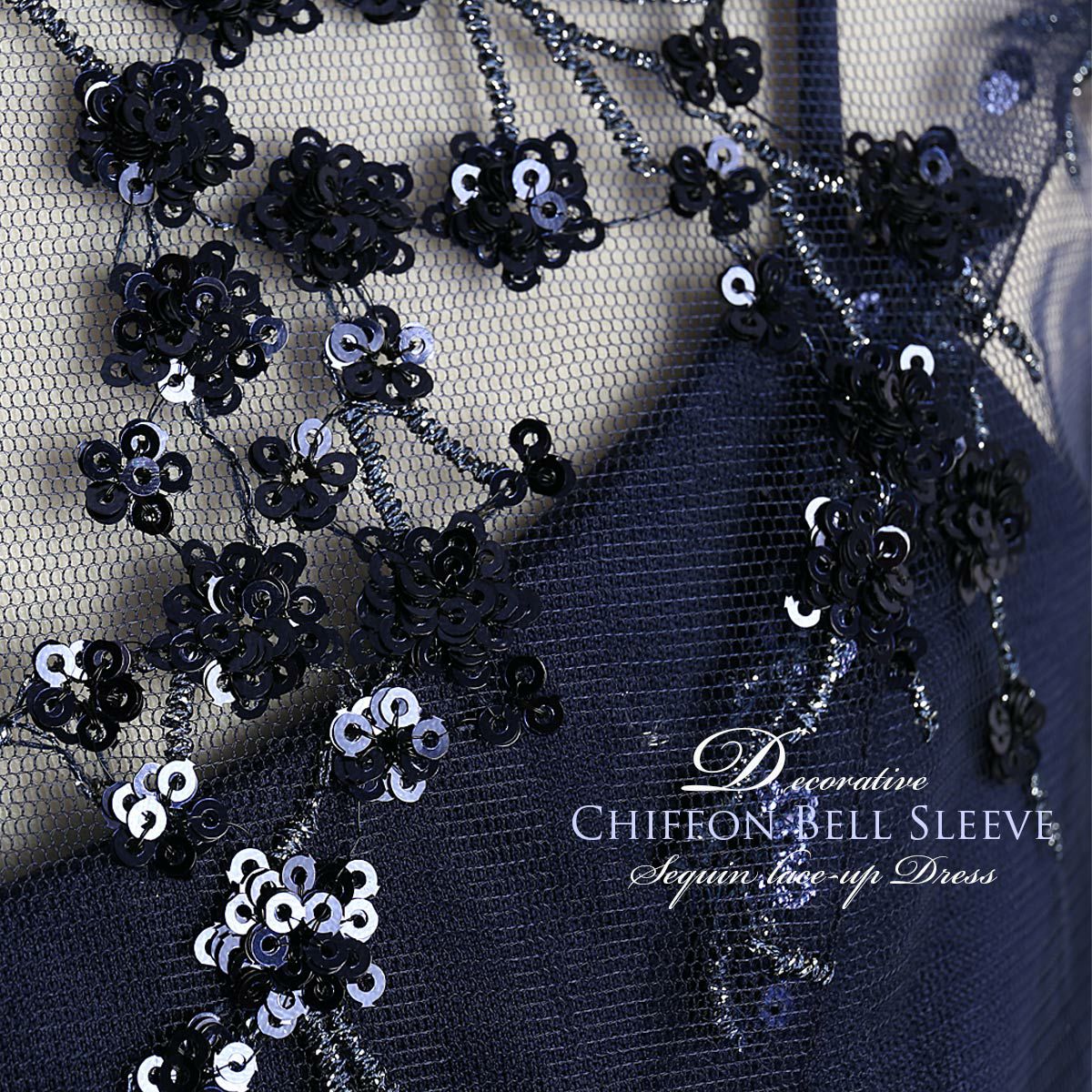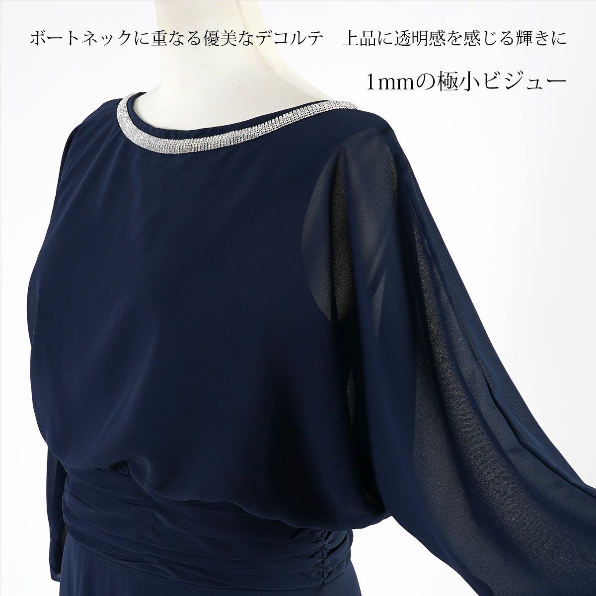 結婚式 母親 親族 パーティードレス ステージドレス ネイビー色の演奏会用ドレス ロングドレス 刺繍 袖あり 長袖 FD-180106