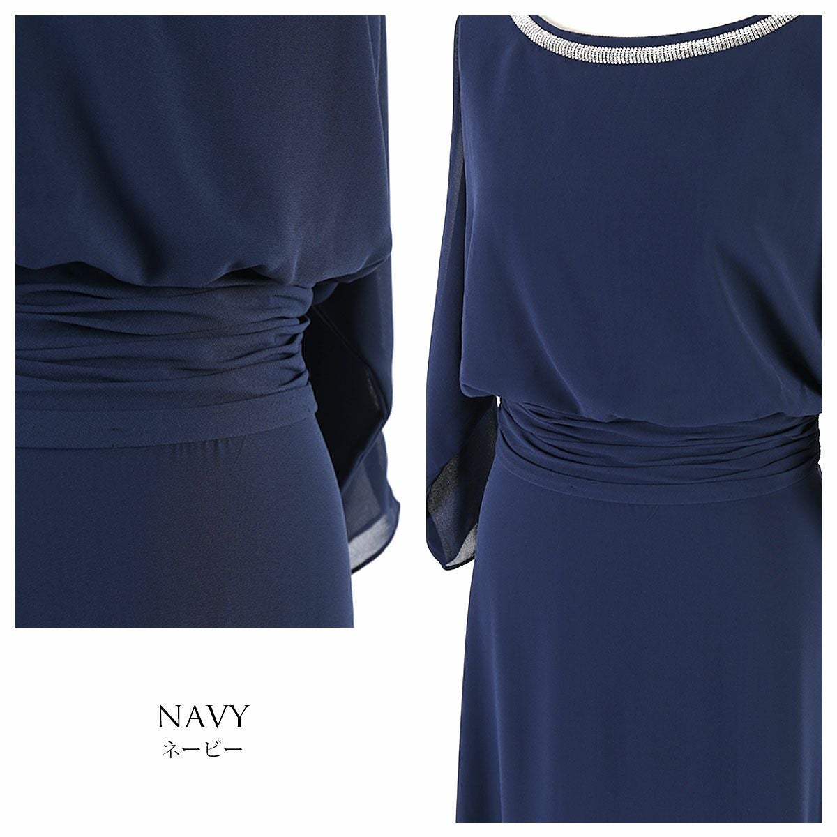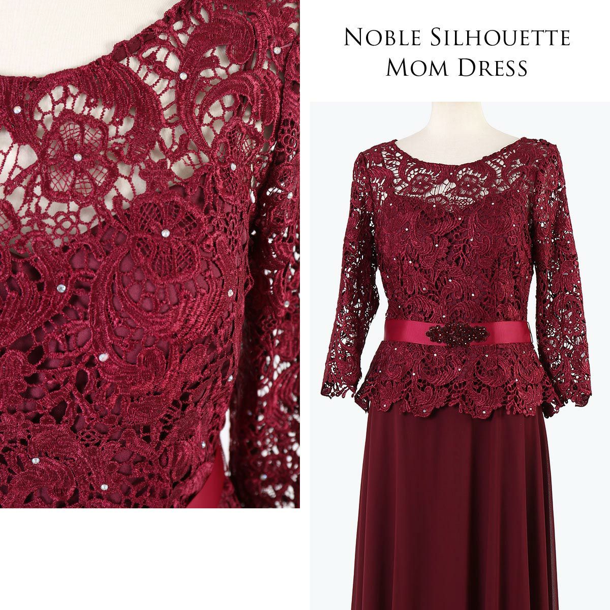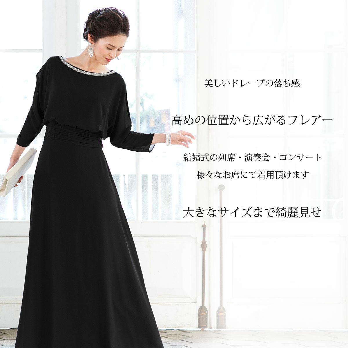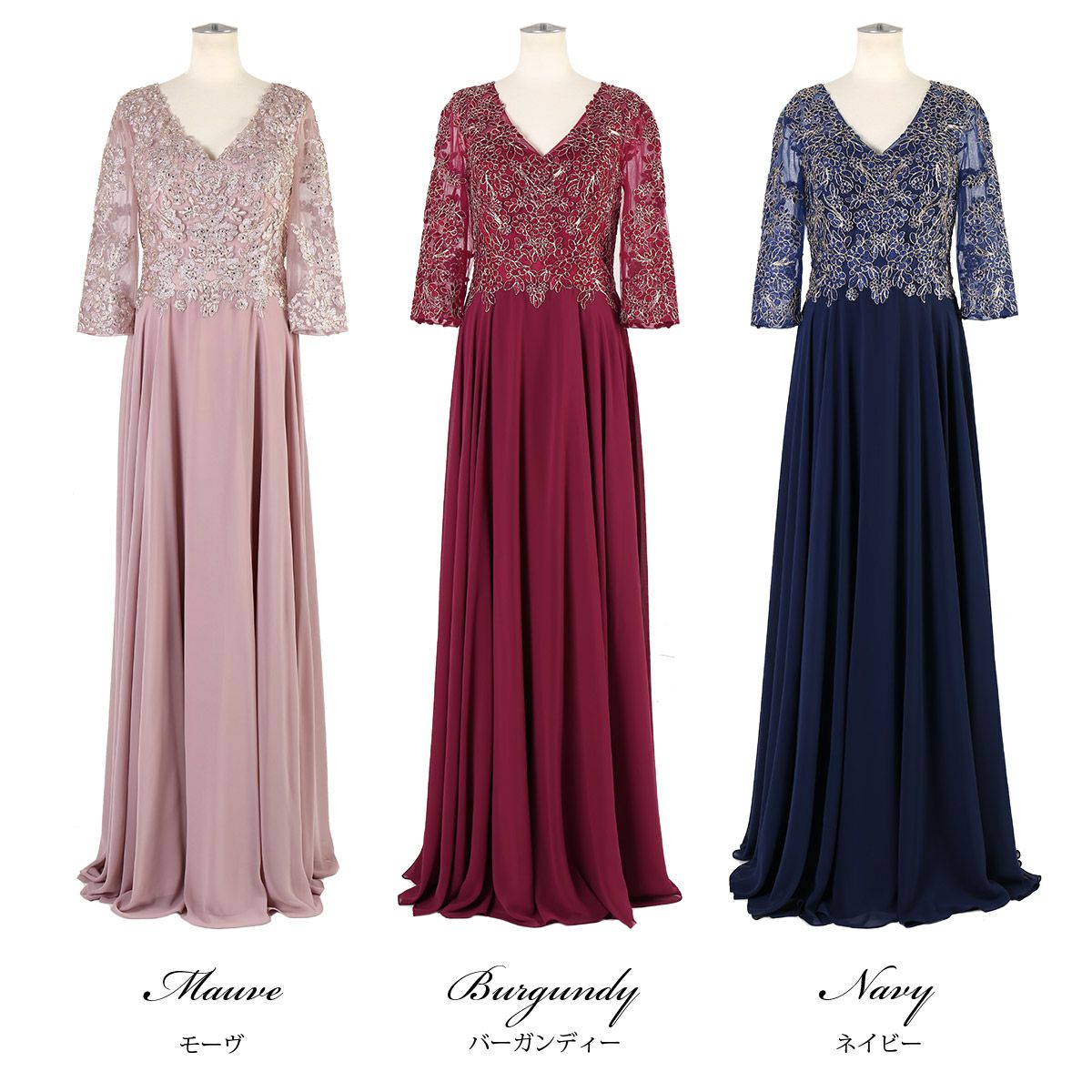 結婚式 演奏会 親族 母親 大きいサイズ 袖有り 7分袖のエレガント ロングドレス FD-180098