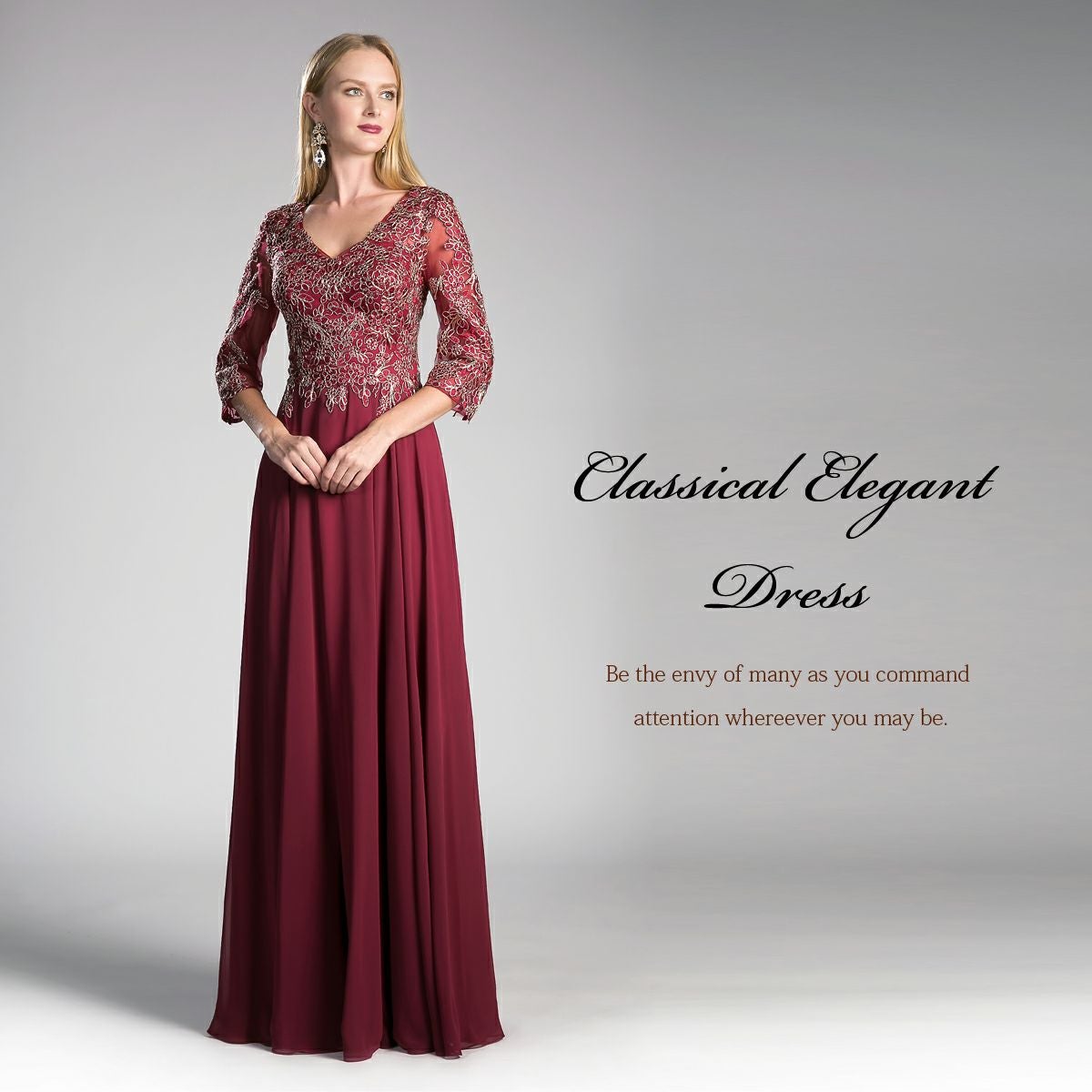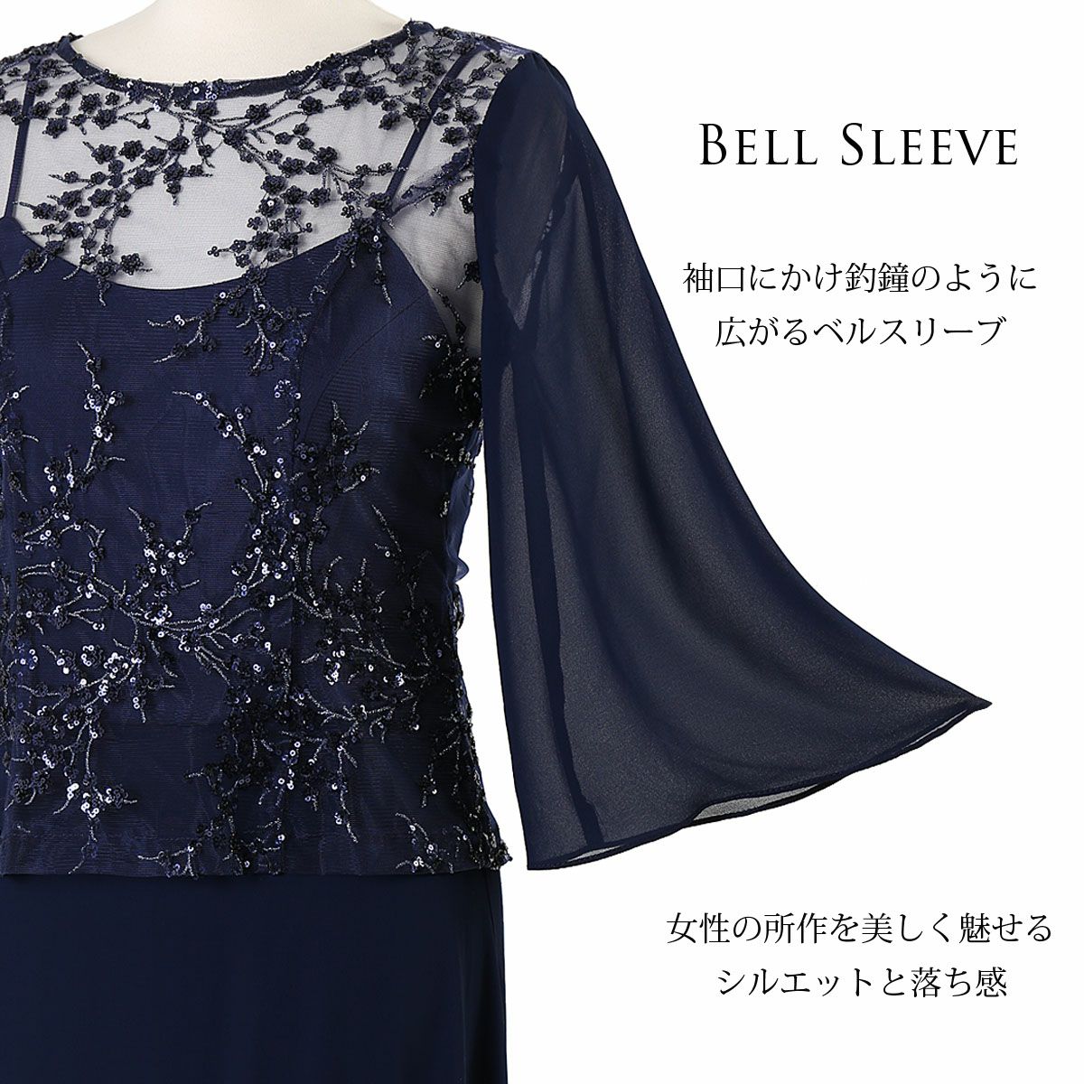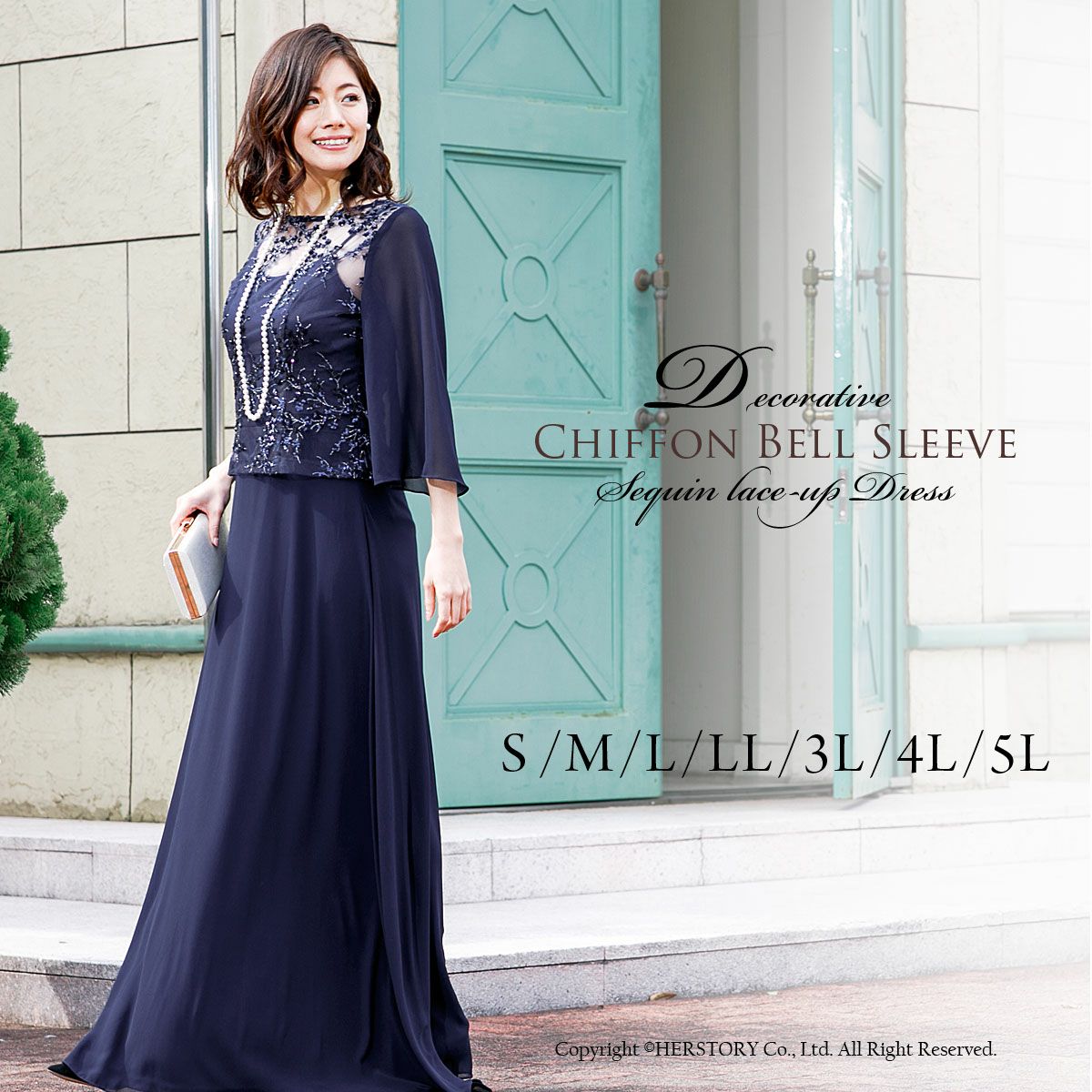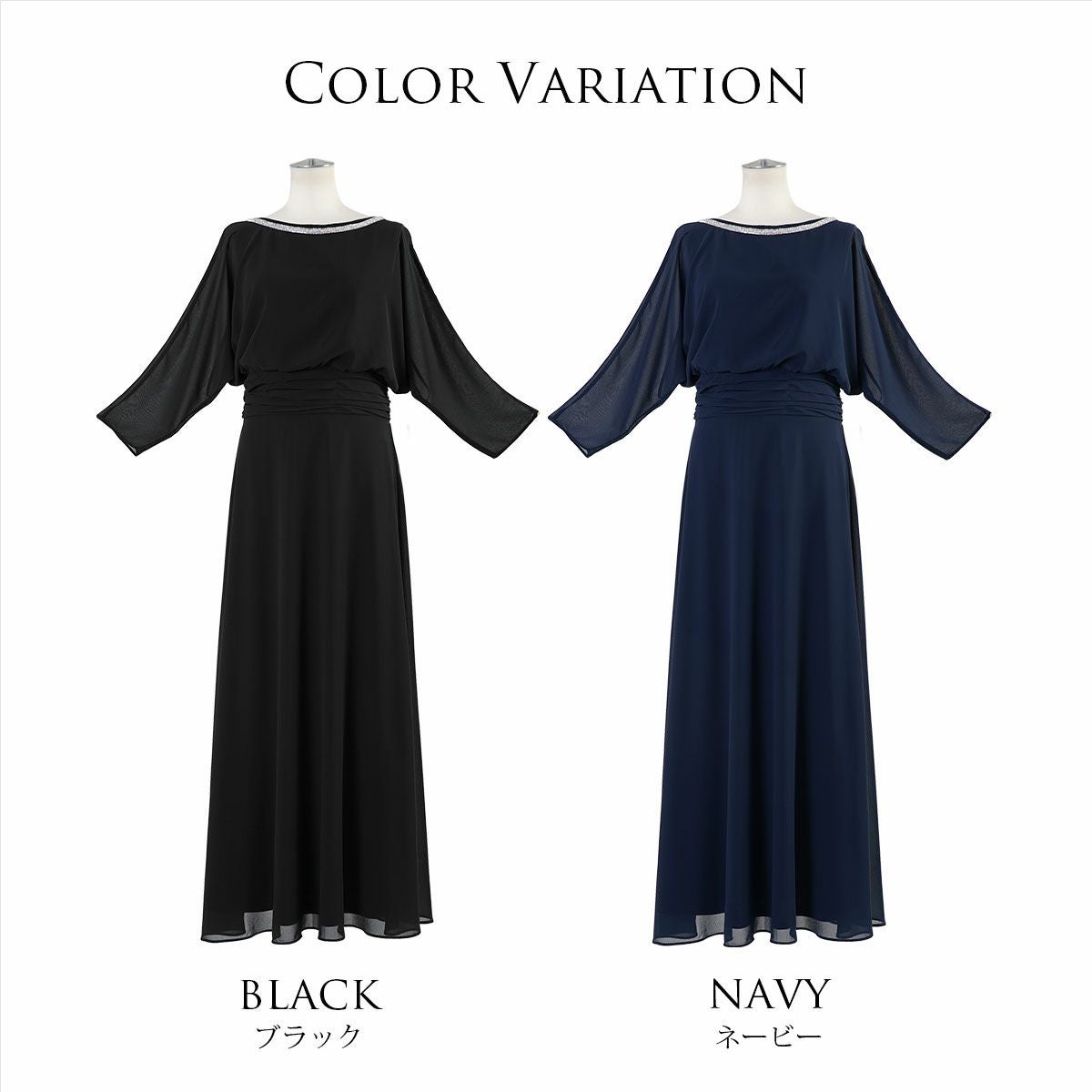 結婚式 演奏会 親族 母親 大きいサイズ 袖有り 7分袖のエレガント ロングドレス FD-180098