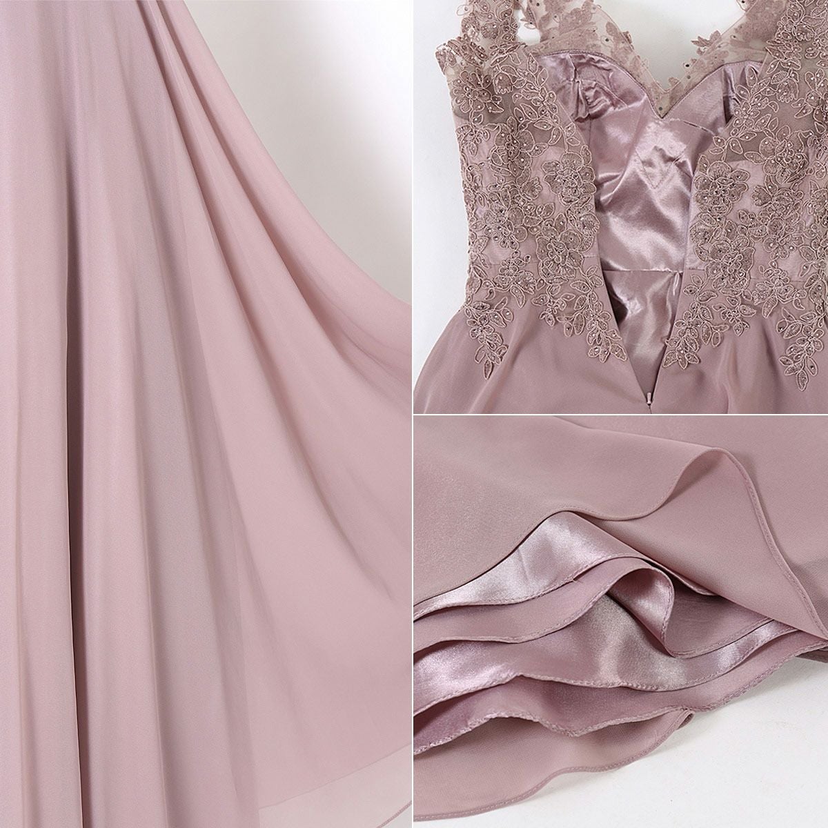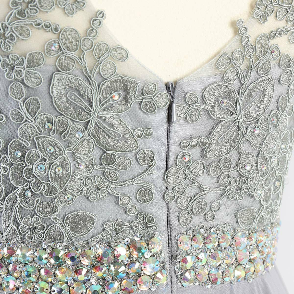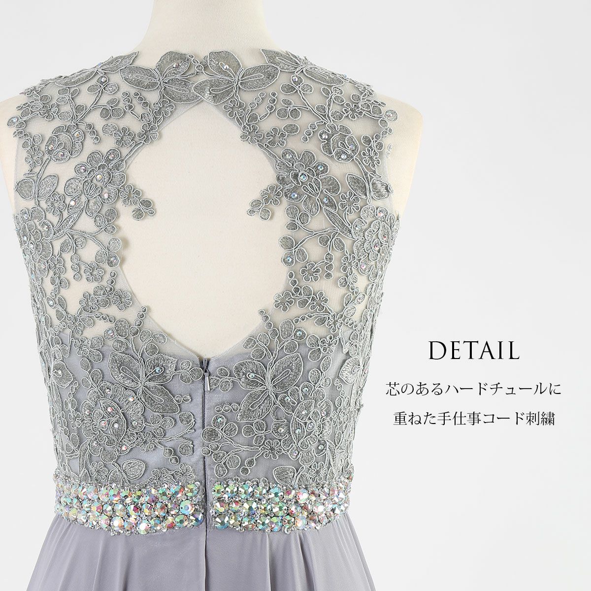演奏会 発表会 大人 上質 上品 レースが神秘的!ライトグレーのロングドレス FD-260076