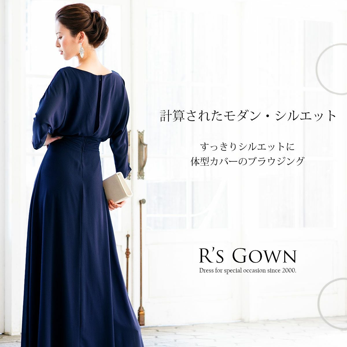 アールズガウンでは、演奏会、発表会、結婚式など様々なシーンで着ていただけるロングドレスを取り揃えております!Aライン、スレンダーライン、マーメイドライン、エンパイヤライン、プリンセスラインなど様々なタイプのロングドレスをご用意しております。演奏会で華やぐ裾が広がったプリンセスラインロングドレスやAラインロングドレスから、結婚式やパーティでも着ていただきやすいスレンダーラインまで揃えております。どのサイズの方でも着痩せして見えるよう、後ろ姿から細部にまでこだわってデザインしております。サイズ展開はS~L,一部4Lまでと幅広く揃え、貴女の華やかなドレスシーンをお手伝い致します。