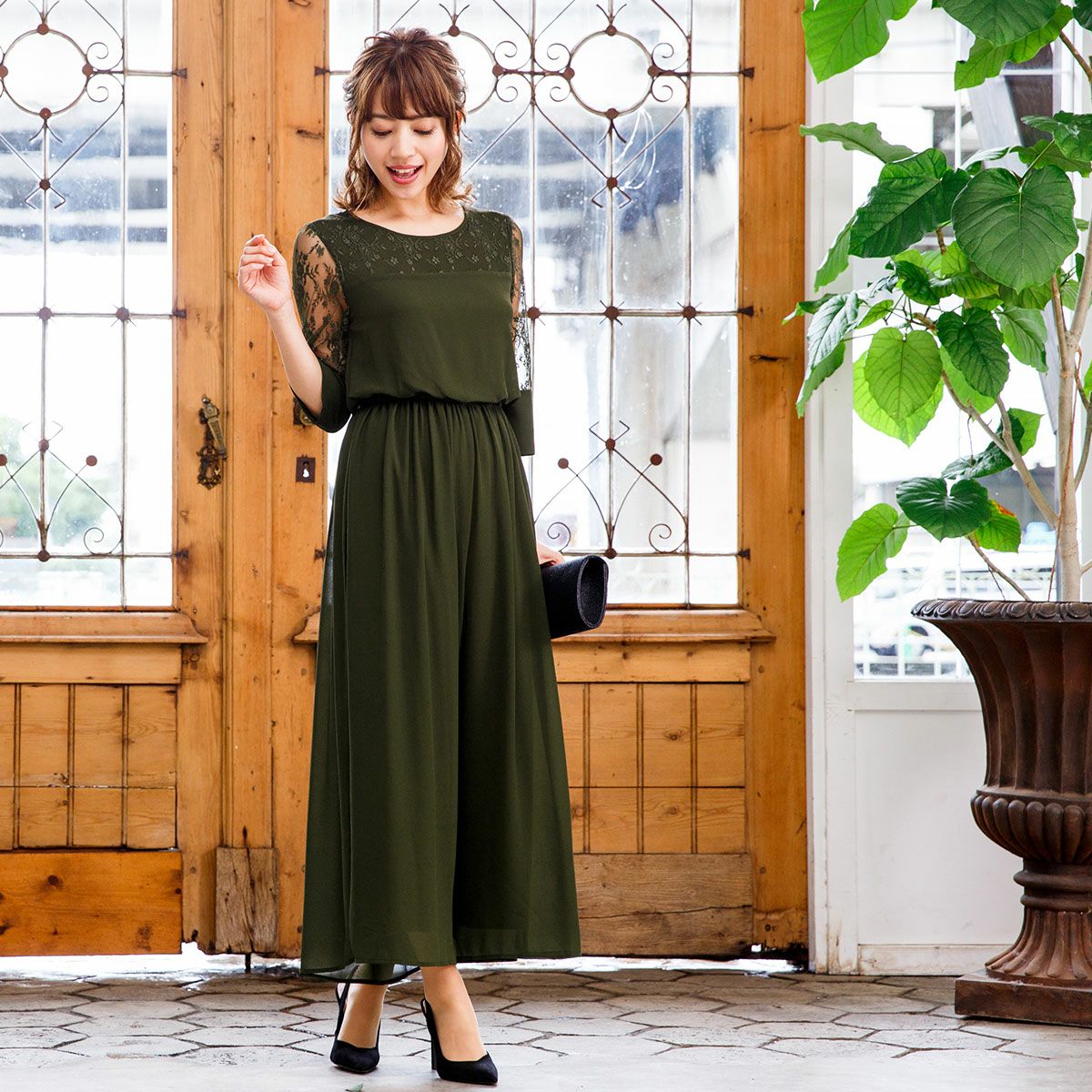 レース 切り替え シフォン オールインワン パンツドレス FD-1872213