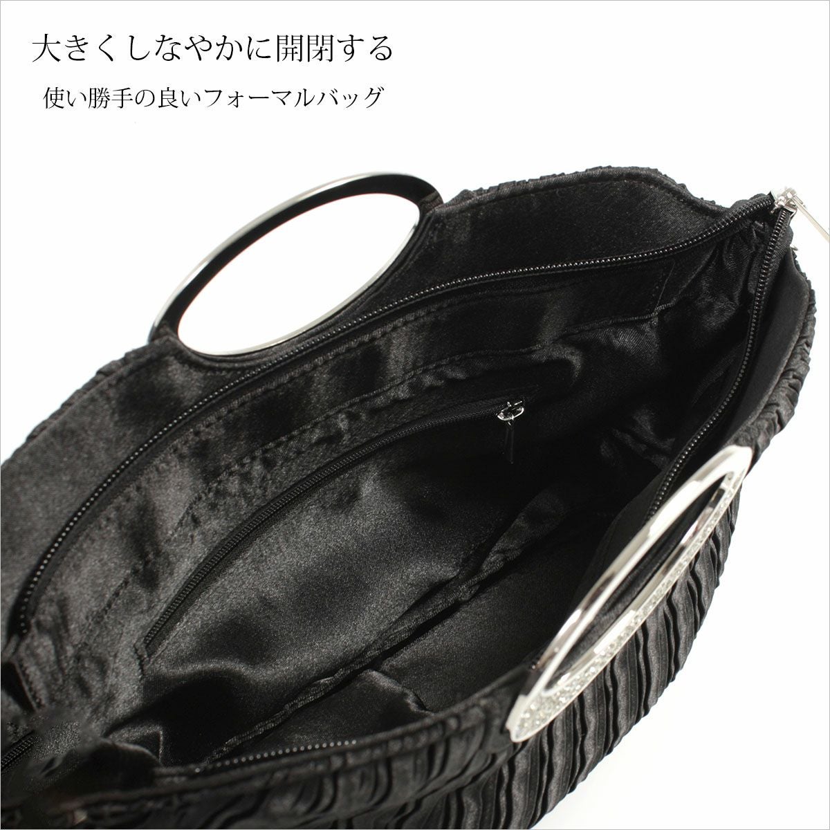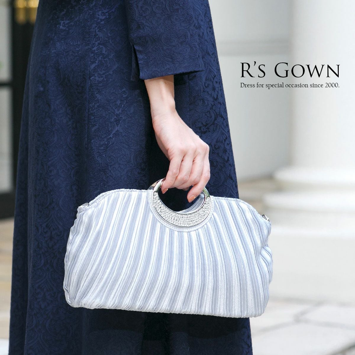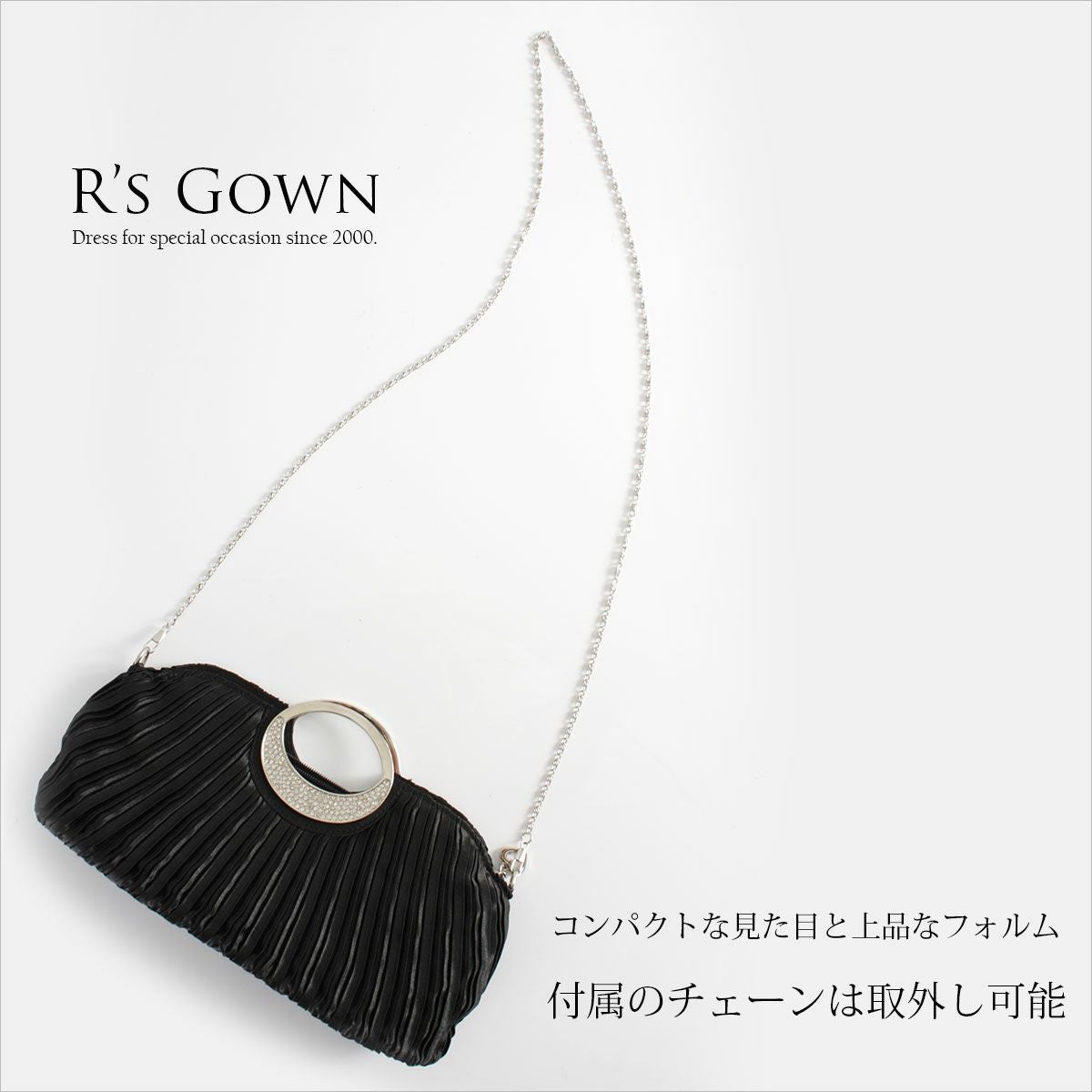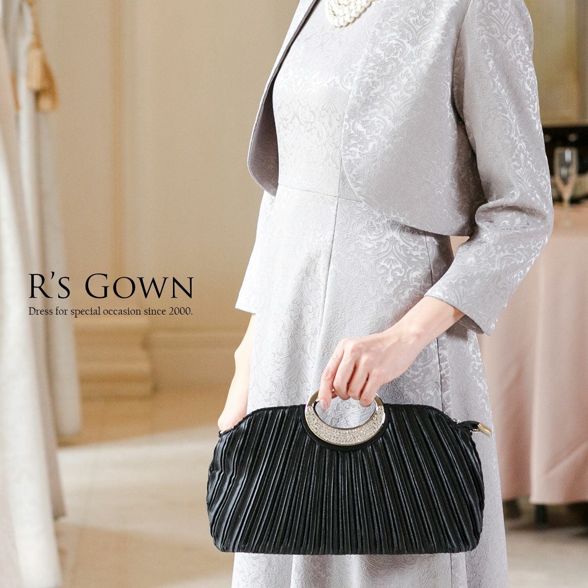 サテン、シフォン、レースなどフォーマルドレス素材と相性の良いマルチなハンドバッグ。丸みを帯びたフォルムはどんなシルエットのドレスにもマッチします。繊細なプリーツ加工、取っ手に施されたビジューは上品でクラス感もプラス。