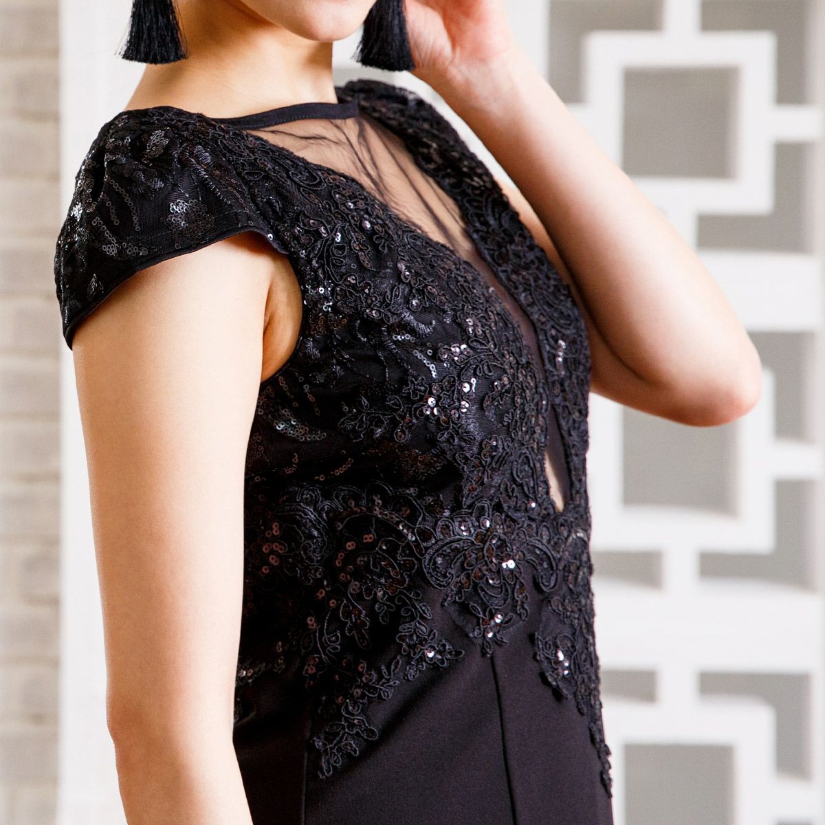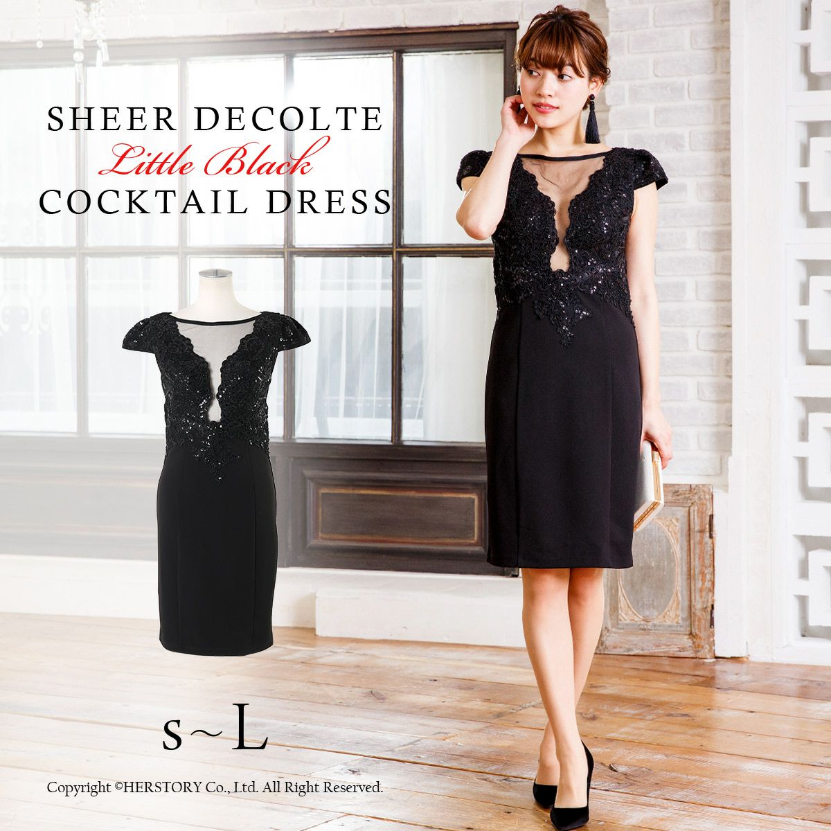 結婚式 お呼ばれ セクシー ショートドレス 極上ブラック シアーデコルテ カクテルドレス FD-050154