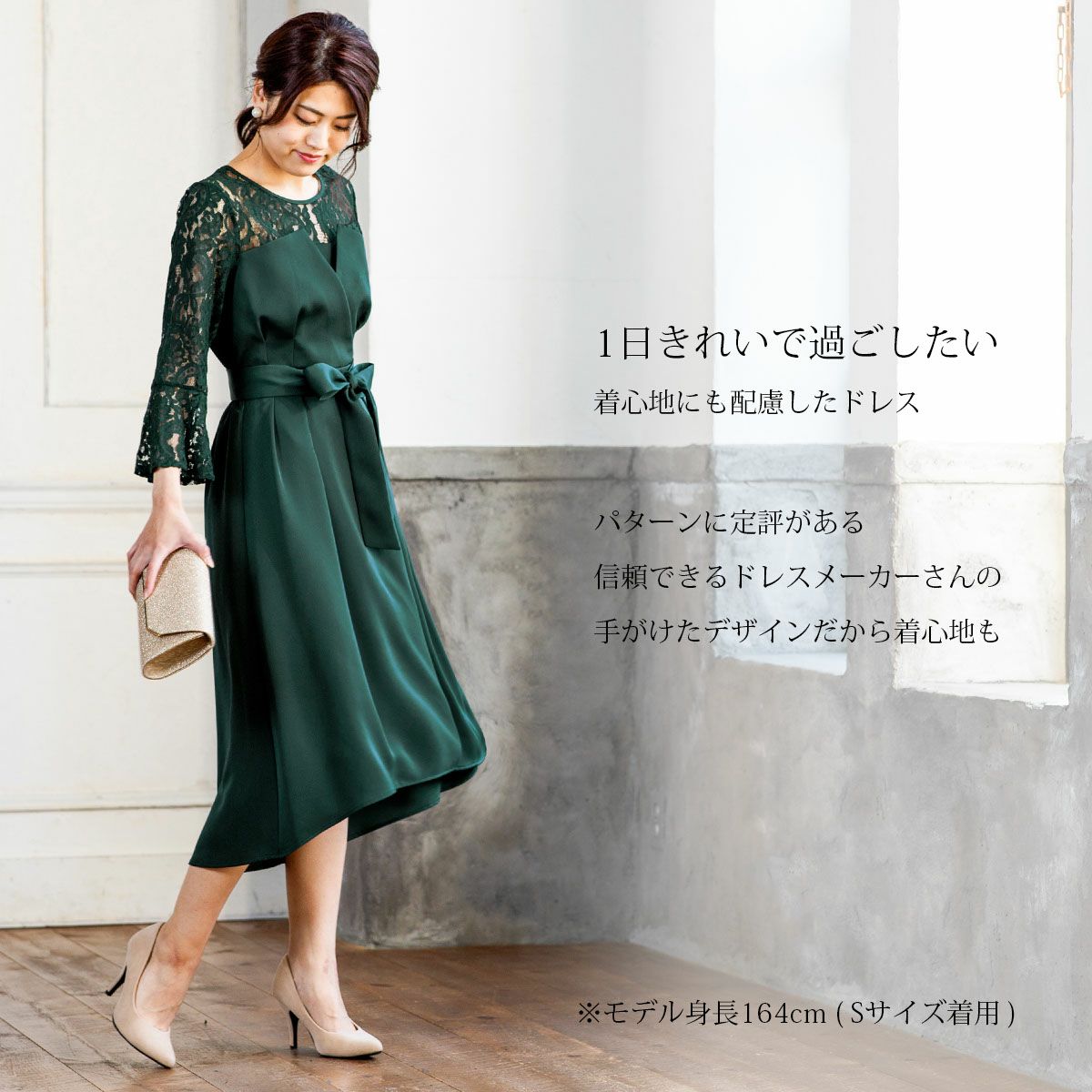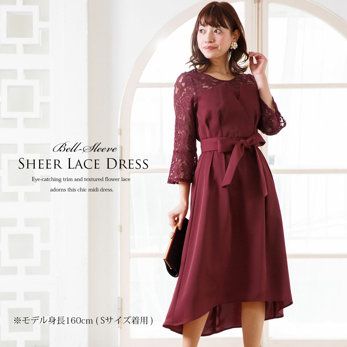 レースの長袖パーティードレス(膝下・ミモレ丈) FD-1852205