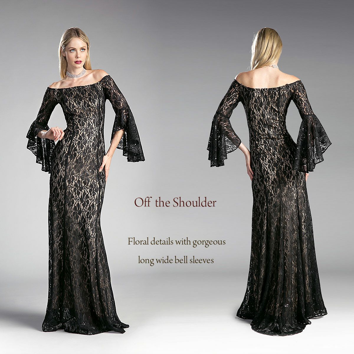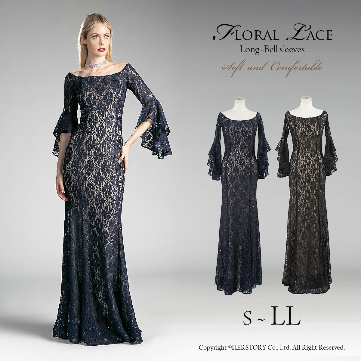 しなやかに流れるパゴダスリーブ 総レースロングドレス FD-230036