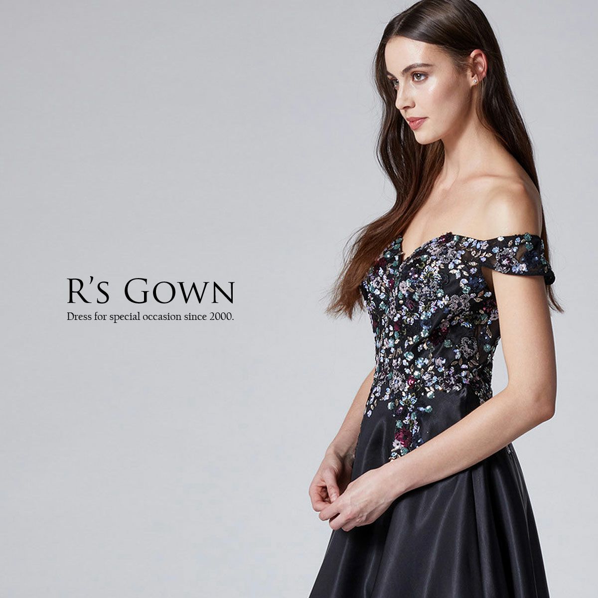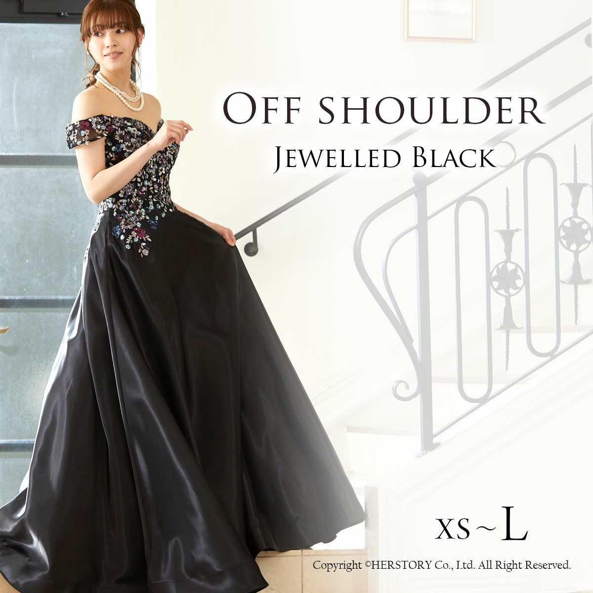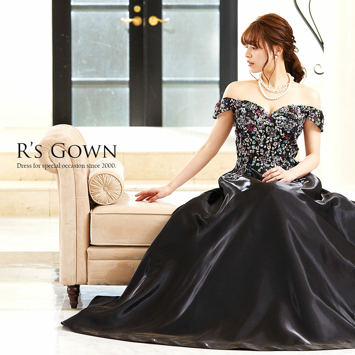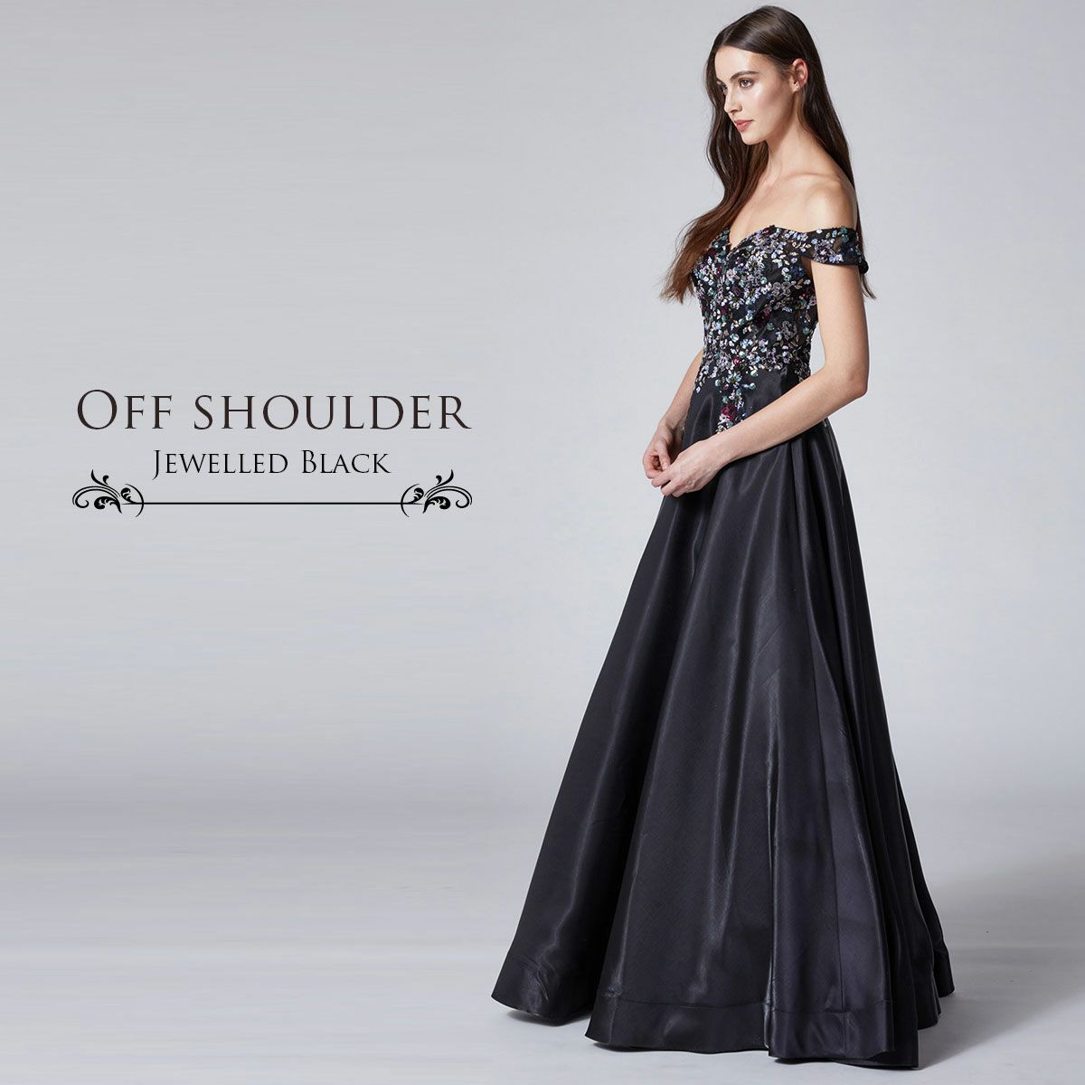 美彩色のオリエンタル刺繍 オフショルダーロングドレス FD-080292